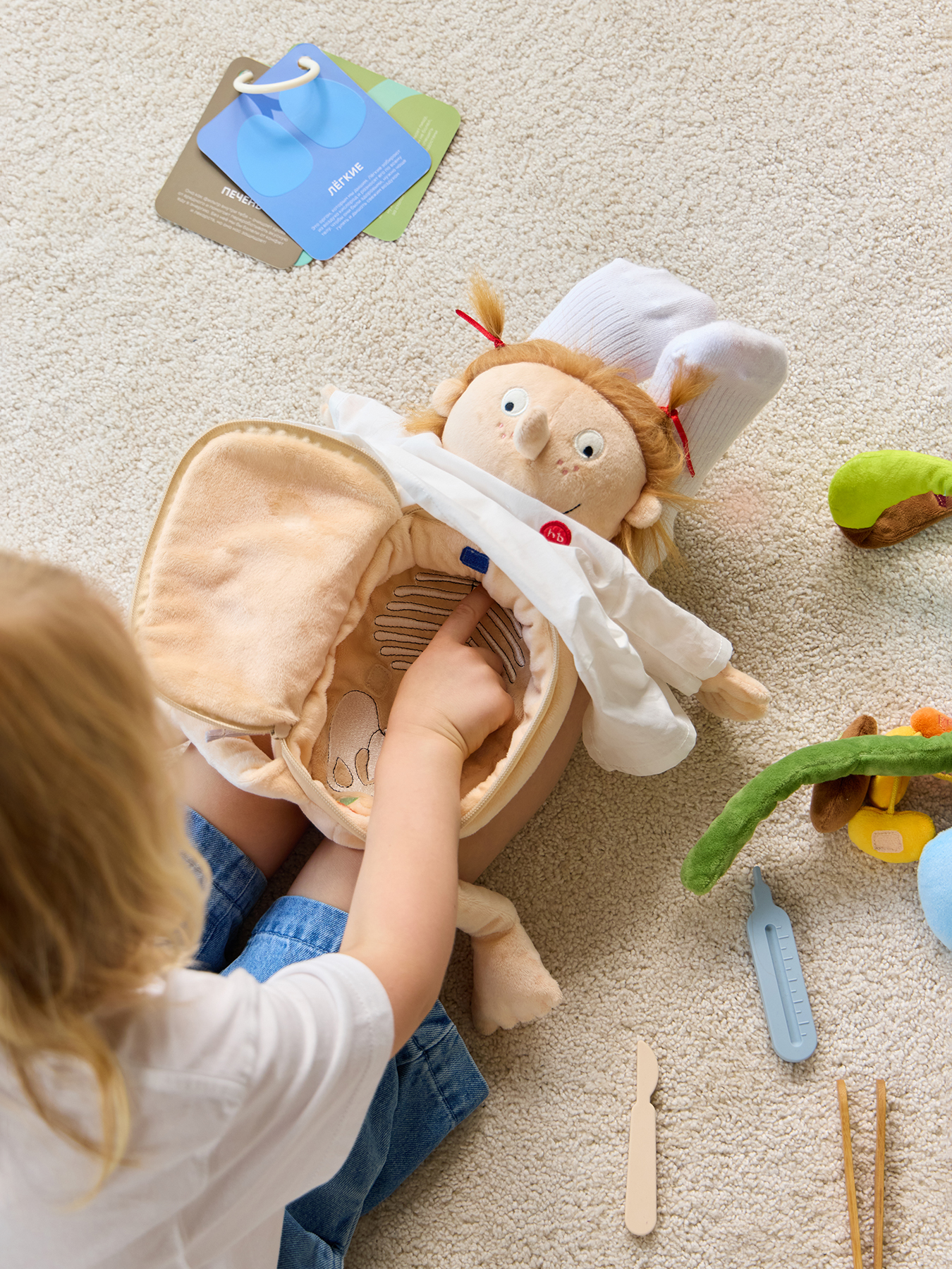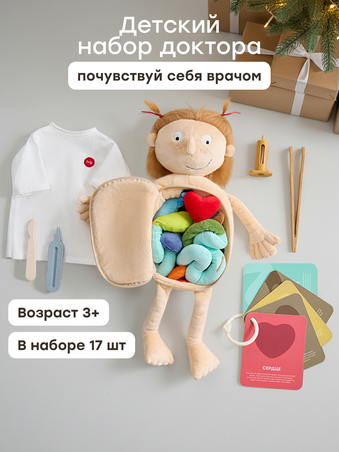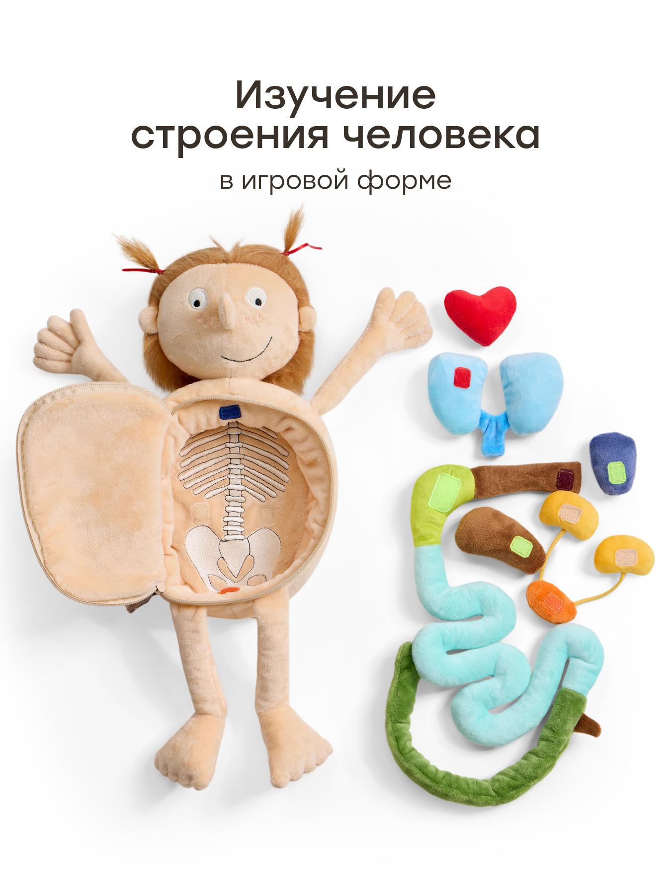 Игрушечная мягкая кукла Funny Anatomy — развивающая игрушка для обучения ребенка основам медицины и анатомии. Набор доктора способствует изучению организма человека, развивая у ребенка любознательность. Игровой набор для девочек и мальчиков поможет понять основы работы с медицинскими инструментами в увлекательной форме.