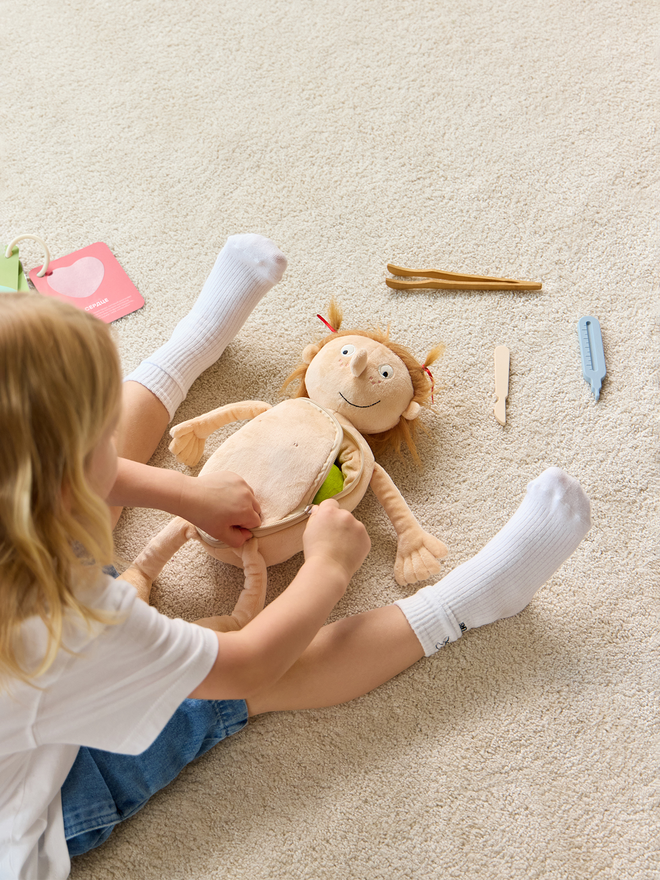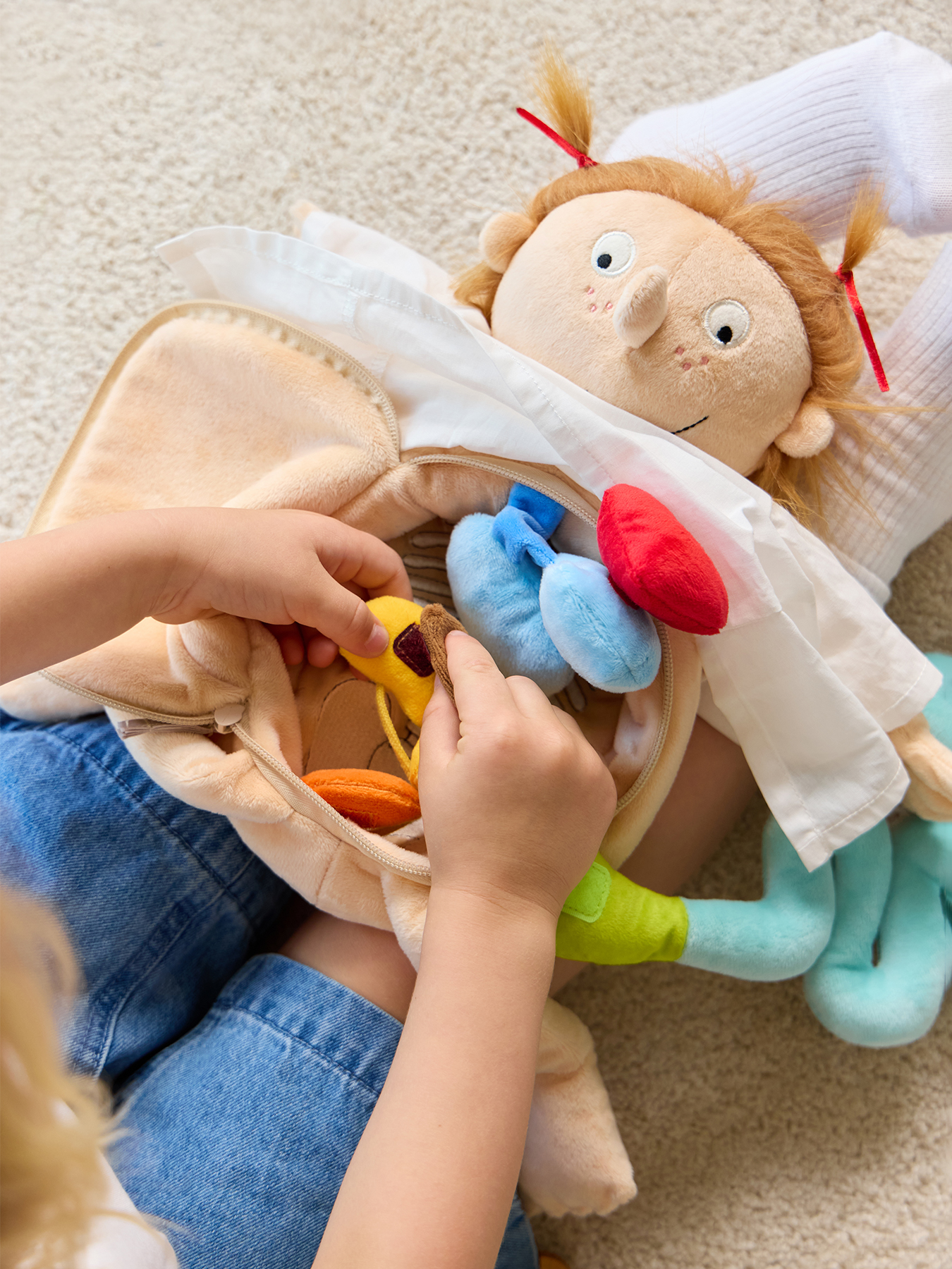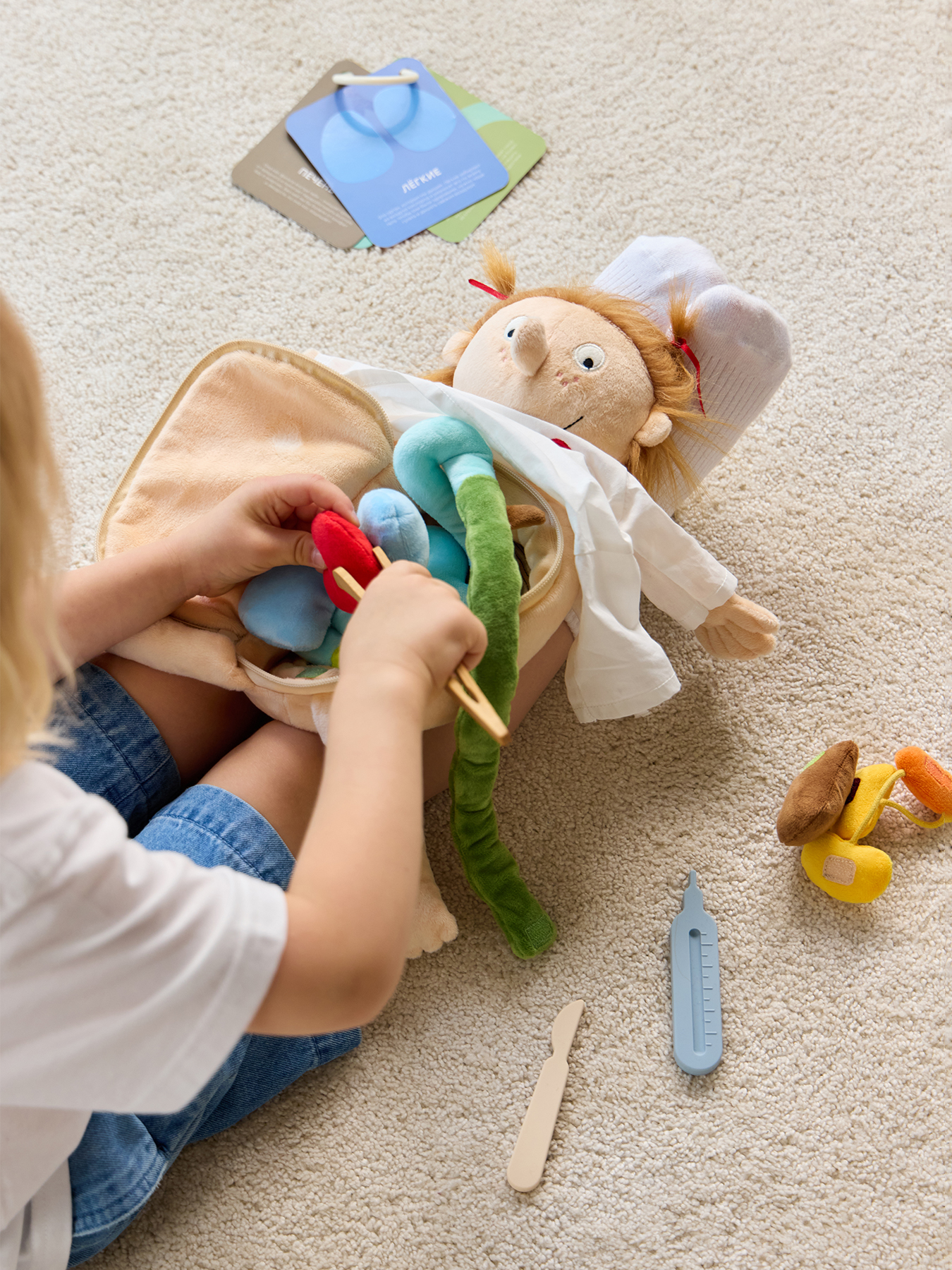 Игрушечная мягкая кукла Funny Anatomy — развивающая игрушка для обучения ребенка основам медицины и анатомии. Набор доктора способствует изучению организма человека, развивая у ребенка любознательность. Игровой набор для девочек и мальчиков поможет понять основы работы с медицинскими инструментами в увлекательной форме.