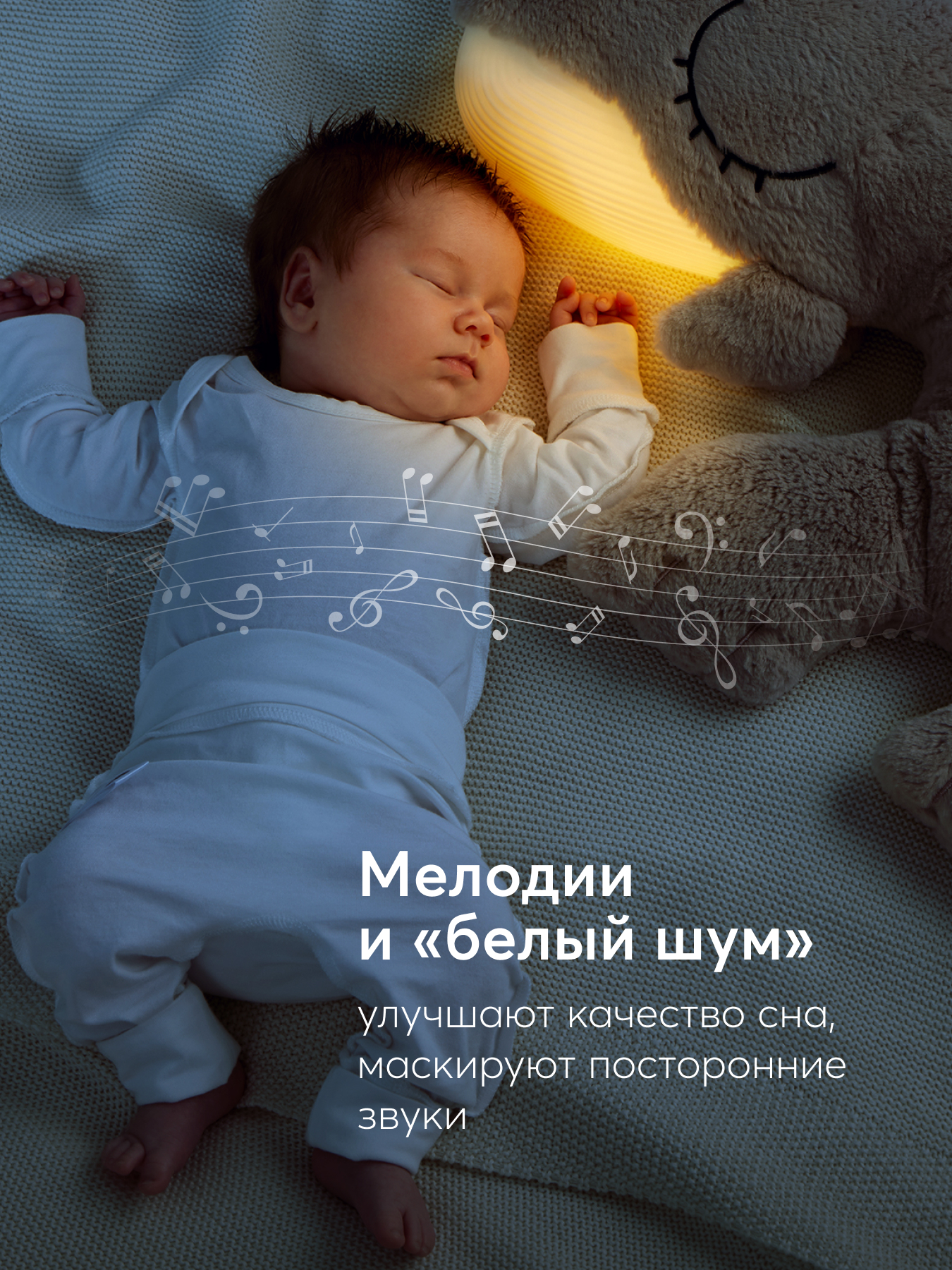 • Успокаивающие мелодии и «белый шум» - улучшат качество и глубину сна малыша, а также замаскируют посторонние звуки.