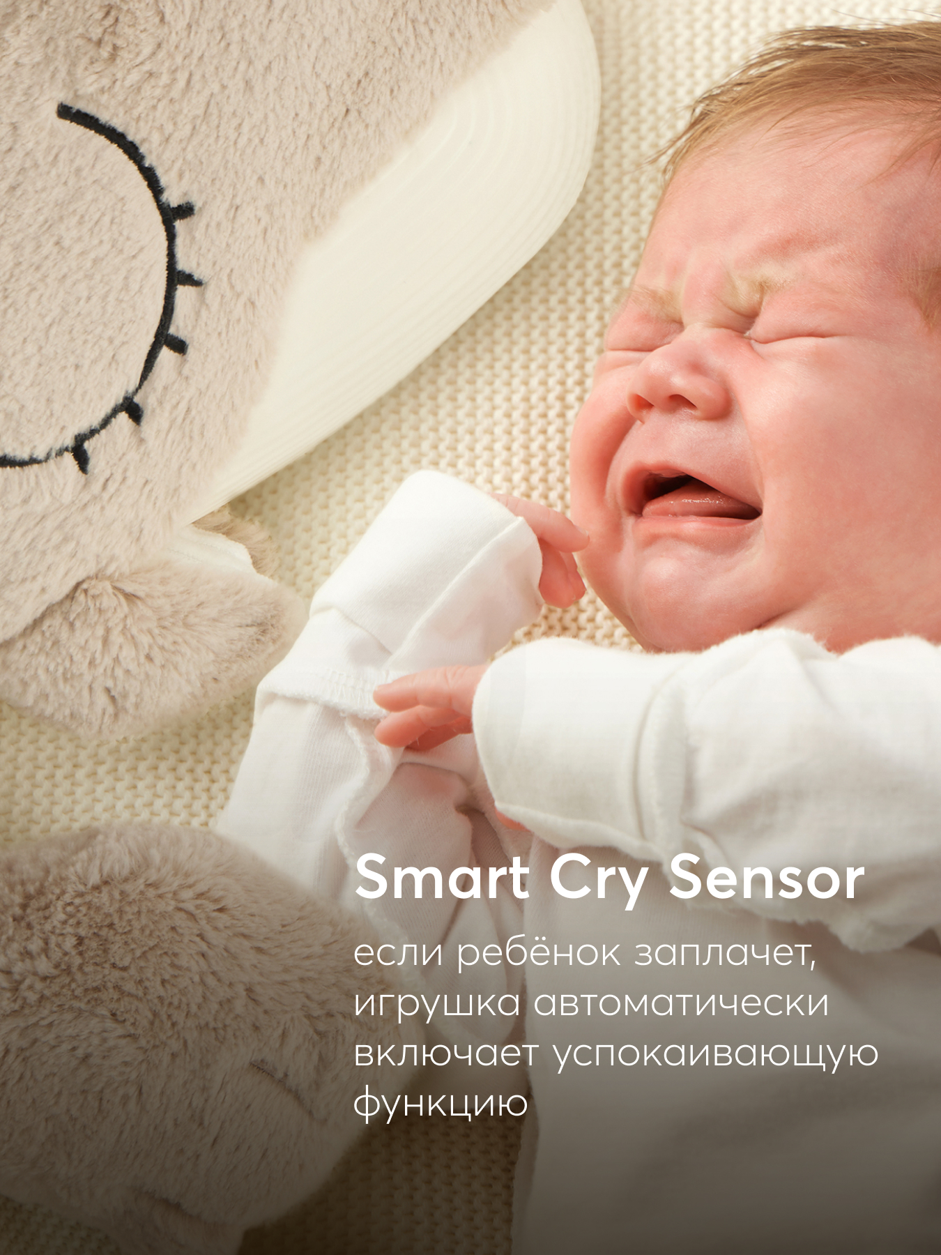 • Встроенный датчик детского плача Smart Cry Sensor - если малыш заплачет, Уолли успокоит его мягким постукиванием плавником, включит мягкий динамический свет и активизирует мелодию с «белым шумом», помогая ребенку уснуть.