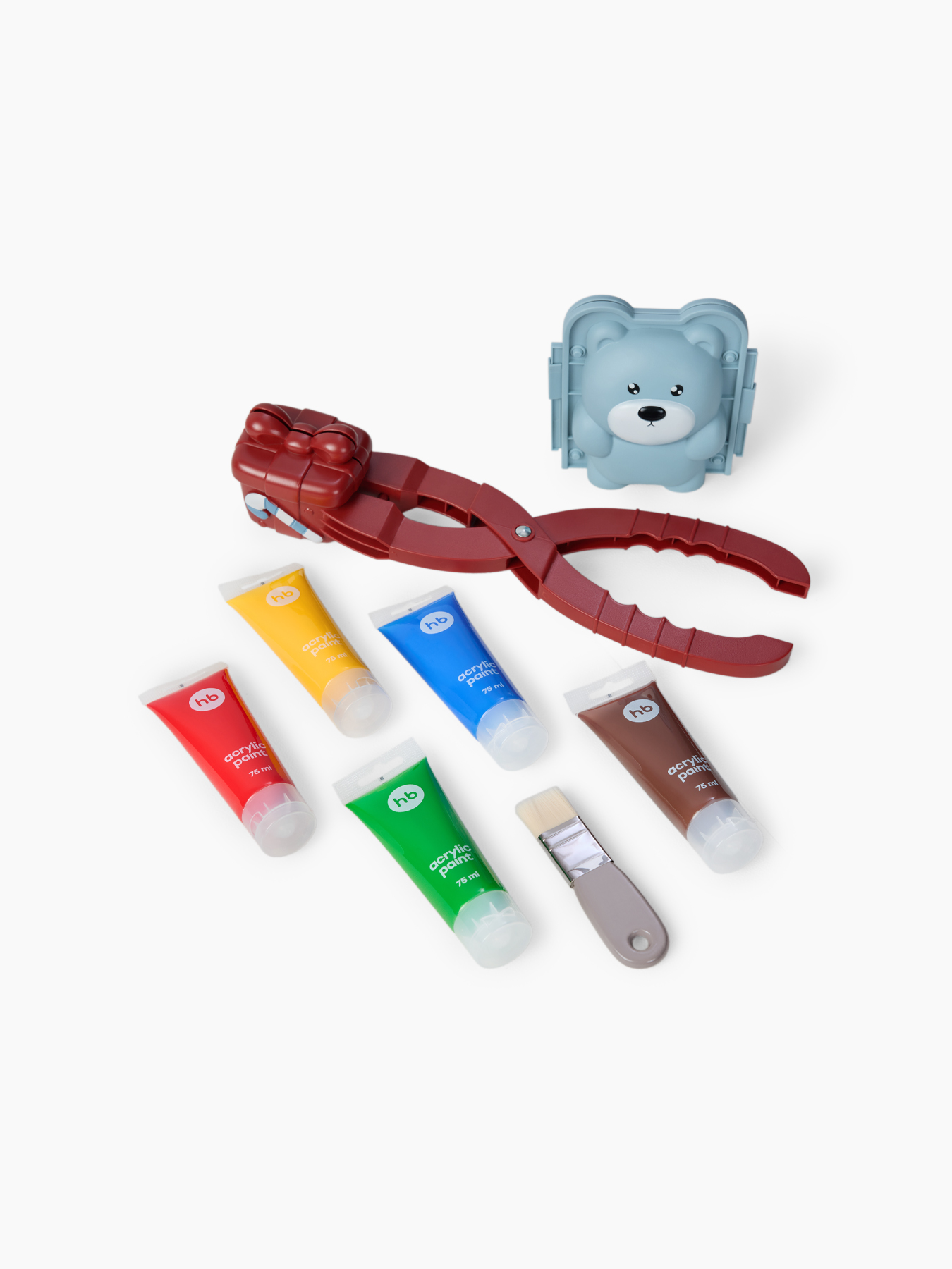 Набор для рисования и снежколеп TEDDY SNOW от Happy Baby — зимний набор для творчества и игр на улице. В набор входят снеголеп, формочка для снега, 5 тюбиков акриловой краски для снега и кисточка, упакованные в удобный пакет с затяжкой. Всё, что нужно, чтобы лепить снежки, украшать их и создавать яркие рисунки прямо на снегу.