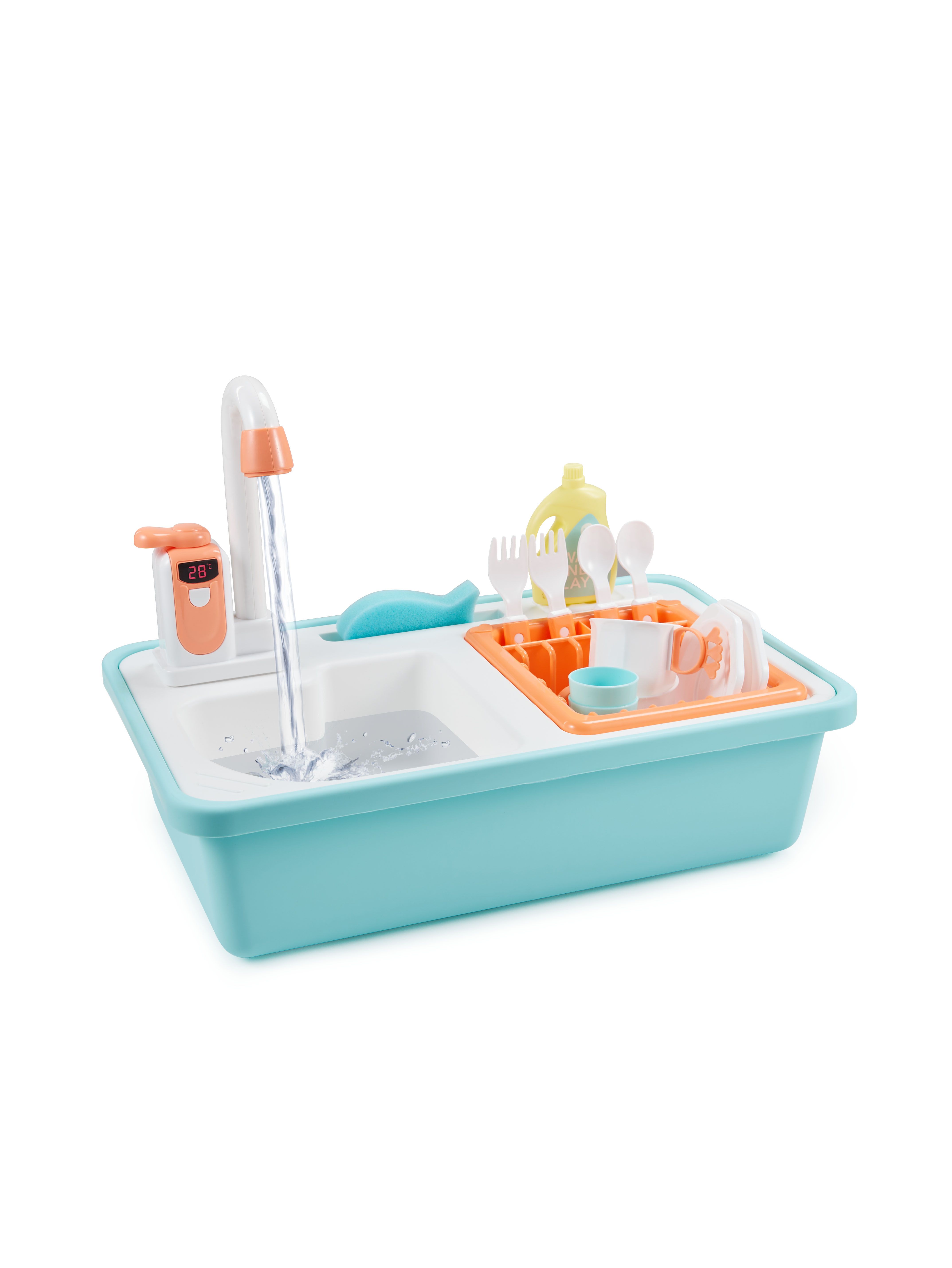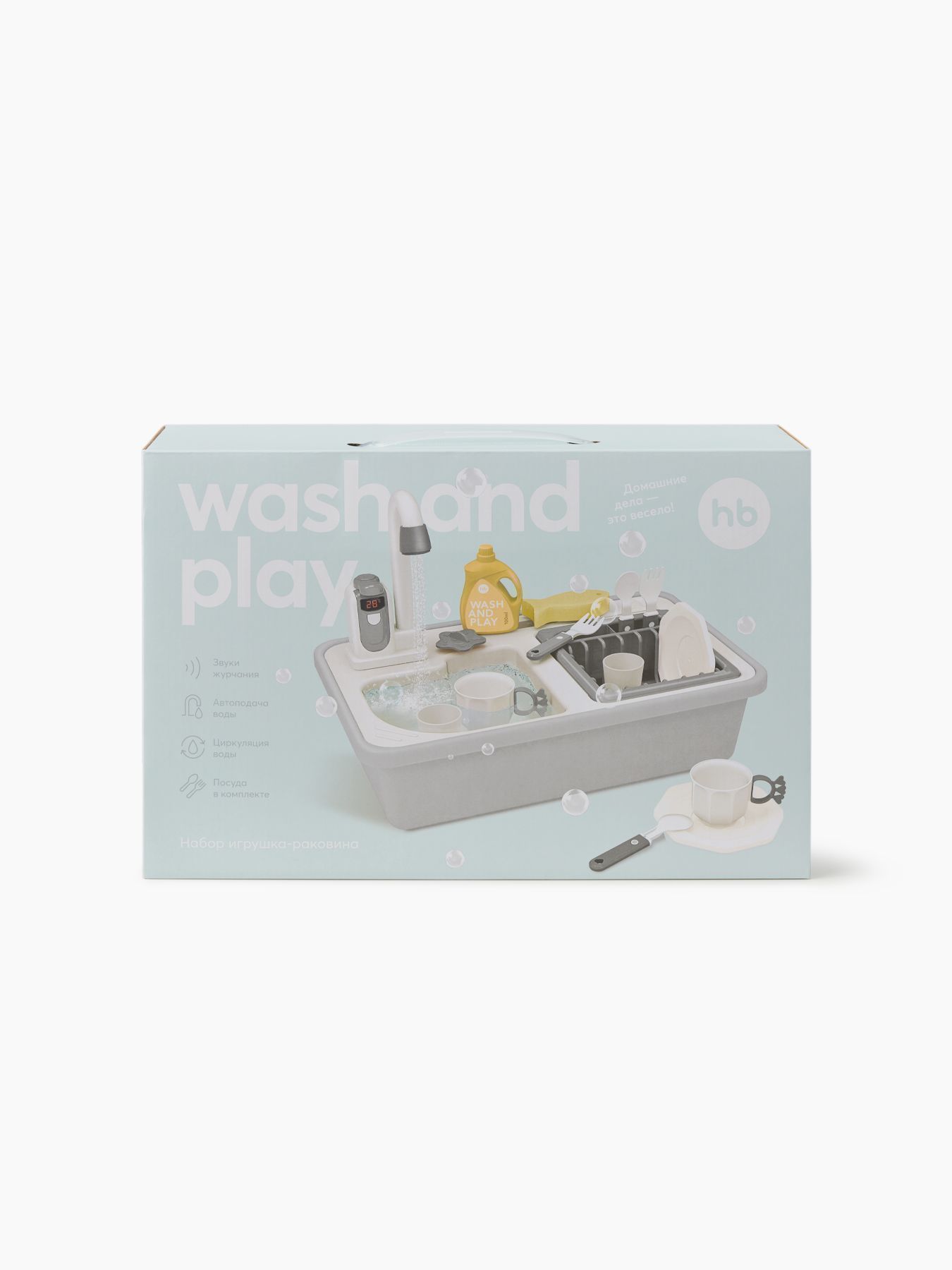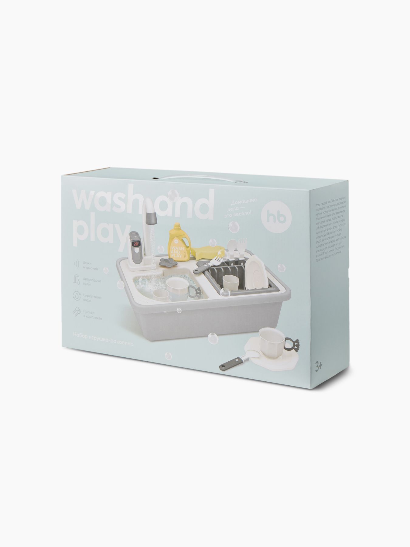 Игры с водой расслабляют ребёнка и повышают настроение, развивают мелкую моторику, память, внимание. Игрушечная мойка даст возможность плескаться в воде, представлять себя взрослым и не терять интерес к домашним делам. Вода в игрушке циркулирует. Наполните мойку водой, включите кран – вода начнёт вытекать через него обратно в мойку, а затем снова попадёт в кран. Играть можно бесконечно. Приятные эмоции обеспечены.