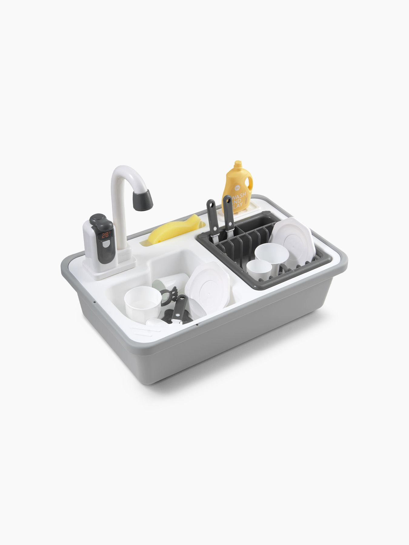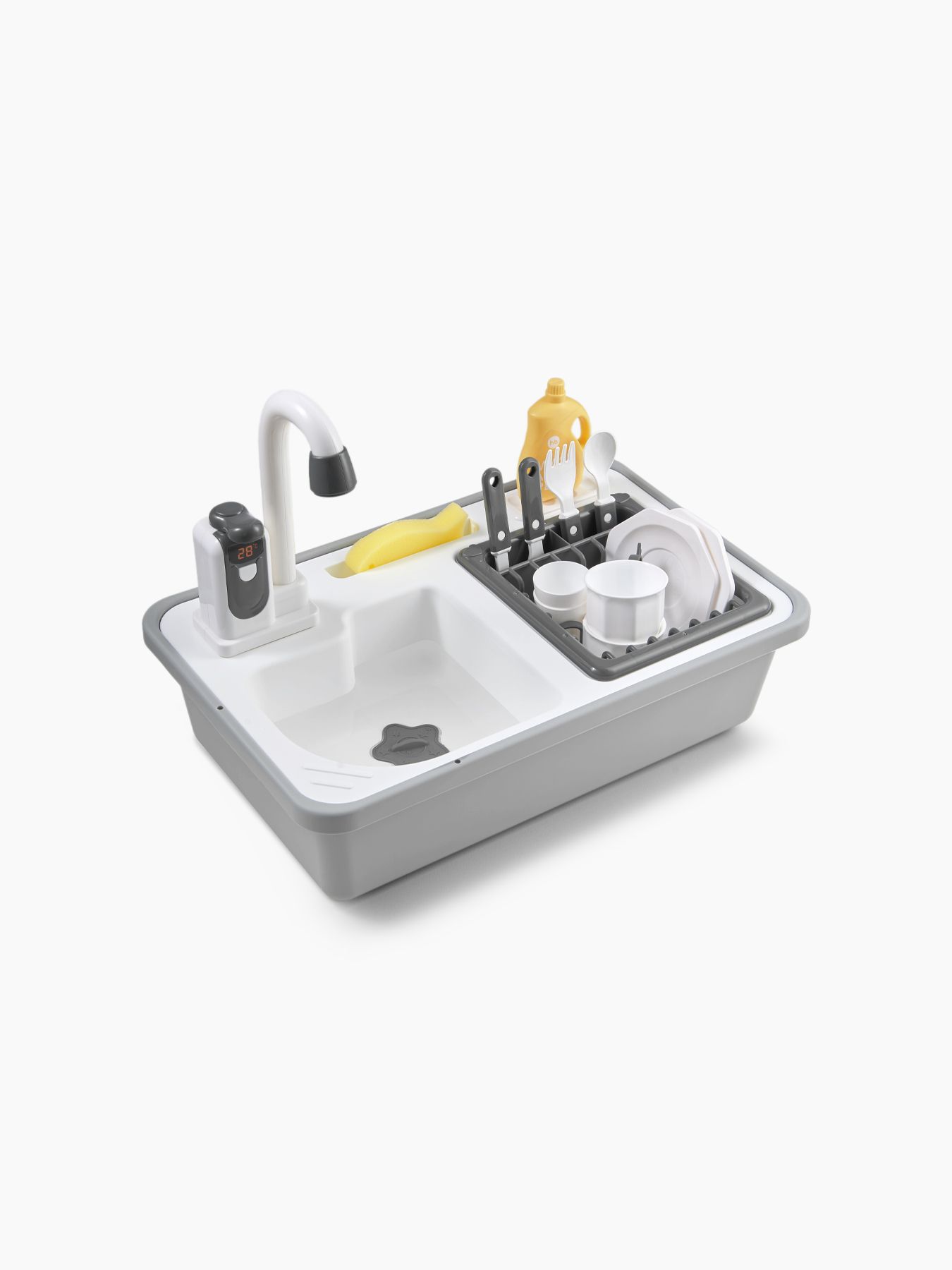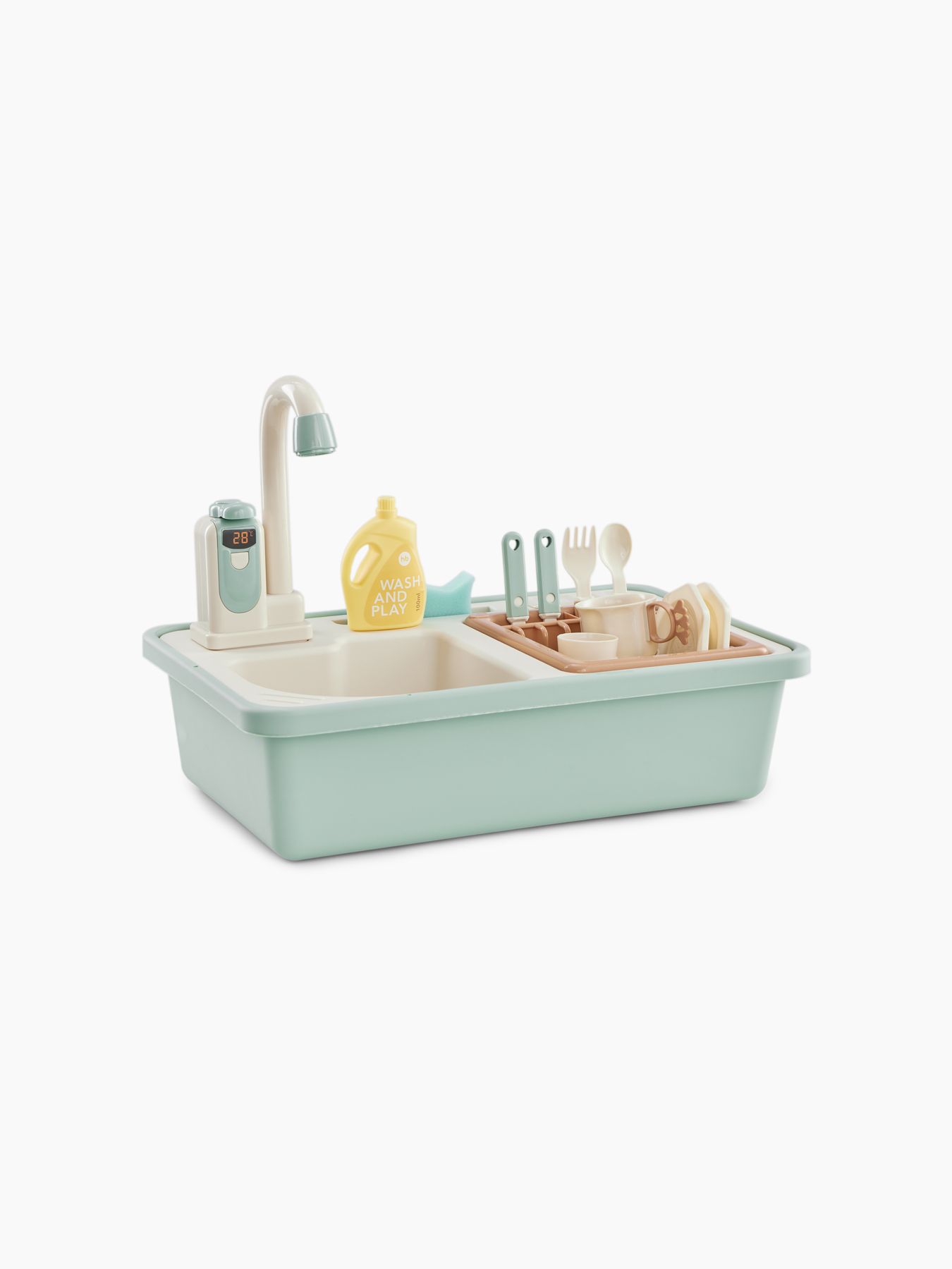 Игры с водой расслабляют ребёнка и повышают настроение, развивают мелкую моторику, память, внимание. Игрушечная мойка даст возможность плескаться в воде, представлять себя взрослым и не терять интерес к домашним делам. Вода в игрушке циркулирует. Наполните мойку водой, включите кран – вода начнёт вытекать через него обратно в мойку, а затем снова попадёт в кран. Играть можно бесконечно. Приятные эмоции обеспечены.