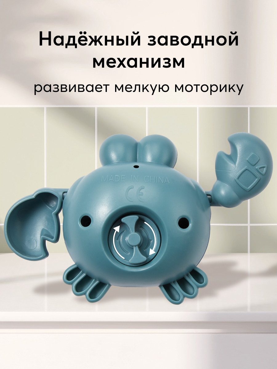 Механический крабик сделает купание в ванной веселее. Малыш с восторгом будет наблюдать за тем, как краб плывёт, двигая клешнями. Заводить крабика хочется снова и снова. Игрушка сделана из лёгкого пластика, работает от завода механизма, без батареек. Развивает логику. Во время завода игрушки малыш тренирует мелкую моторику. Игры с водой успокаивают, помогают выплеснуть эмоции и расслабиться перед сном.