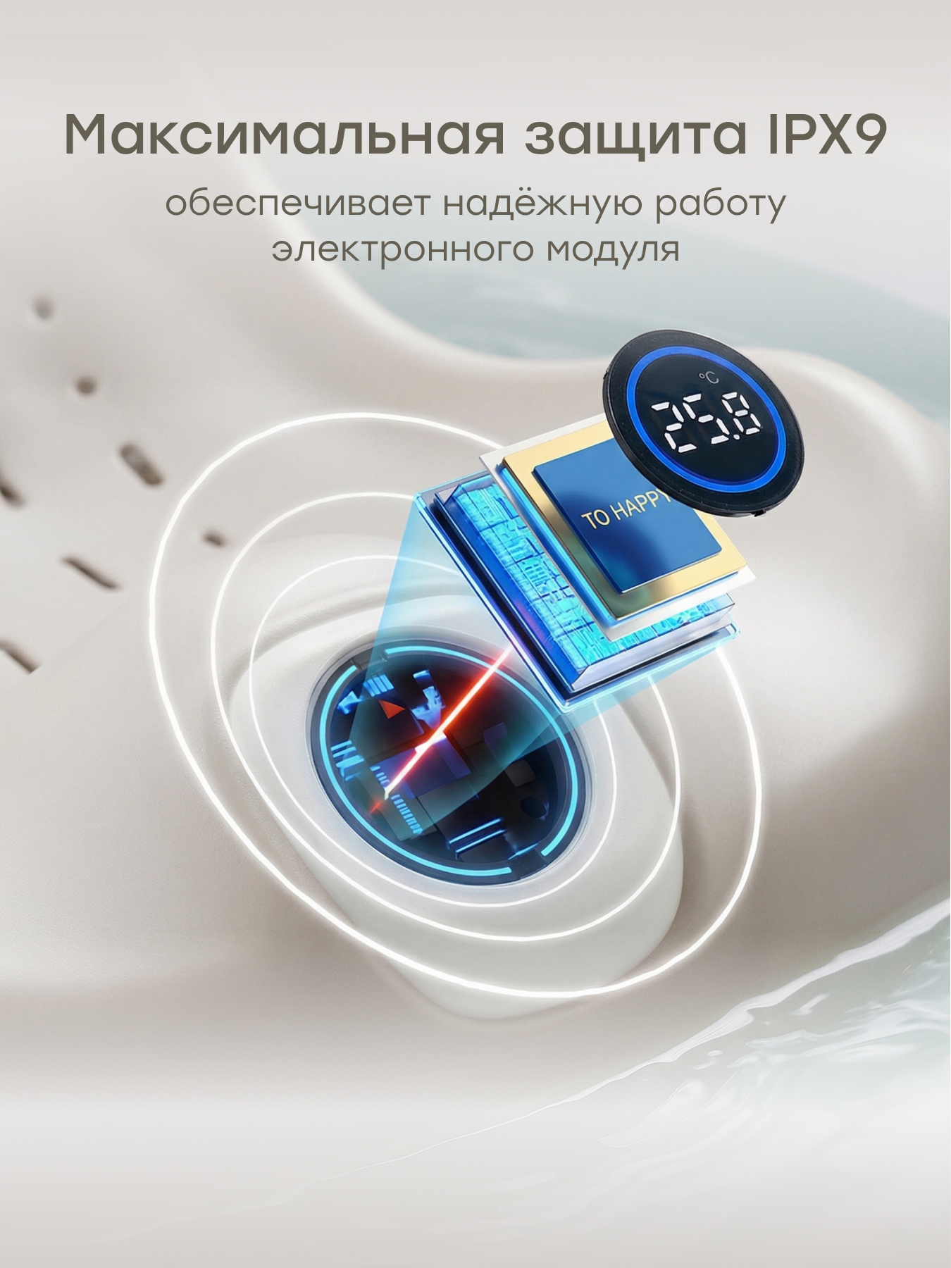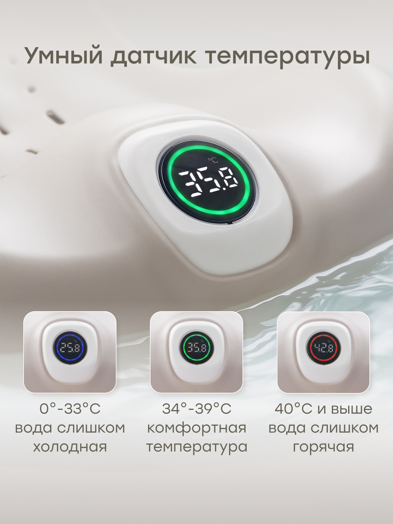 • Встроенный термометр – контроль температуры воды для комфортного купания