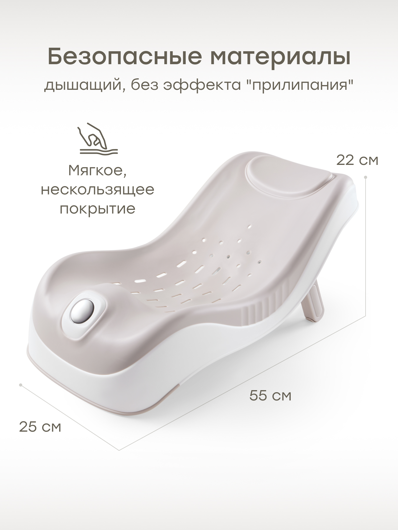 • Противоскользящий коврик под колени – легко складывается, обеспечивает удобство и комфорт при мытье ребенка