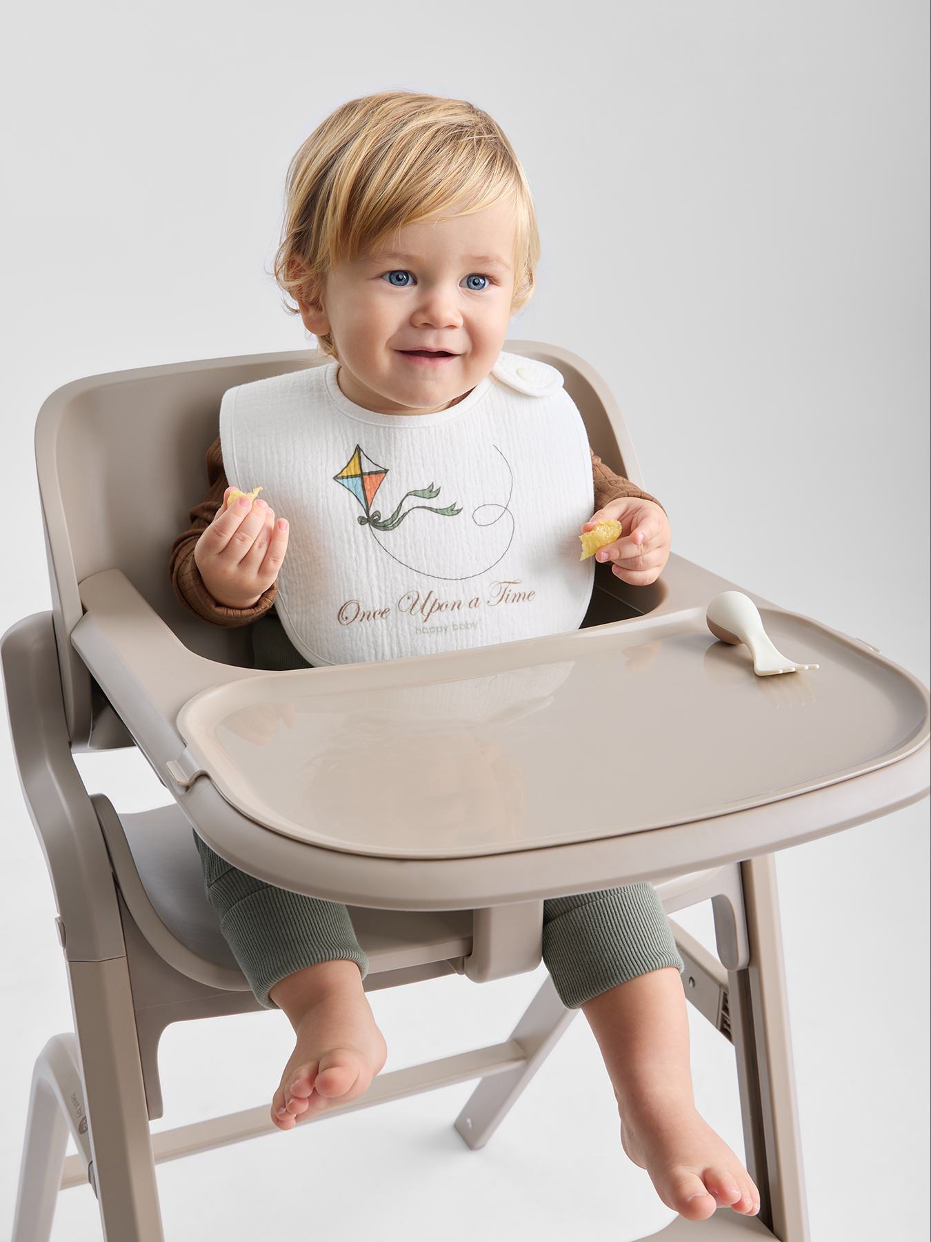 • Нагрудник с влагонепроницаемой подкладкой и застежкой на кнопку - защищает одежду малыша во время кормления, удобно снимать и надевать