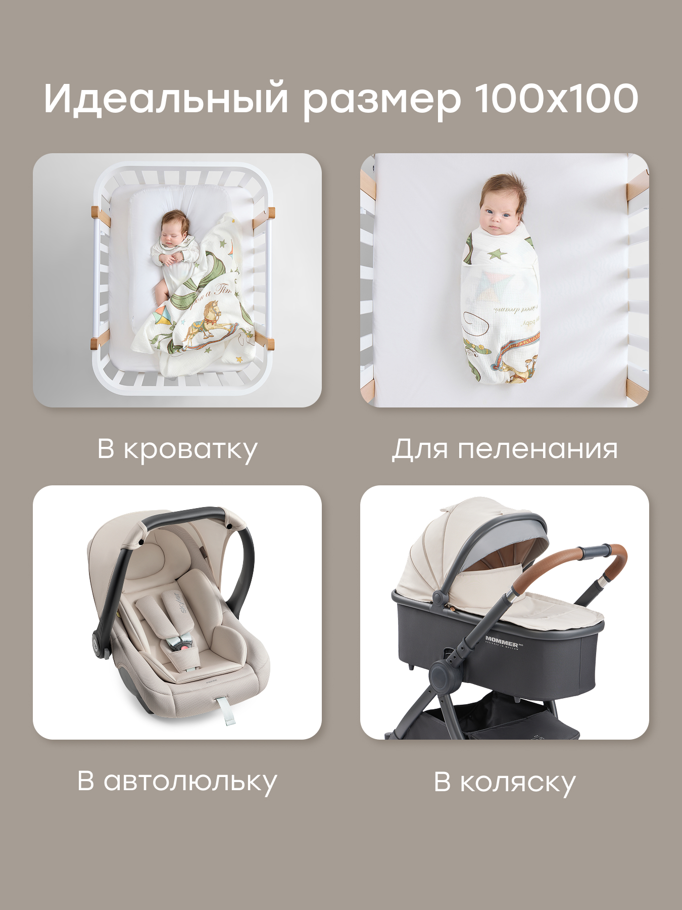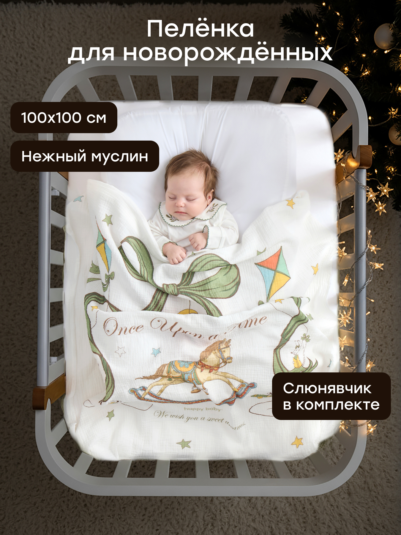 • Муслиновая пелёнка из 100% хлопка - лёгкая, дышащая и мягкая, подходит для сна, пеленания и прогулок