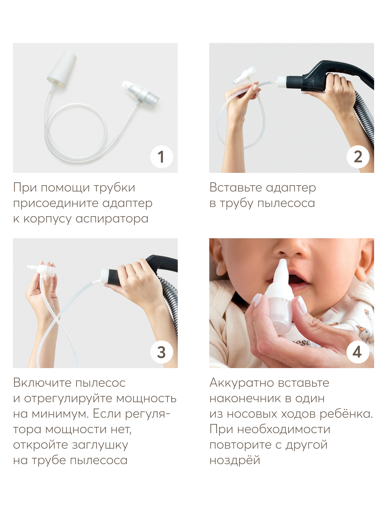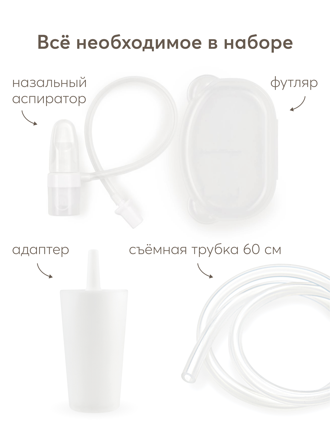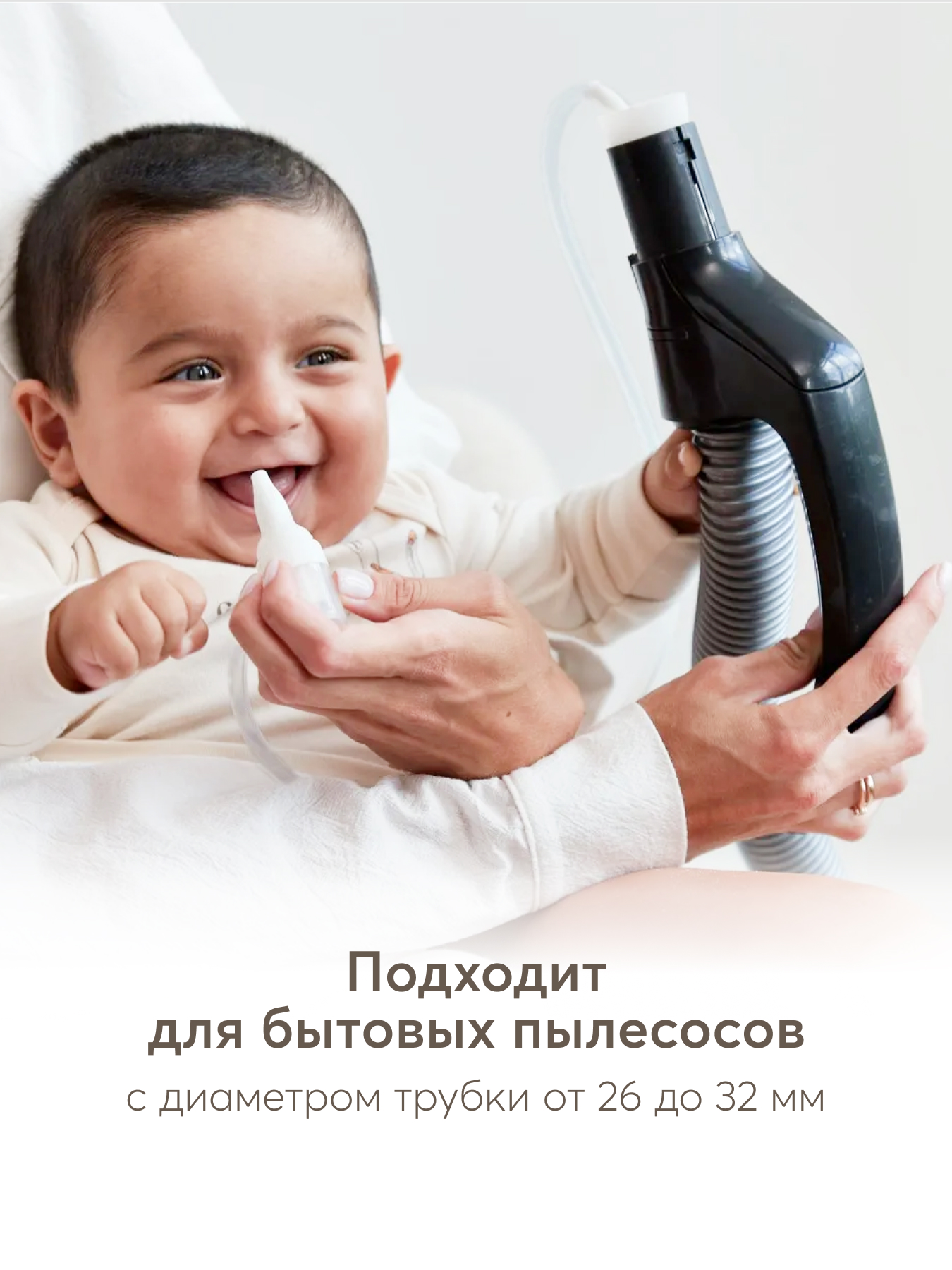 Назальный аспиратор с адаптером для пылесоса обеспечивает эффективный и быстрый уход за носиком малыша. В комплект входят аспиратор и адаптер, который позволяет превратить обычный аспиратор в вакуумный за считанные секунды. Длина съёмной трубки адаптера составляет 60 см, что обеспечивает удобство использования. Устройство подходит для большинства бытовых пылесосов с диаметром трубки от 26 до 32 мм. Мягкий и гибкий наконечник аспиратора бережно очищает нос малыша, не травмируя его. Для удобства хранения и гигиеничности предусмотрен компактный футляр, который идёт в комплекте.