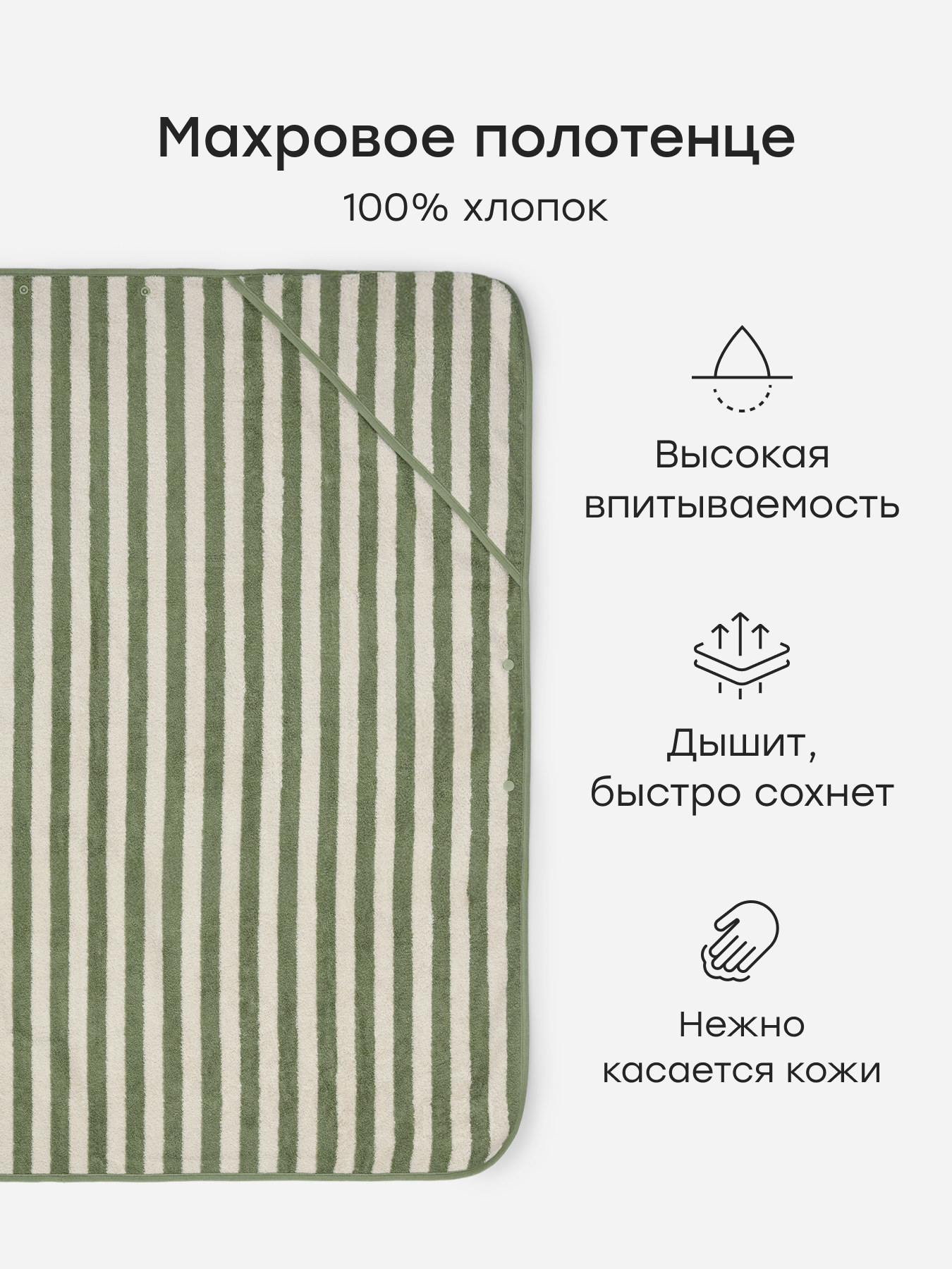 • Высокая впитываемость — плотная махровая быстро и легко высушит ребенка