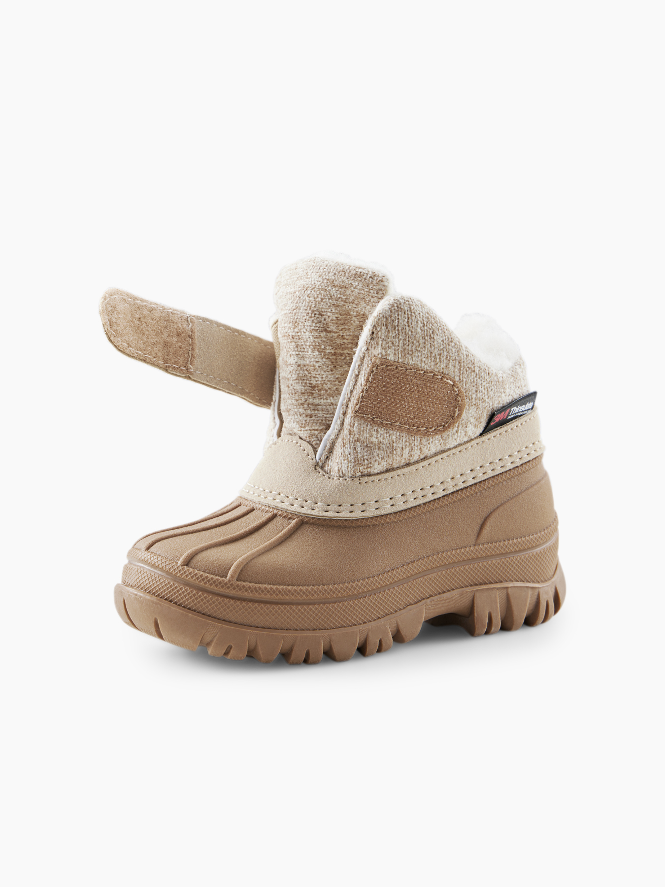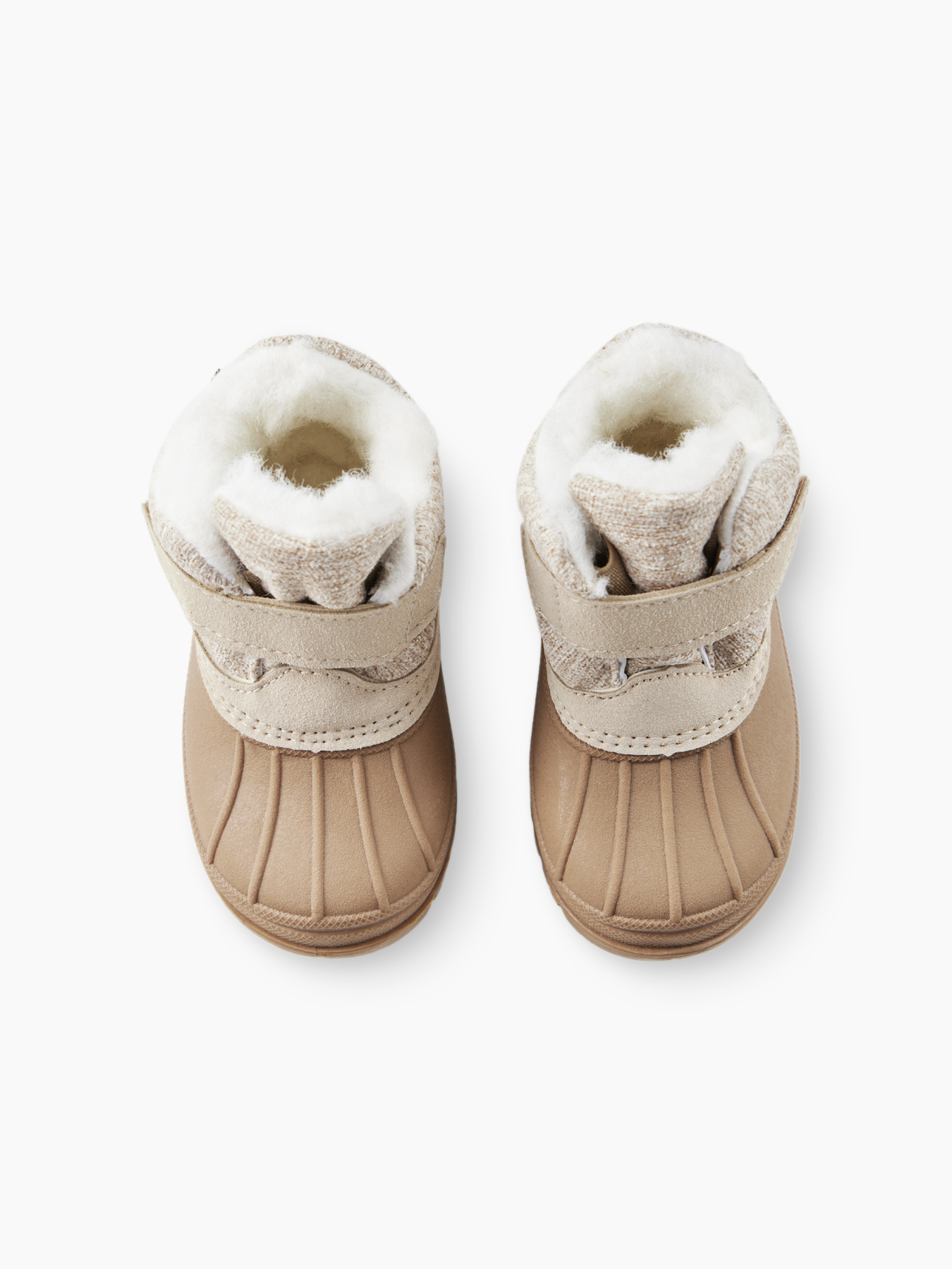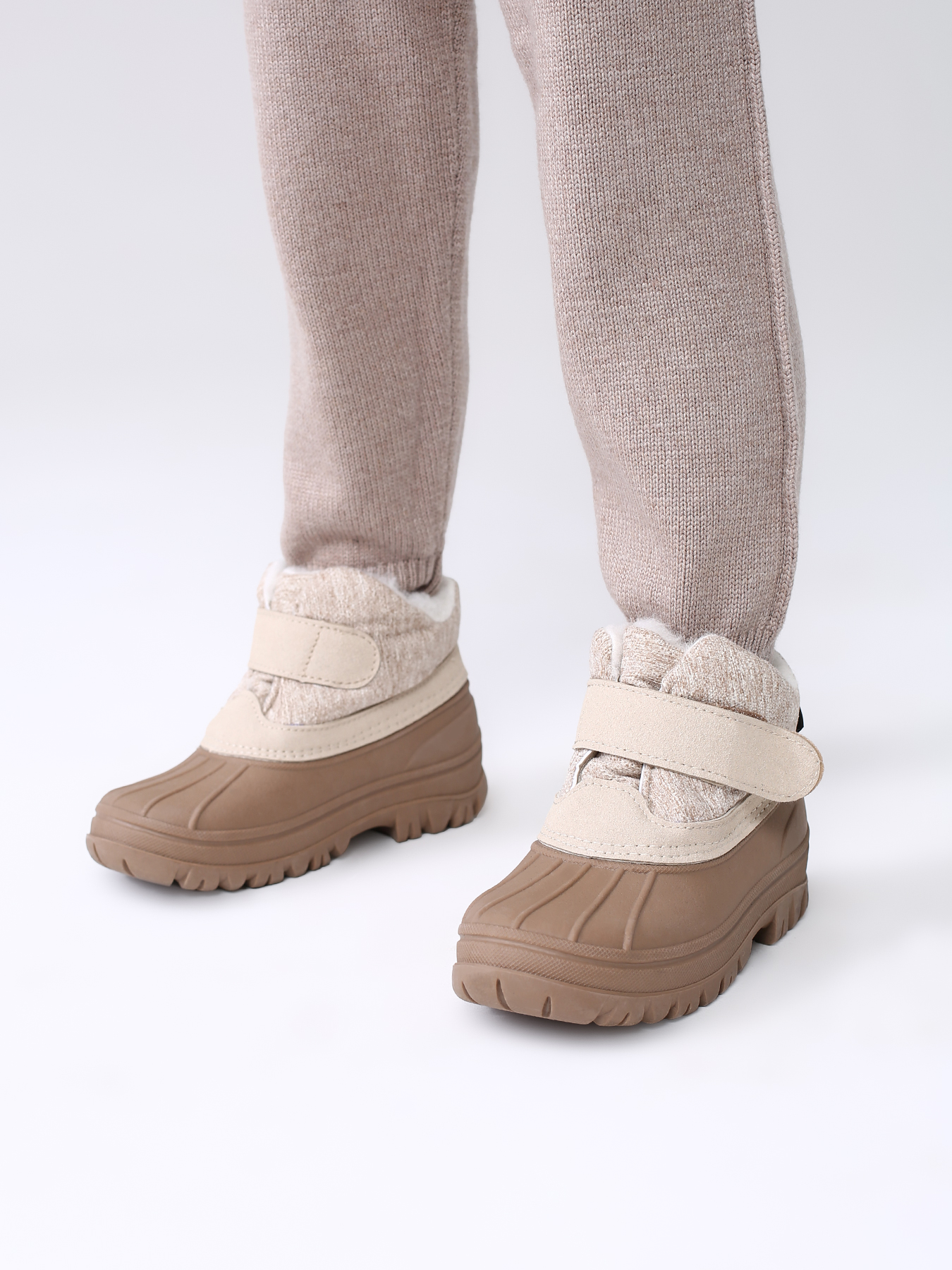 Ботинки «сноубутсы» защитят ноги от холода и влаги зимой и в демисезон. Верх изготовлен из нейлона — ткань не пропускает влагу. Потому ботинки идеальны для прогулок в слякоть. Внутри — шерстяной мех, благодаря которому нога не потеет и всегда в тепле. Подошва легкая и прочная, не скользит. Застегиваются на липучку, потому малыш сможет легко обуваться сам.