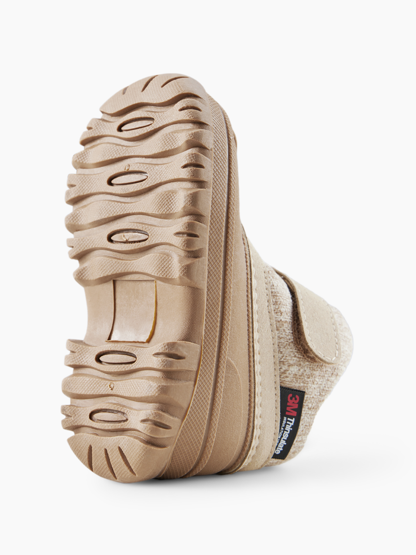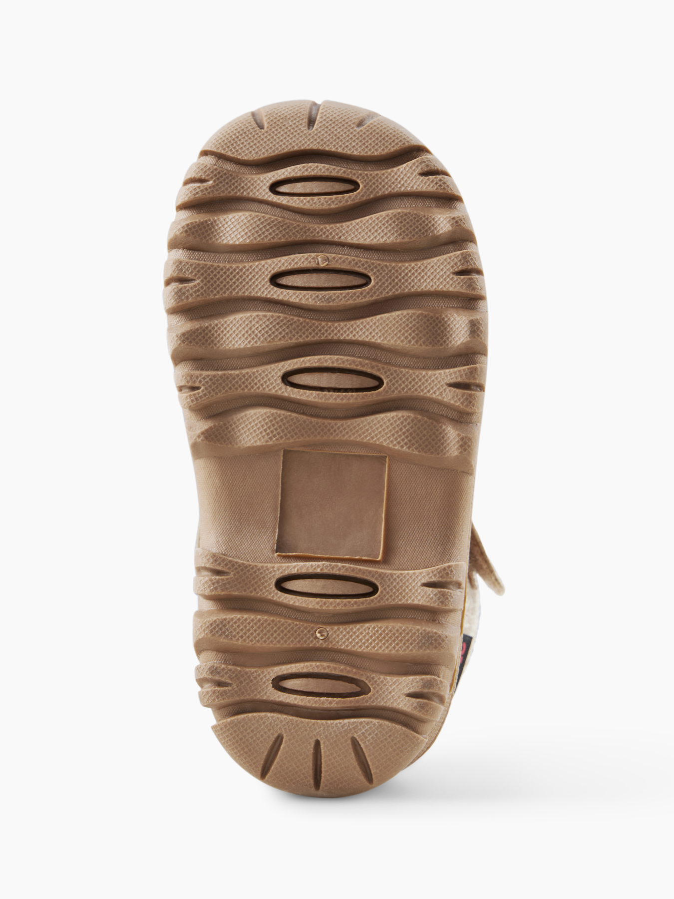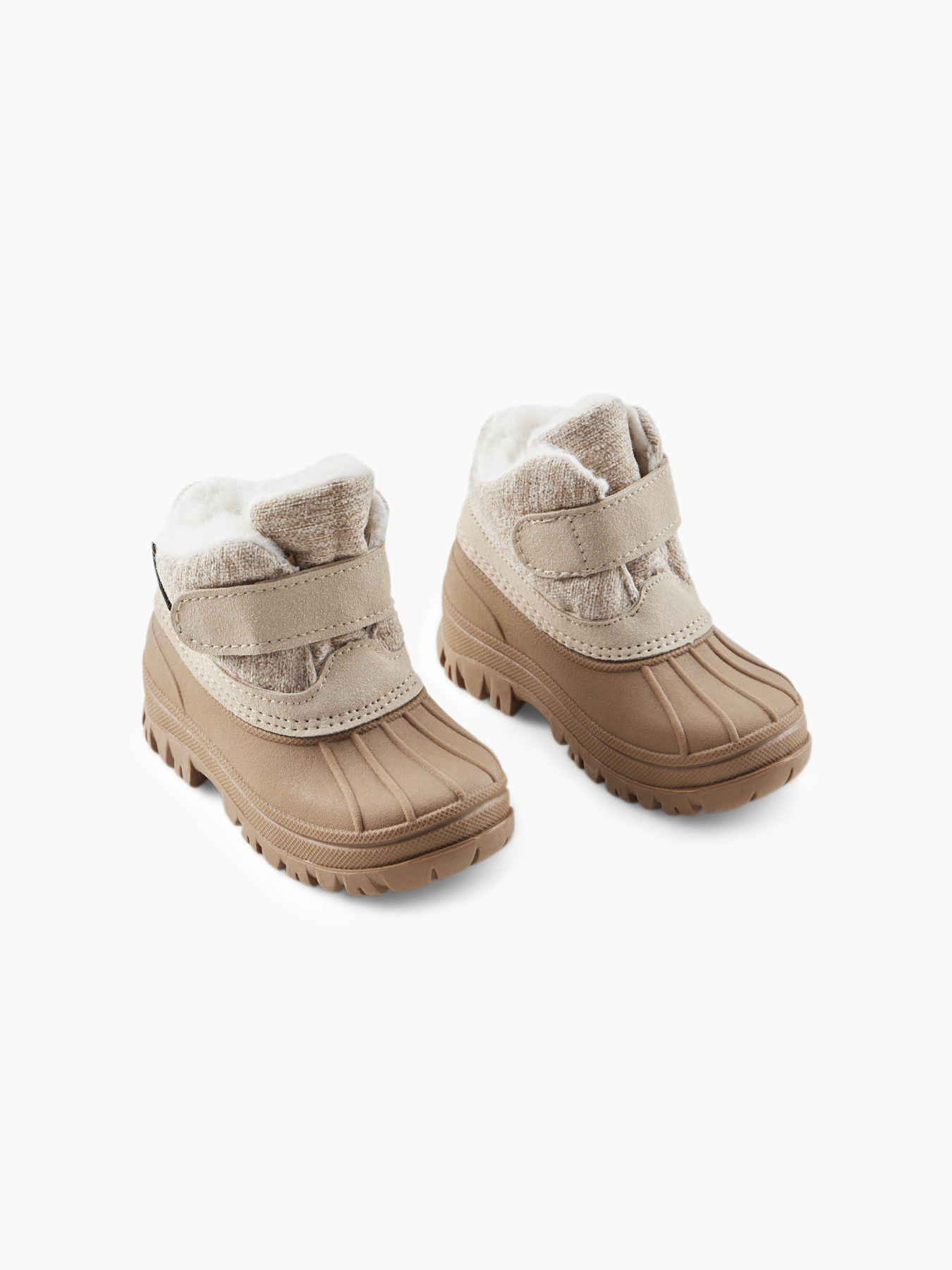 Ботинки «сноубутсы» защитят ноги от холода и влаги зимой и в демисезон. Верх изготовлен из нейлона — ткань не пропускает влагу. Потому ботинки идеальны для прогулок в слякоть. Внутри — шерстяной мех, благодаря которому нога не потеет и всегда в тепле. Подошва легкая и прочная, не скользит. Застегиваются на липучку, потому малыш сможет легко обуваться сам.