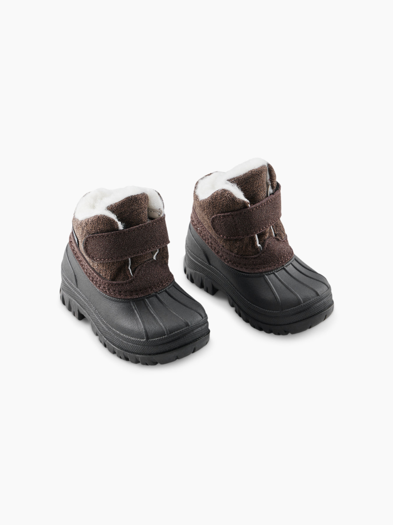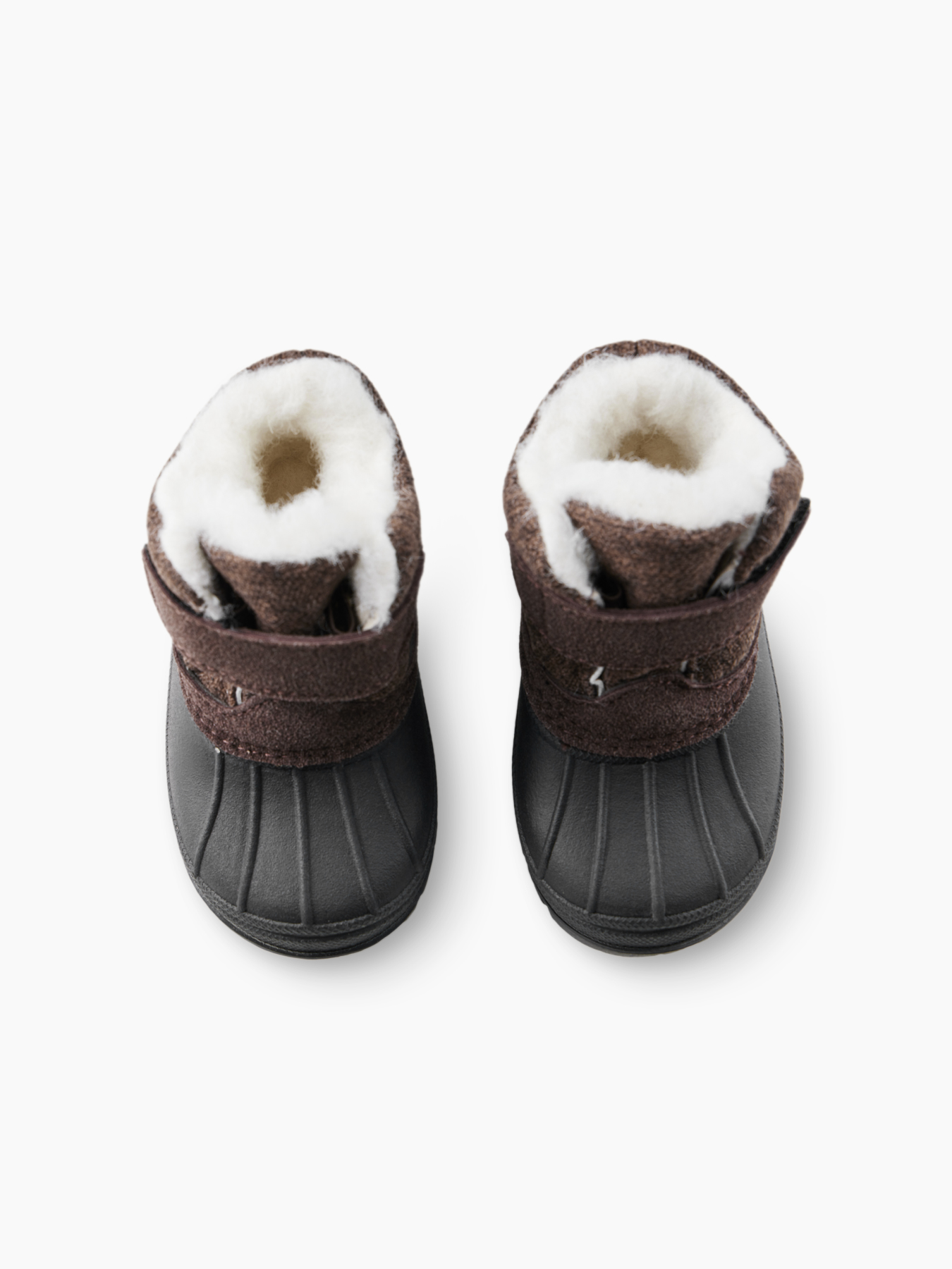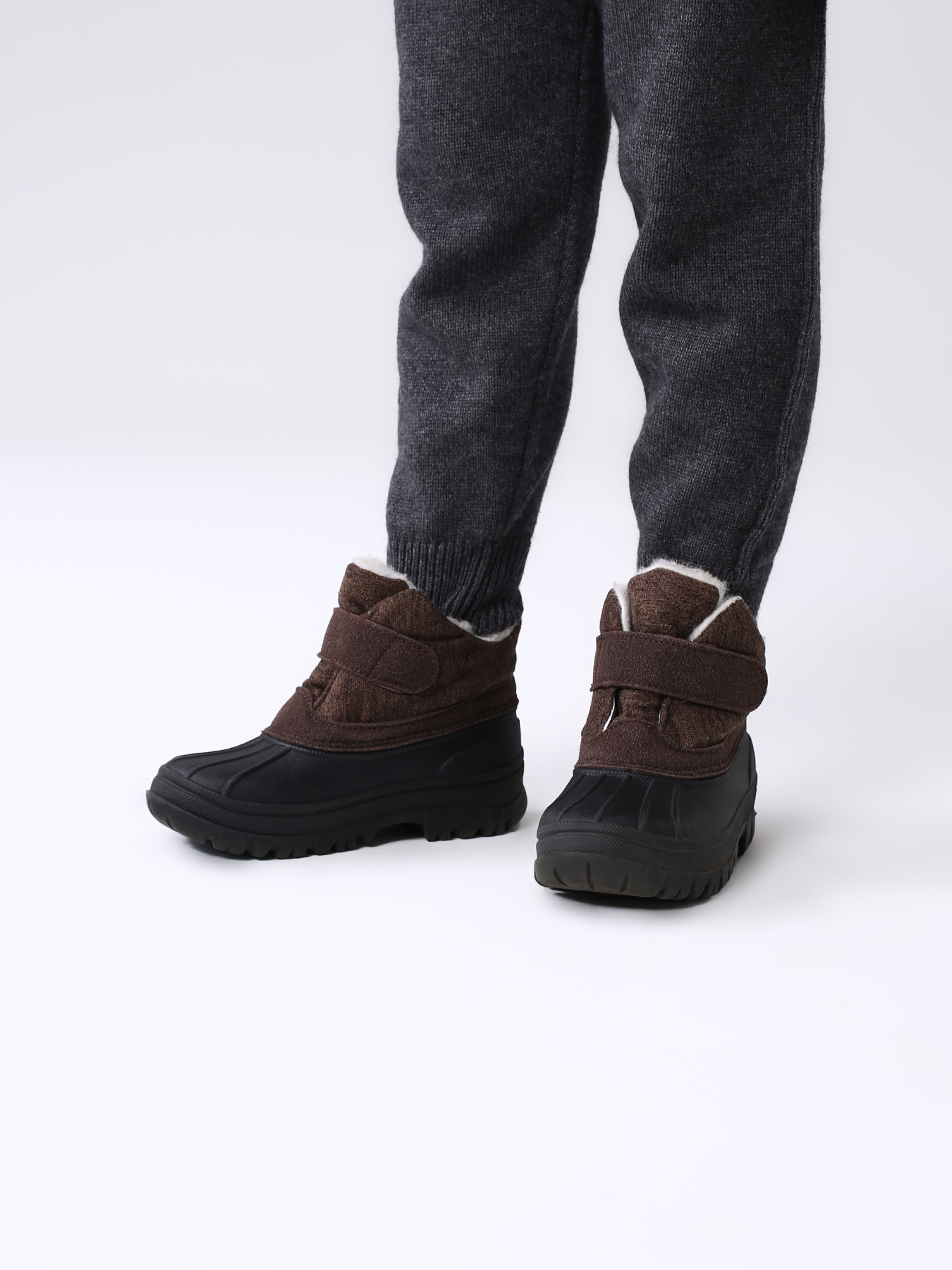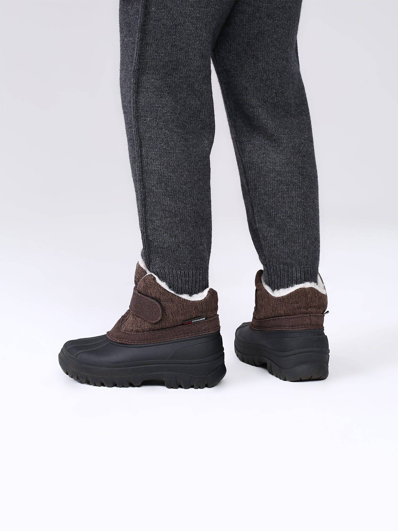 Ботинки «сноубутсы» защитят ноги от холода и влаги зимой и в демисезон. Верх изготовлен из нейлона — ткань не пропускает влагу. Потому ботинки идеальны для прогулок в слякоть. Внутри — шерстяной мех, благодаря которому нога не потеет и всегда в тепле. Подошва легкая и прочная, не скользит. Застегиваются на липучку, потому малыш сможет легко обуваться сам.