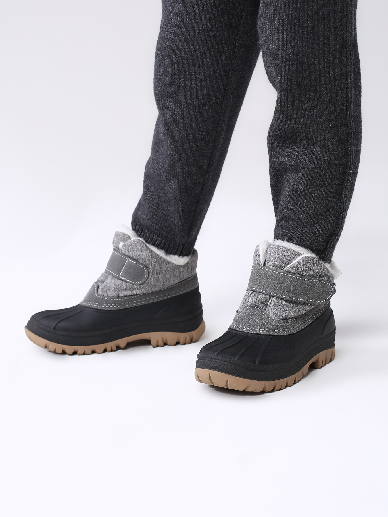 Ботинки «сноубутсы» защитят ноги от холода и влаги зимой и в демисезон. Верх изготовлен из нейлона — ткань не пропускает влагу. Потому ботинки идеальны для прогулок в слякоть. Внутри — шерстяной мех, благодаря которому нога не потеет и всегда в тепле. Подошва легкая и прочная, не скользит. Застегиваются на липучку, потому малыш сможет легко обуваться сам.