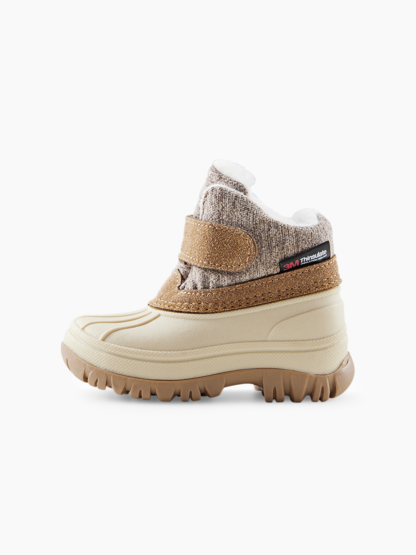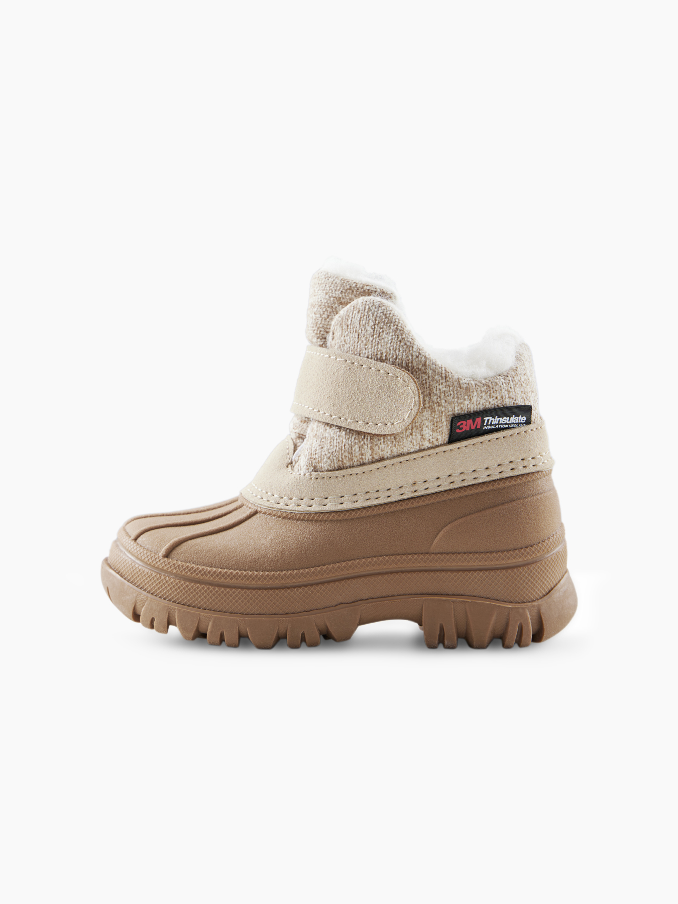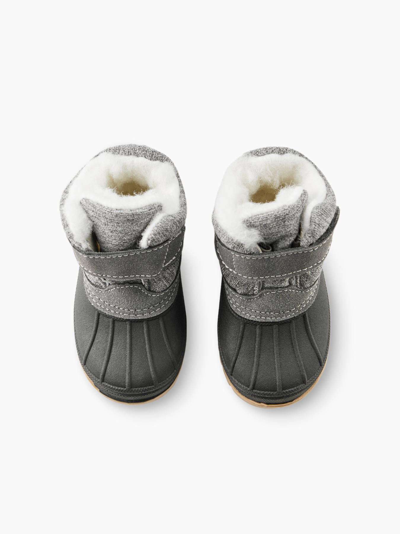 Ботинки «сноубутсы» защитят ноги от холода и влаги зимой и в демисезон. Верх изготовлен из нейлона — ткань не пропускает влагу. Потому ботинки идеальны для прогулок в слякоть. Внутри — шерстяной мех, благодаря которому нога не потеет и всегда в тепле. Подошва легкая и прочная, не скользит. Застегиваются на липучку, потому малыш сможет легко обуваться сам.
