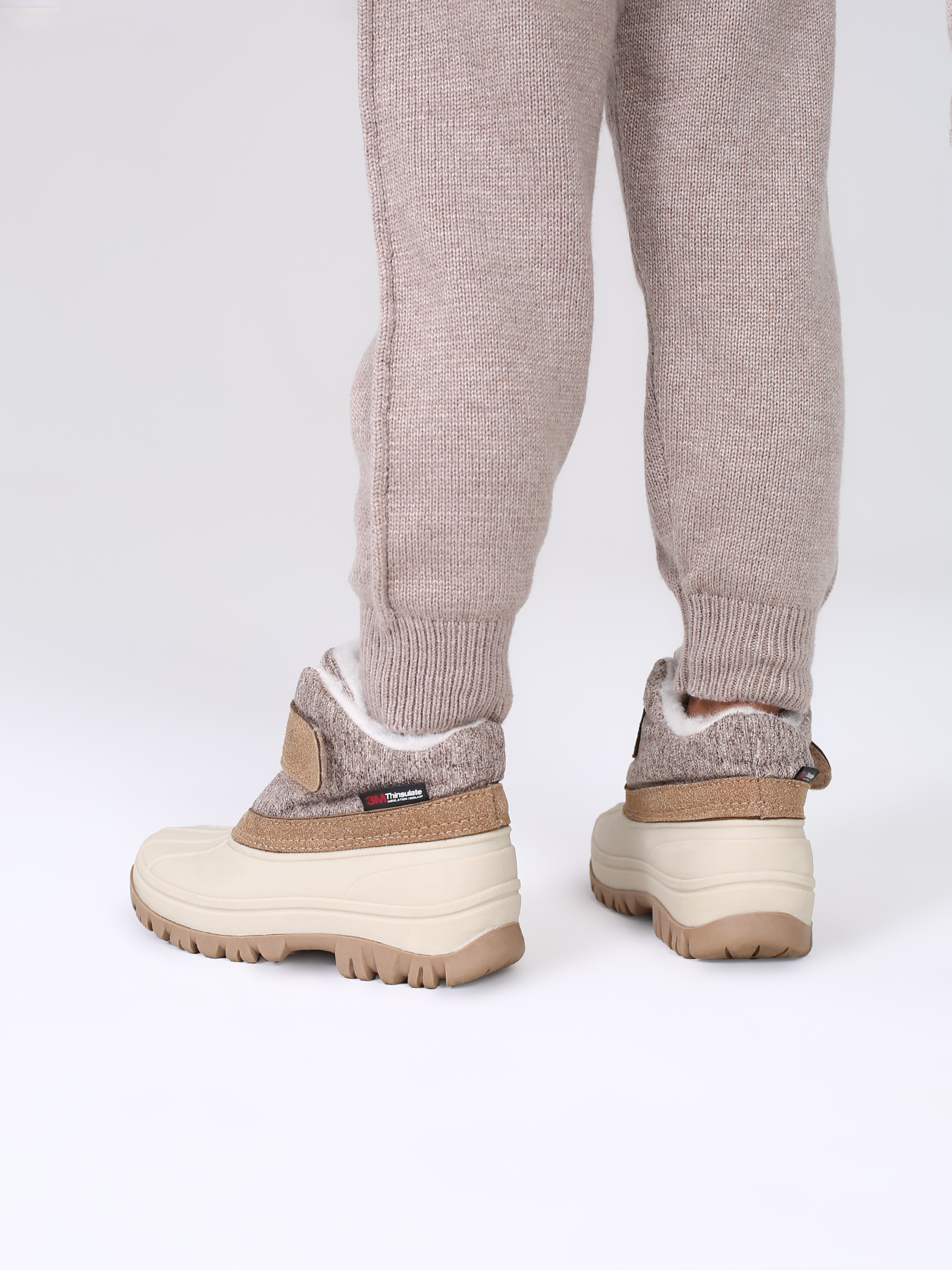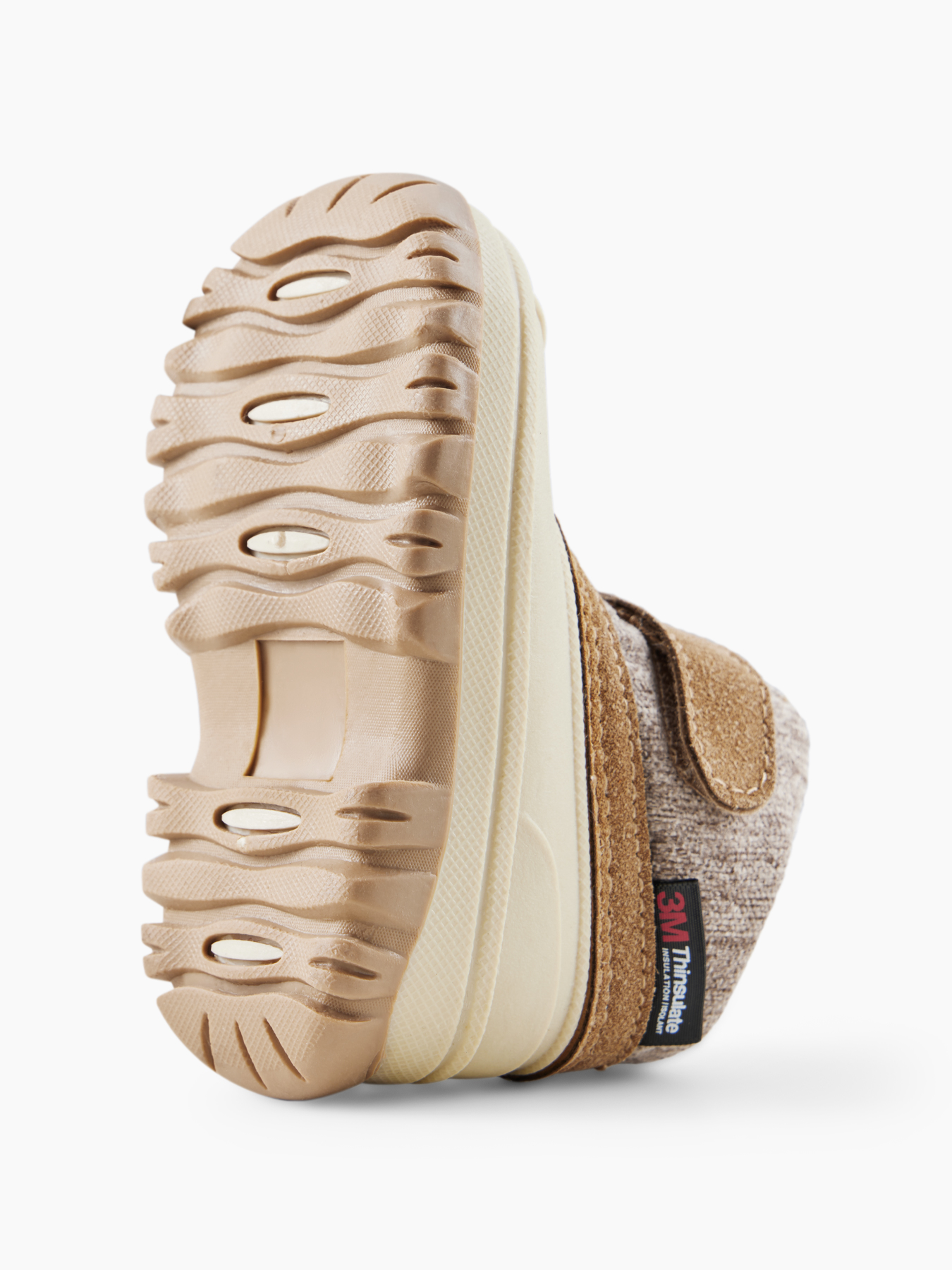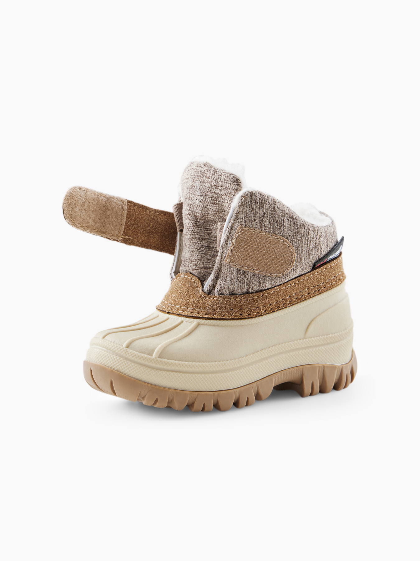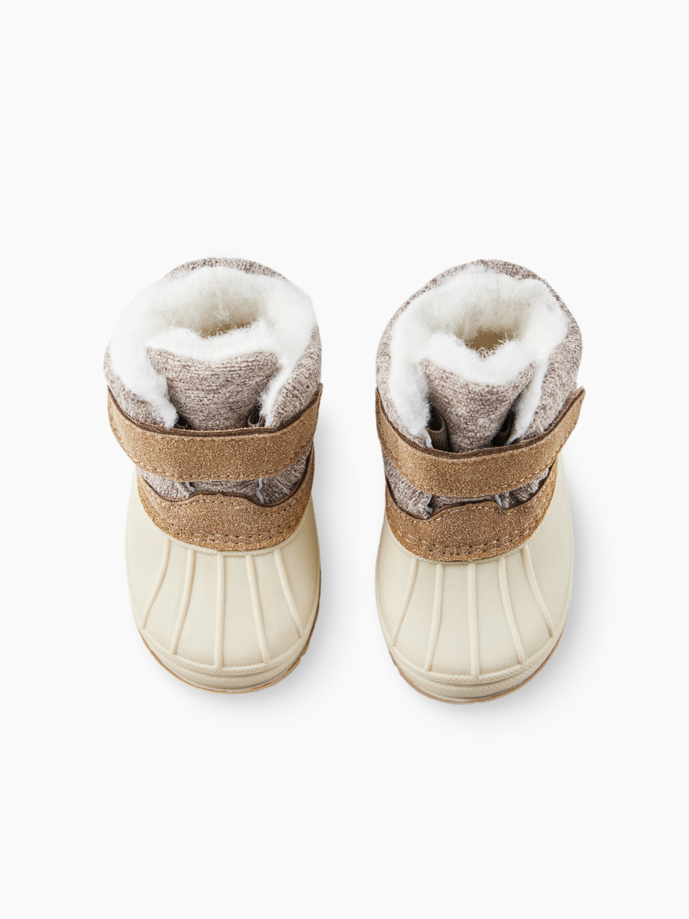 Ботинки «сноубутсы» защитят ноги от холода и влаги зимой и в демисезон. Верх изготовлен из нейлона — ткань не пропускает влагу. Потому ботинки идеальны для прогулок в слякоть. Внутри — шерстяной мех, благодаря которому нога не потеет и всегда в тепле. Подошва легкая и прочная, не скользит. Застегиваются на липучку, потому малыш сможет легко обуваться сам.