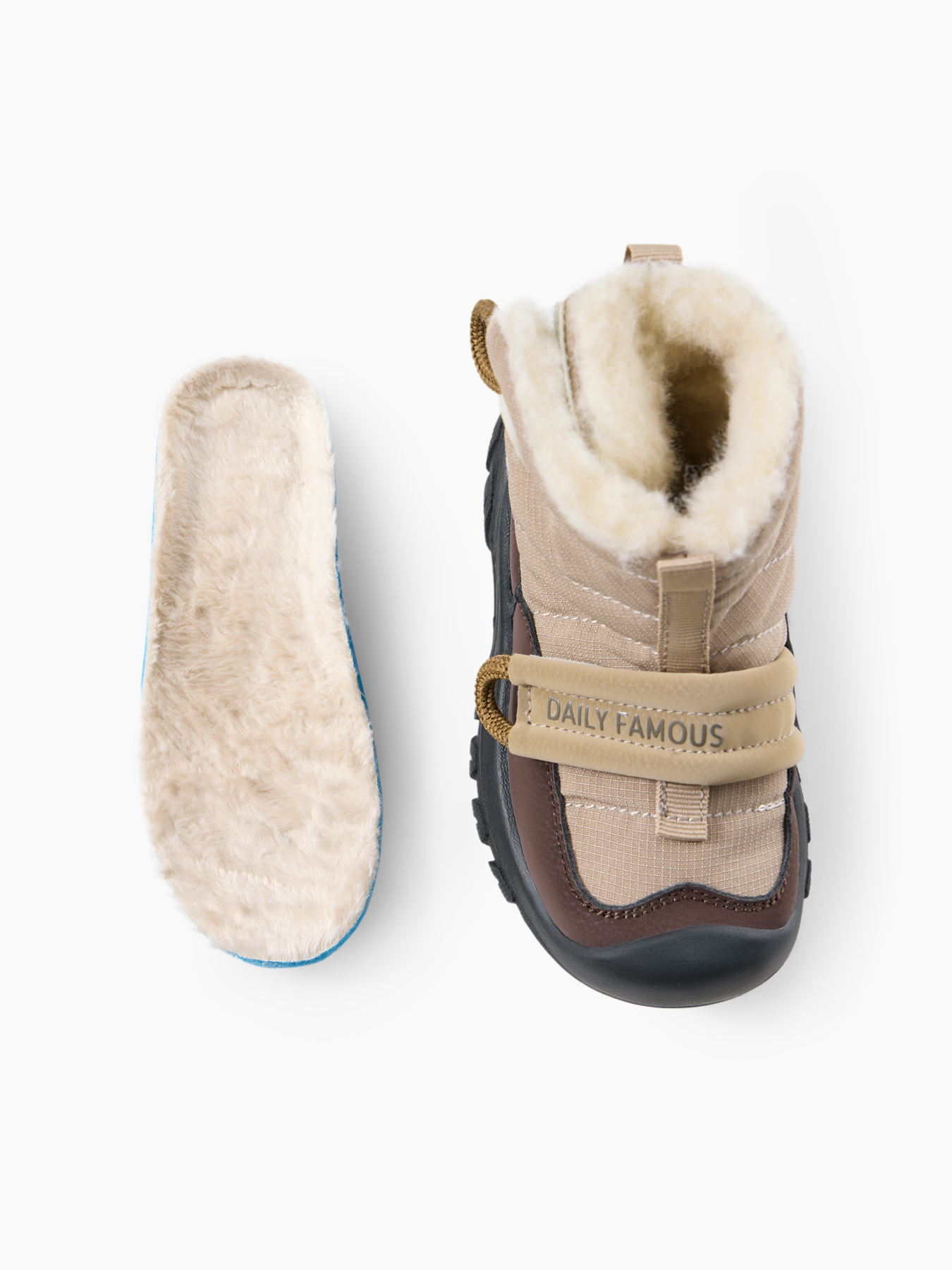 • Шерстяная мягкая подкладка — создает тепло и комфорт для стопы ребенка