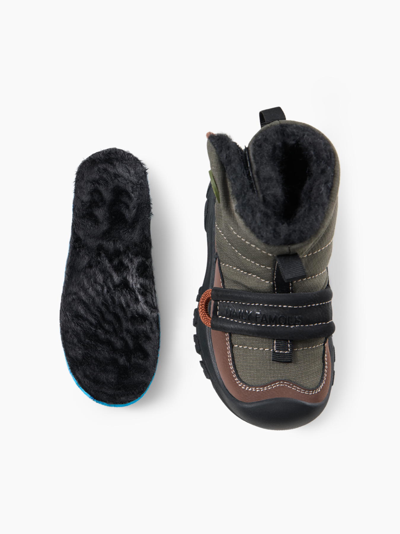 • Шерстяная мягкая подкладка — создает тепло и комфорт для стопы ребенка