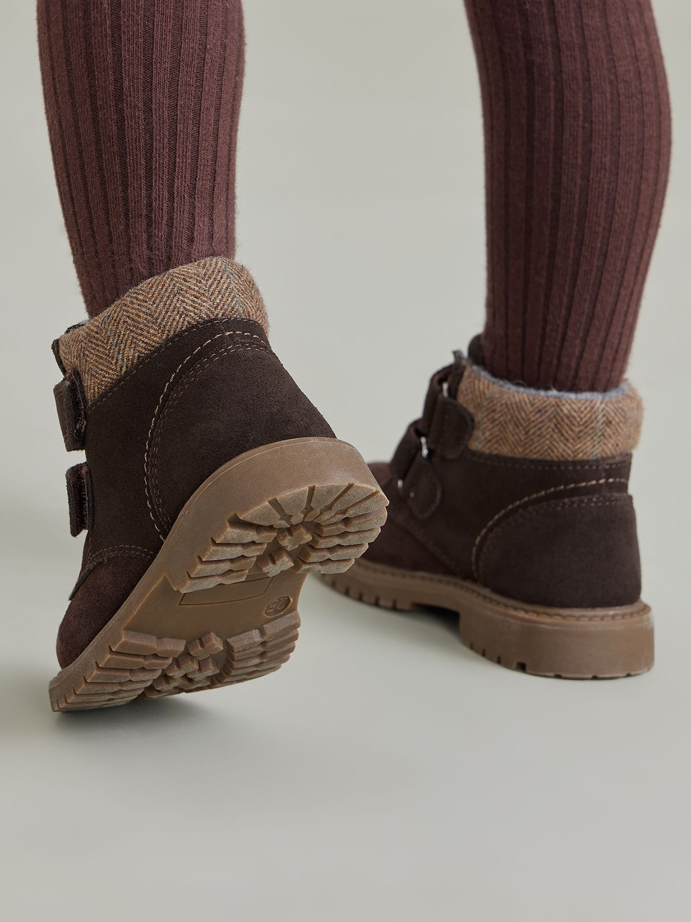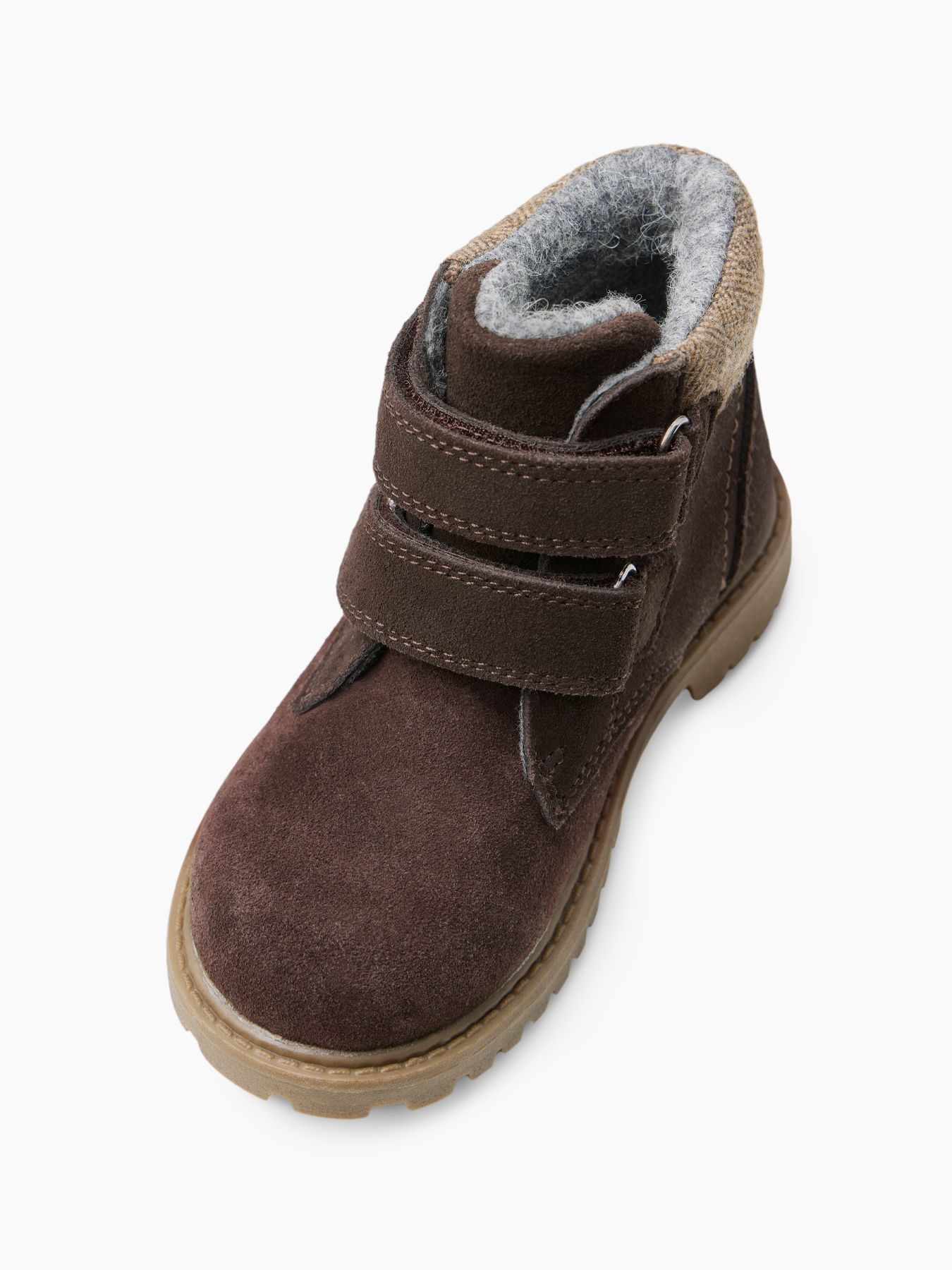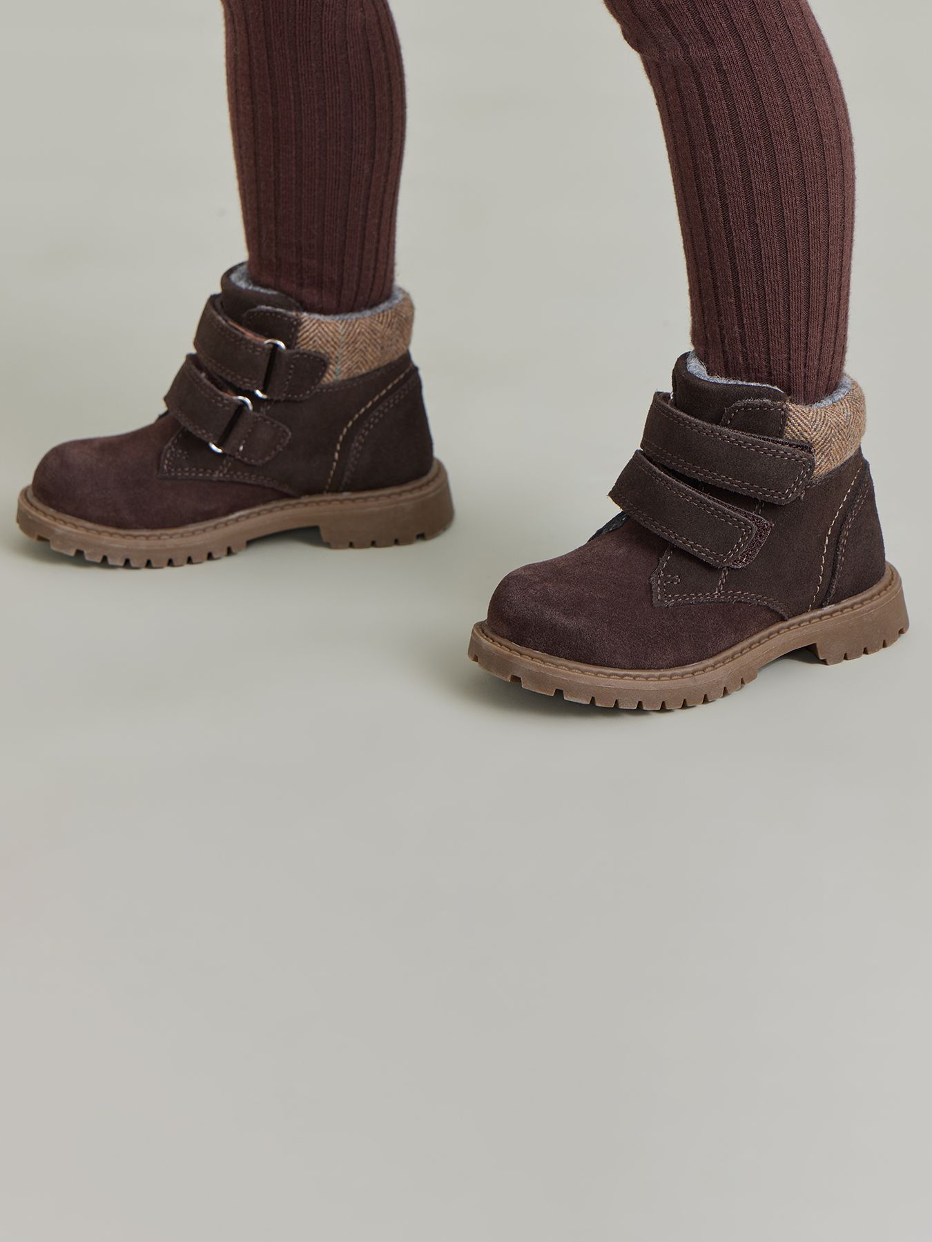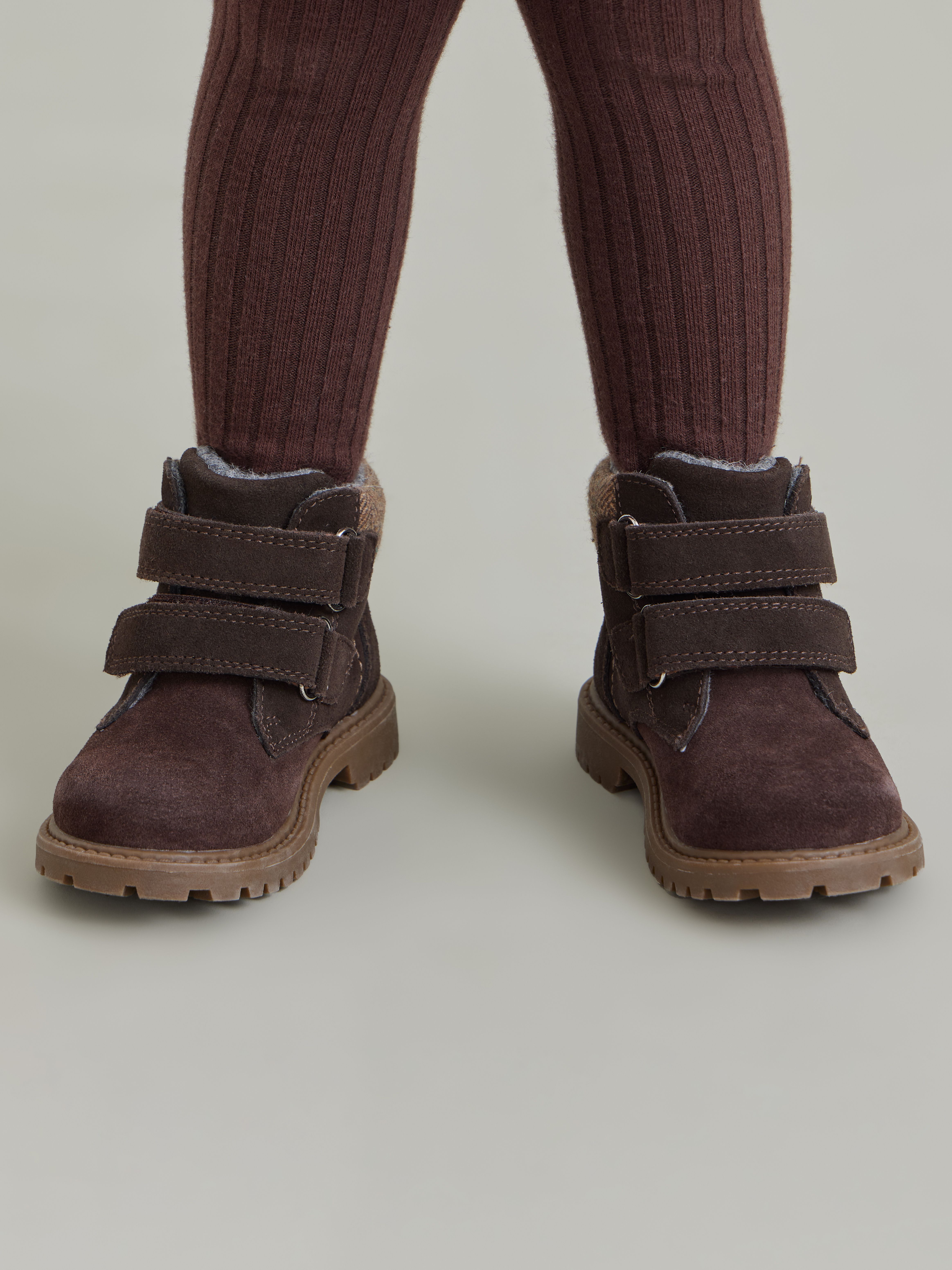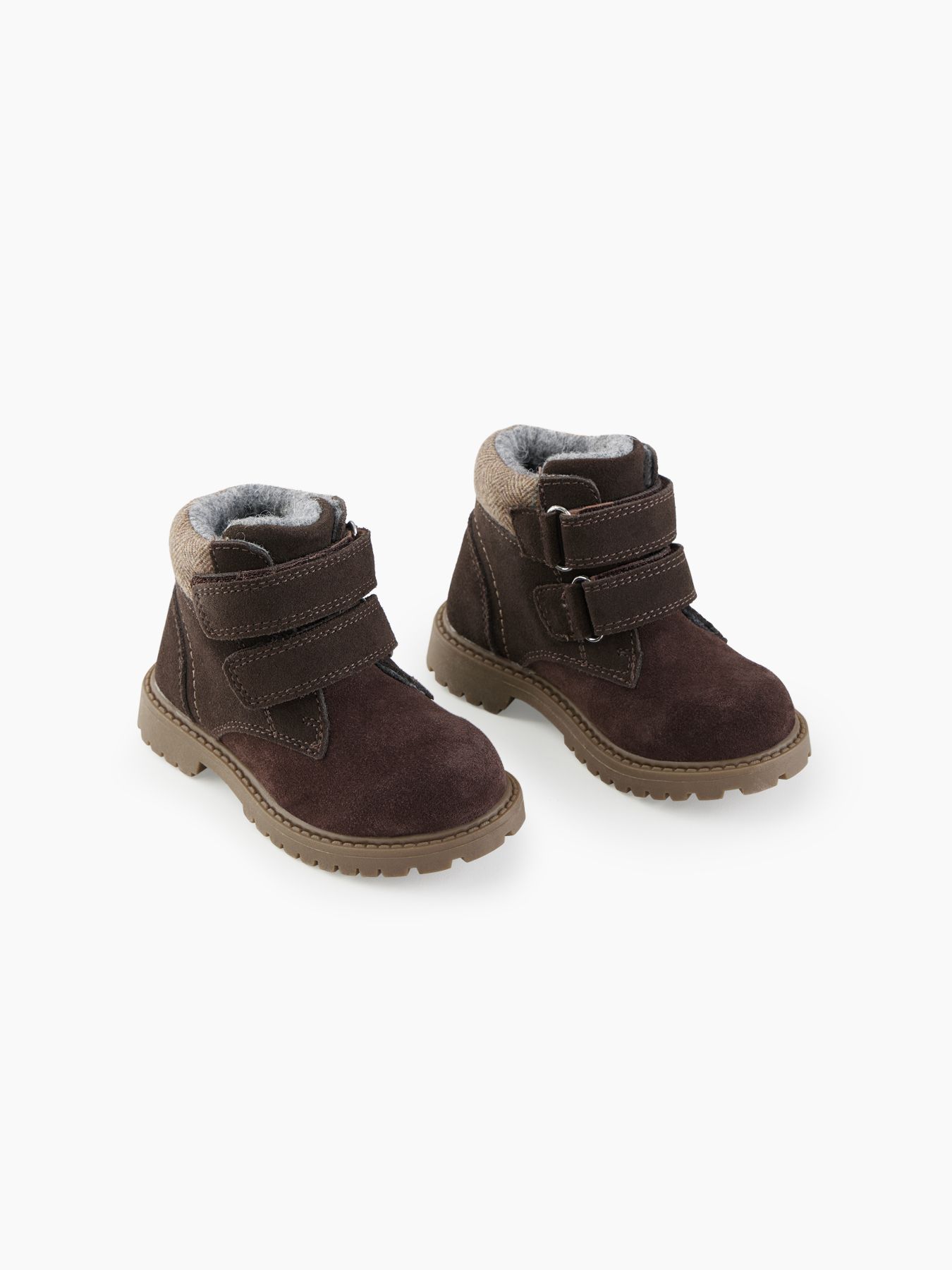 Ботинки из замши просты в уходе и заботятся о комфорте детских ножек. Подойдут мальчикам и девочкам, легко сочетаются с демисезонной одеждой разных цветов. Натуральный материал хорошо облегает ногу, не сковывает движения, не деформируется. Внутри байковая шерстяная подкладка, которая сохраняет тепло, при этом не давая ноге вспотеть. Небольшой каблук, круглый нос, жесткая пятка, гибкая нескользящая подошва - благодаря этому ребенок не устанет от долгой ходьбы. Застегиваются на липучку: малыш сможет легко одеваться сам дома и в детском саду. Ботинки просто чистить, они долго сохраняют презентабельный внешний вид.