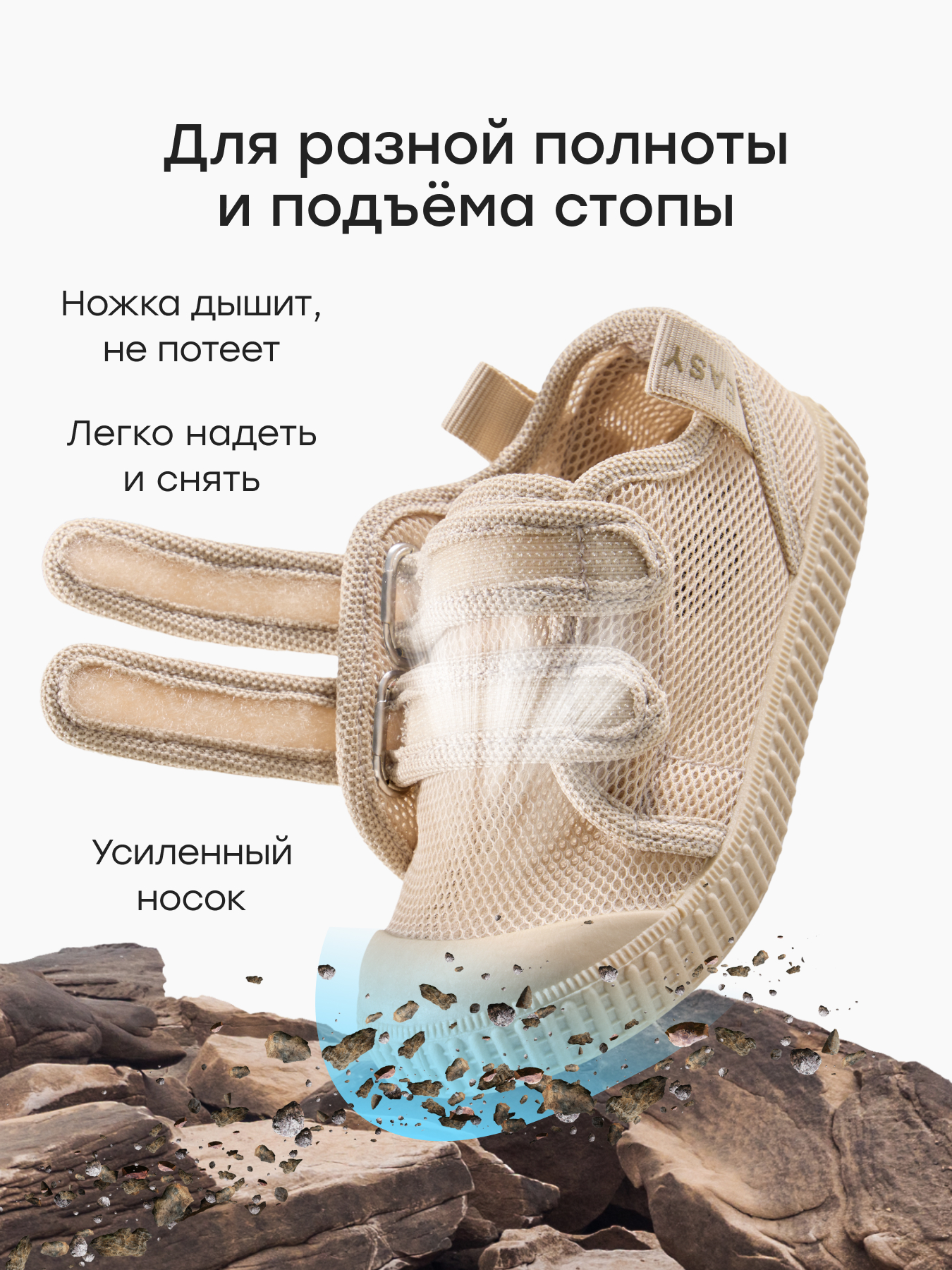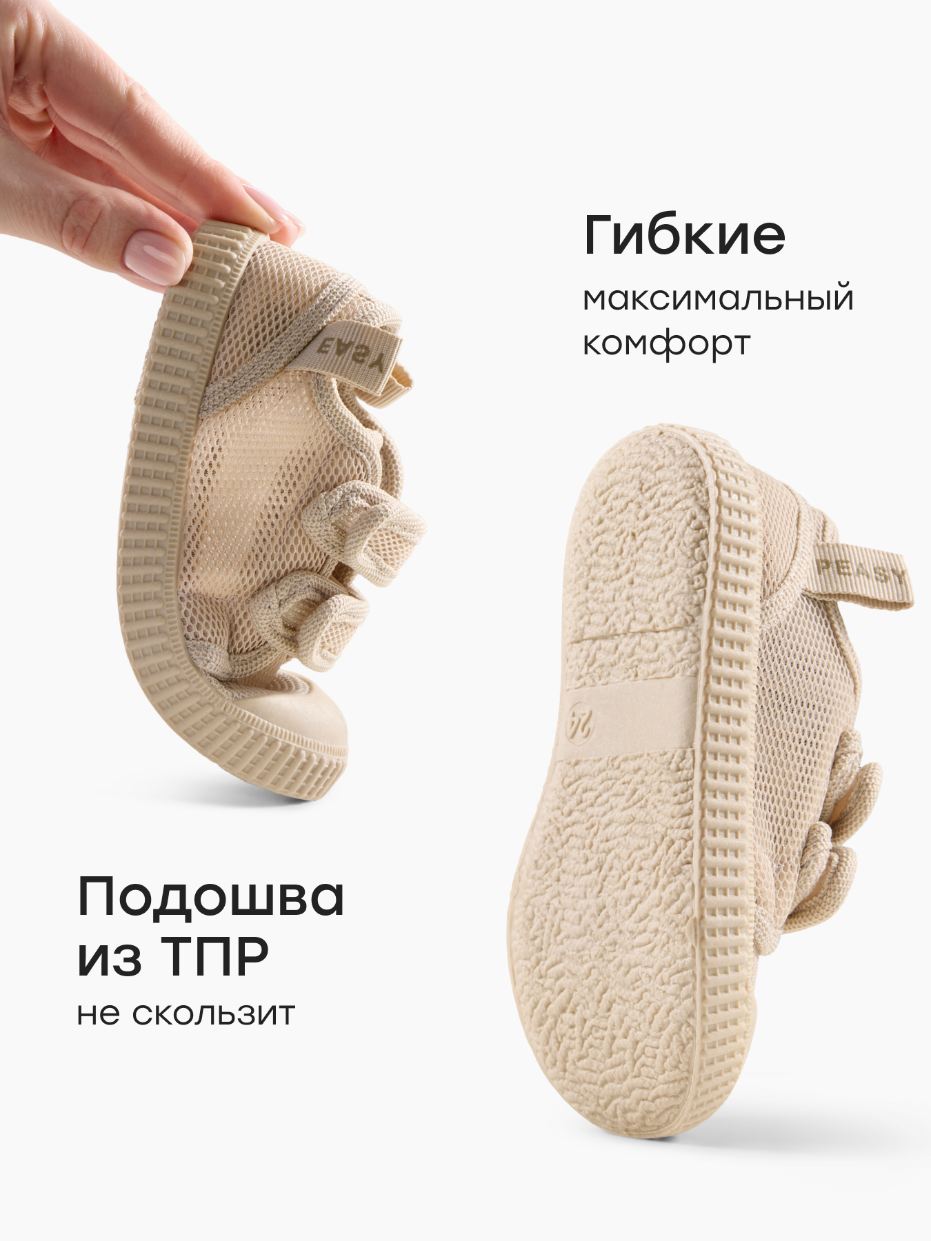• Лаконичный дизайн - нейтральные оттенки и аккуратная форма делают обувь универсальным вариантом, который подходит как девочкам, так и мальчикам, гармонично дополняют спортивные комплекты и более аккуратные повседневные образы