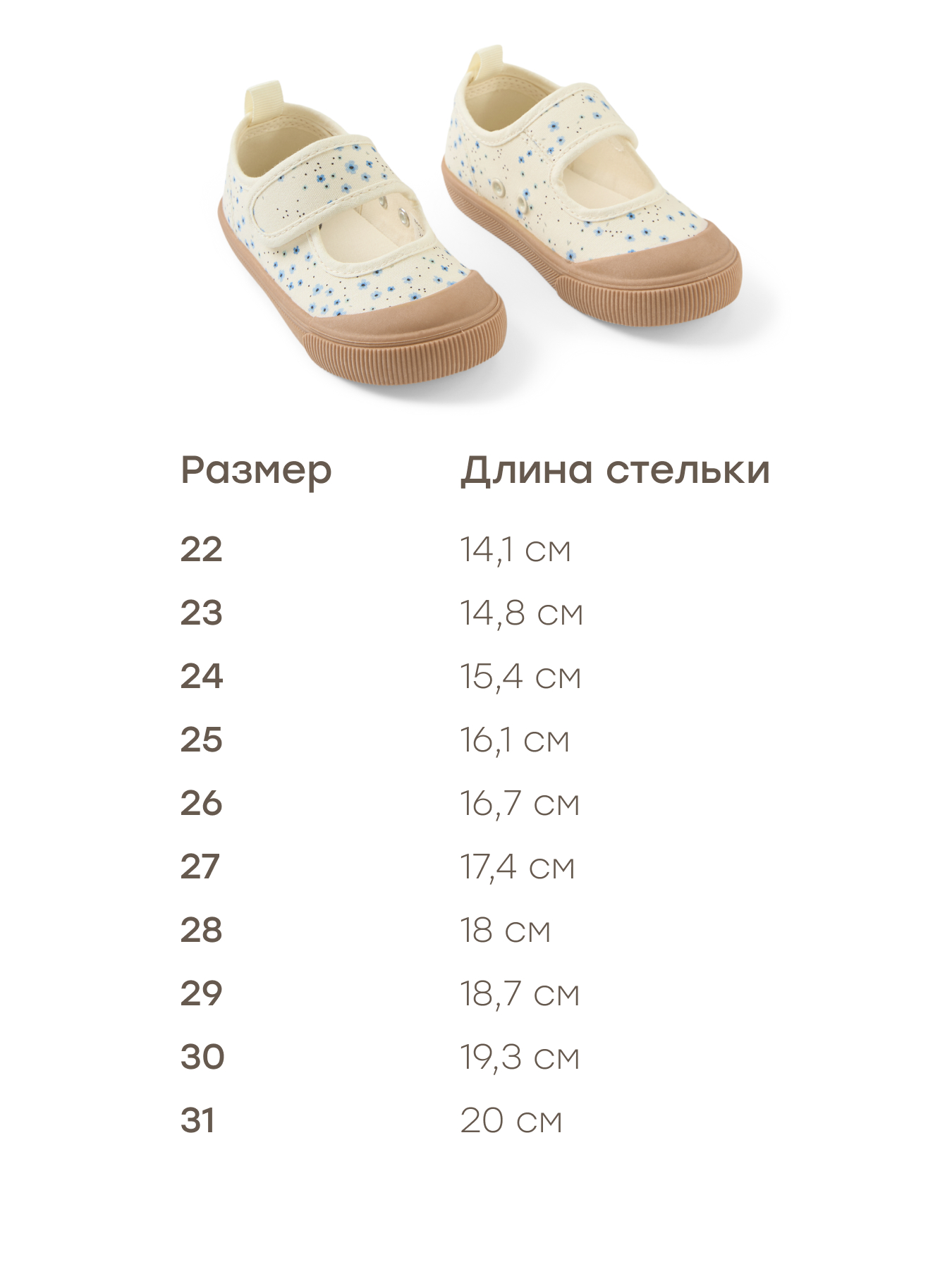 Длина стопы, см 13.1 13.8 14.4 15.1 15.7 16.4 17 17.7 18.3 19