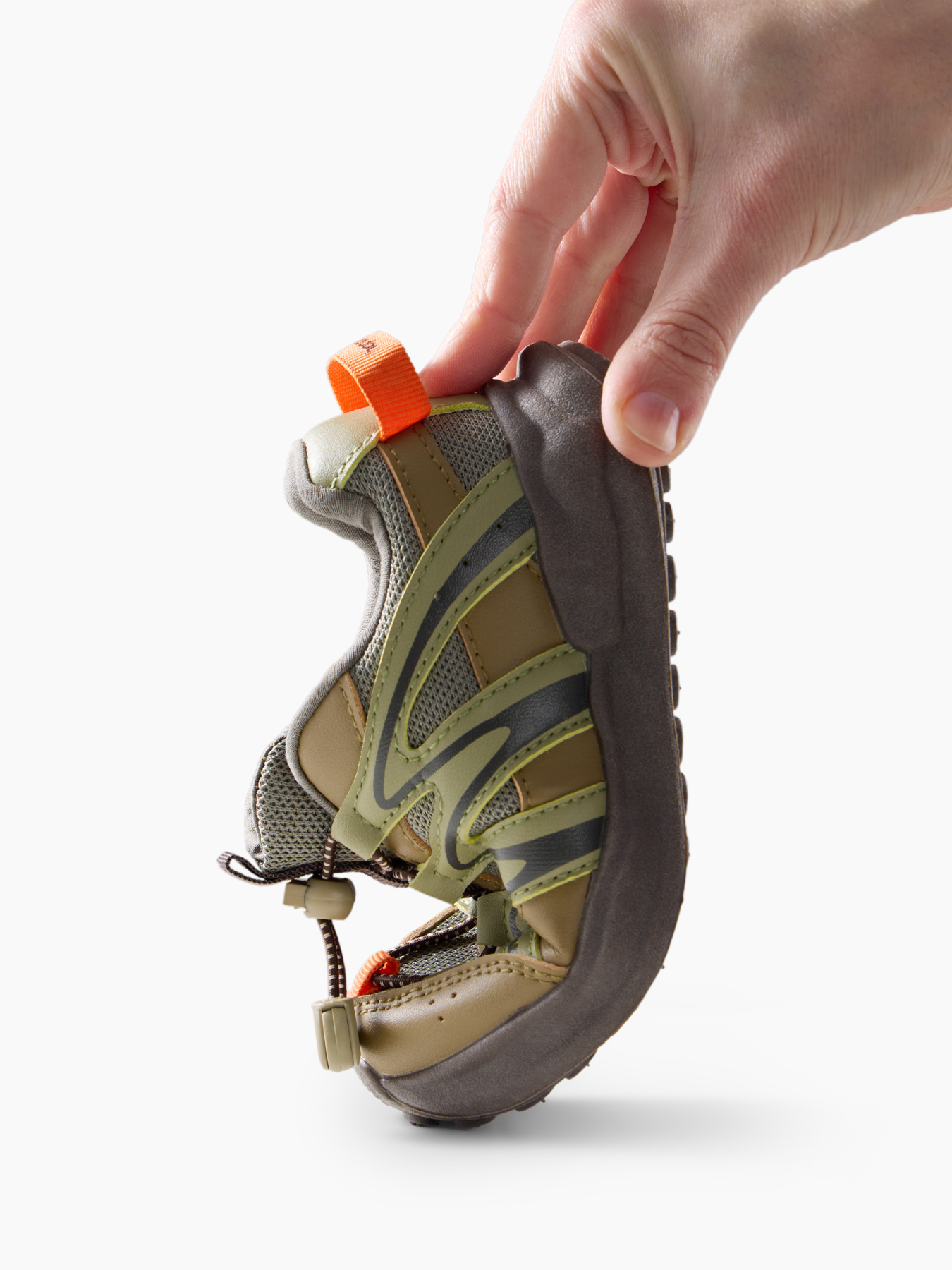 • Быстрое обувание — шнурки-резинки с фиксатором и петелька на заднике позволяют надевать и снимать кроссовки без завязывания.