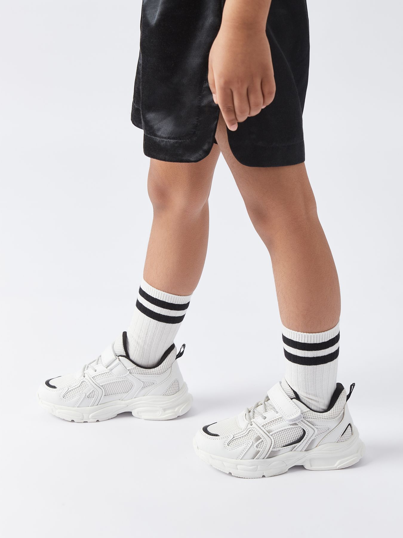 Классические кроссовки подойдут для прогулок и занятий спортом. Верх и стелька из дышащего текстиля помогают ножкам не потеть даже при активных нагрузках. Застёжка регулируемая, позволяет быстро надевать и снимать обувь. Мягкие кроссовки не натирают. Анатомически правильная конструкция: пятка слегка приподнята по отношению к носку, жёсткий задник, круглый носок. Благодаря этому стопы малыша развиваются правильно. Лёгкая и удобная обувь на каждый день.