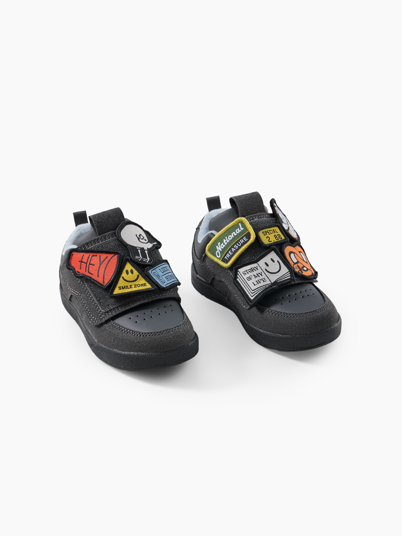 • Яркий дизайн с патчами — привлекает внимание и нравится детям. Ребёнок может самостоятельно прикреплять и менять патчи, что развивает творческое мышление и позволяет персонализировать обувь под настроение или образ