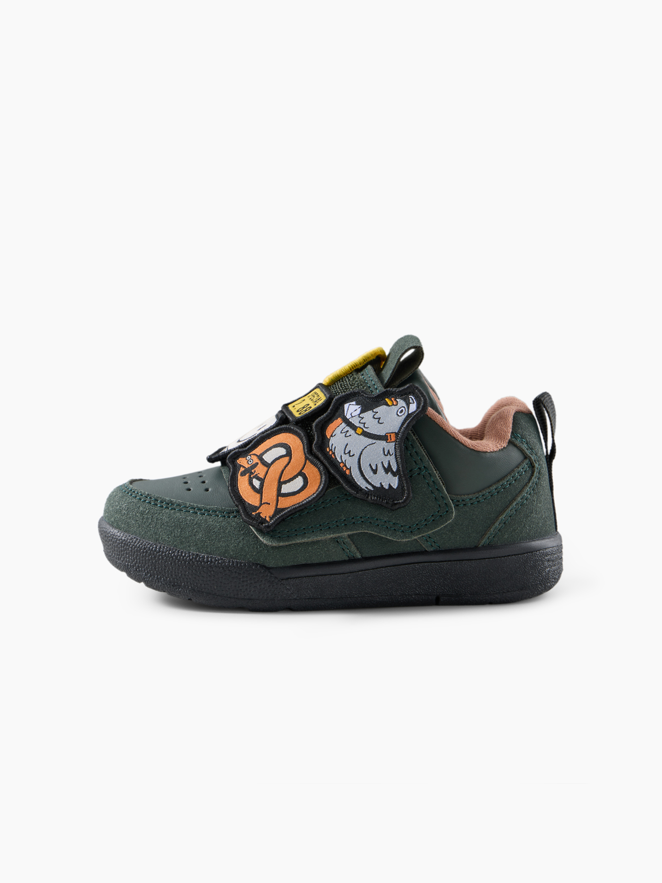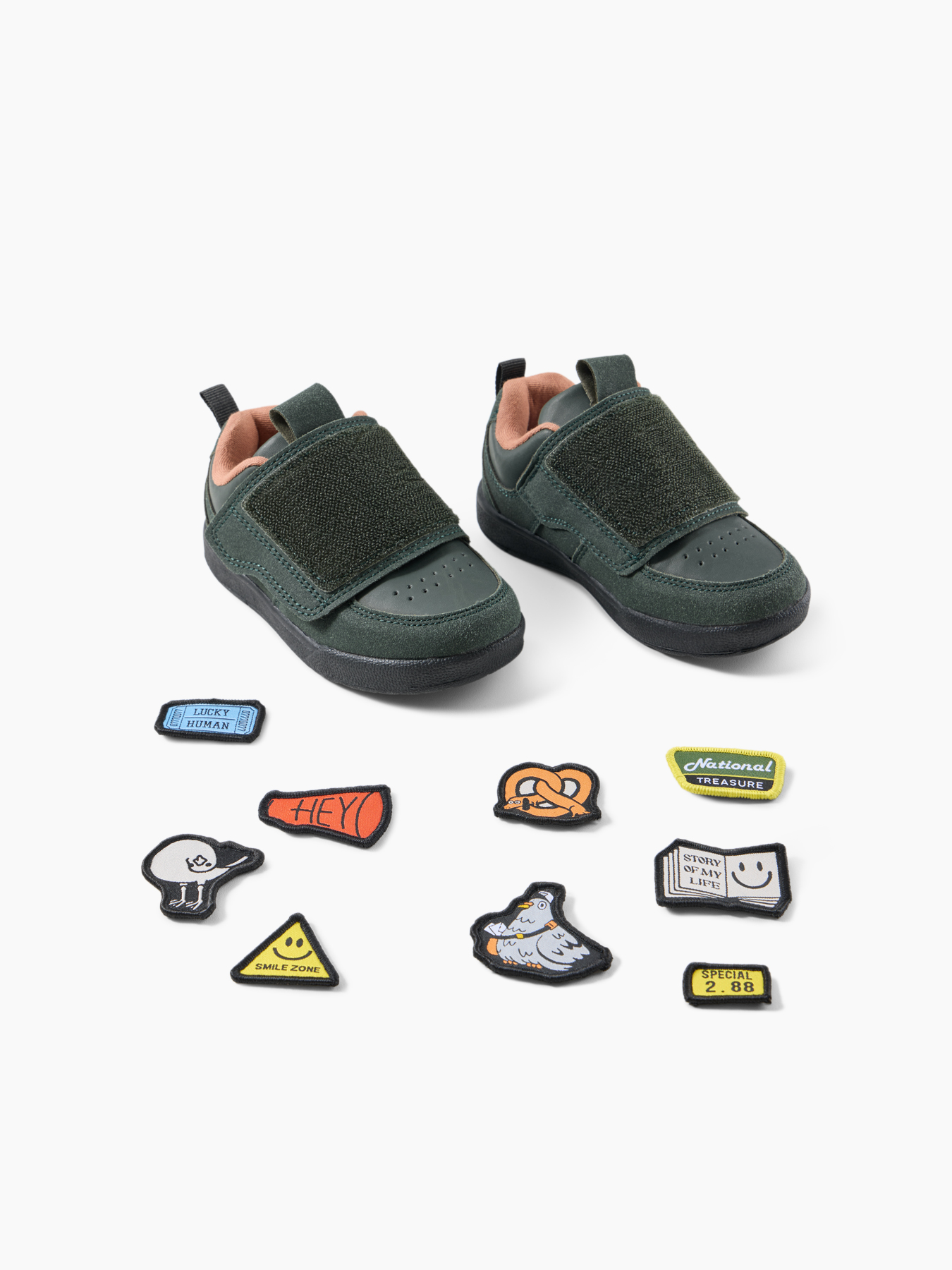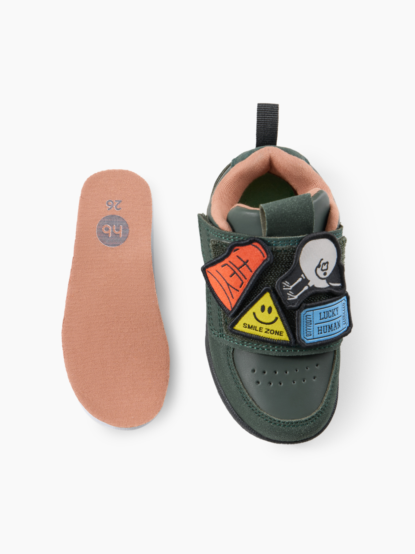 • Яркий дизайн с патчами — привлекает внимание и нравится детям. Ребёнок может самостоятельно прикреплять и менять патчи, что развивает творческое мышление и позволяет персонализировать обувь под настроение или образ