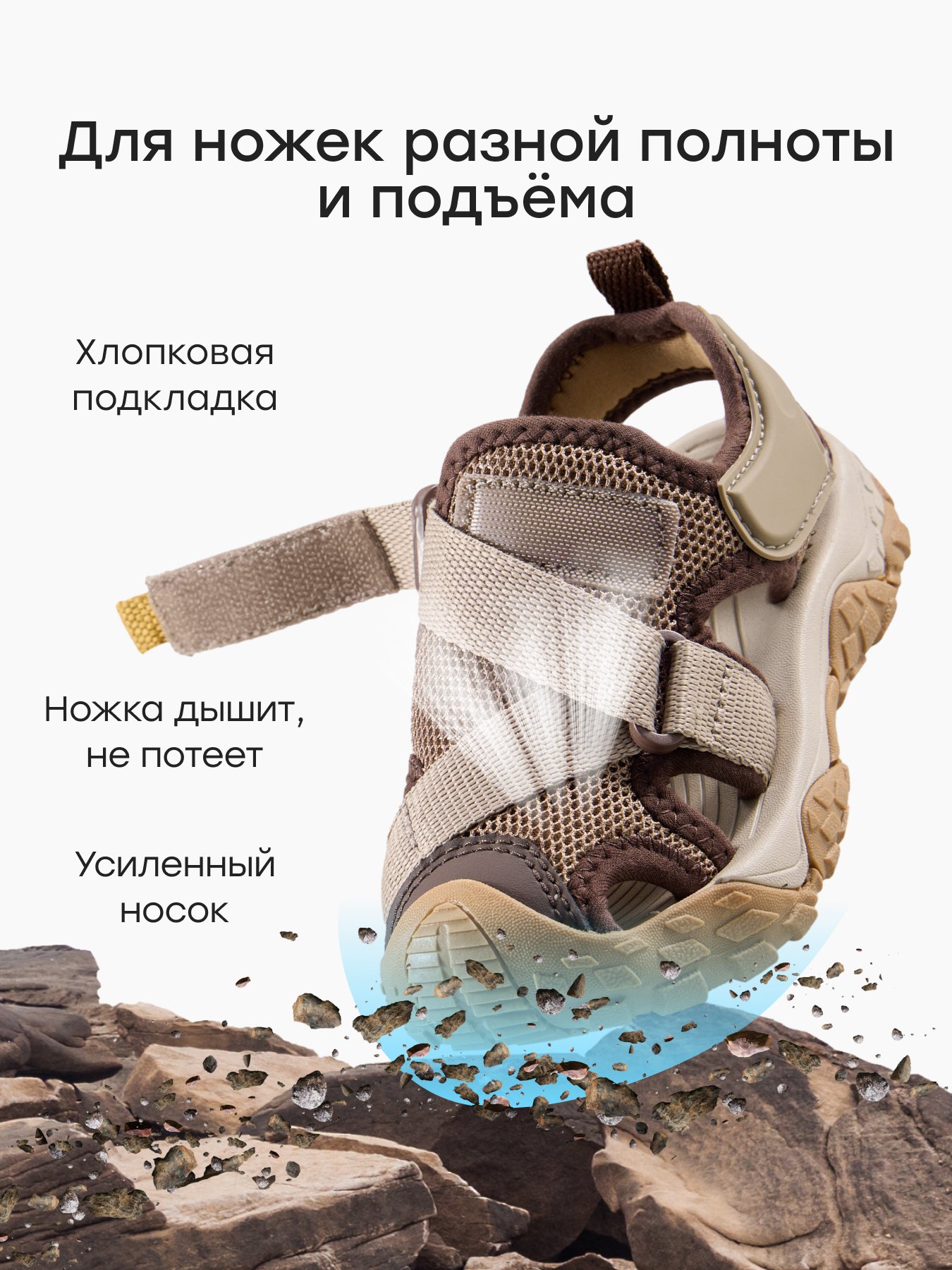 Сандалии детские на лето — лёгкая и удобная модель для тёплой погоды, созданная с учётом потребностей активного ребёнка. Обувь подходит для повседневной носки и длительных прогулок, обеспечивая комфорт в течение всего дня. Продуманная конструкция не утяжеляет шаг и помогает сохранить естественное движение стопы. В сандалиях удобно играть во дворе, гулять в парке и отдыхать на природе. Пара рассчитана на активное использование и хорошо подходит для тёплого сезона.