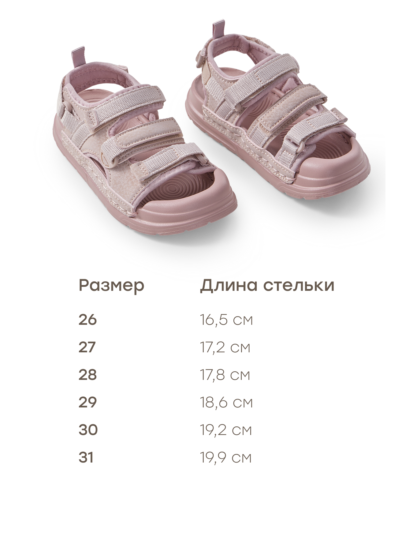 Длина стельки, см 16.5 17.2 17.8 18.6 19.2 19.9