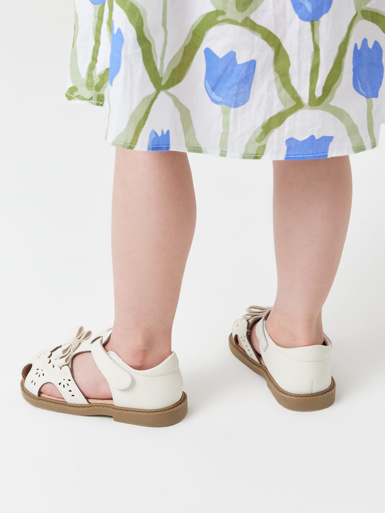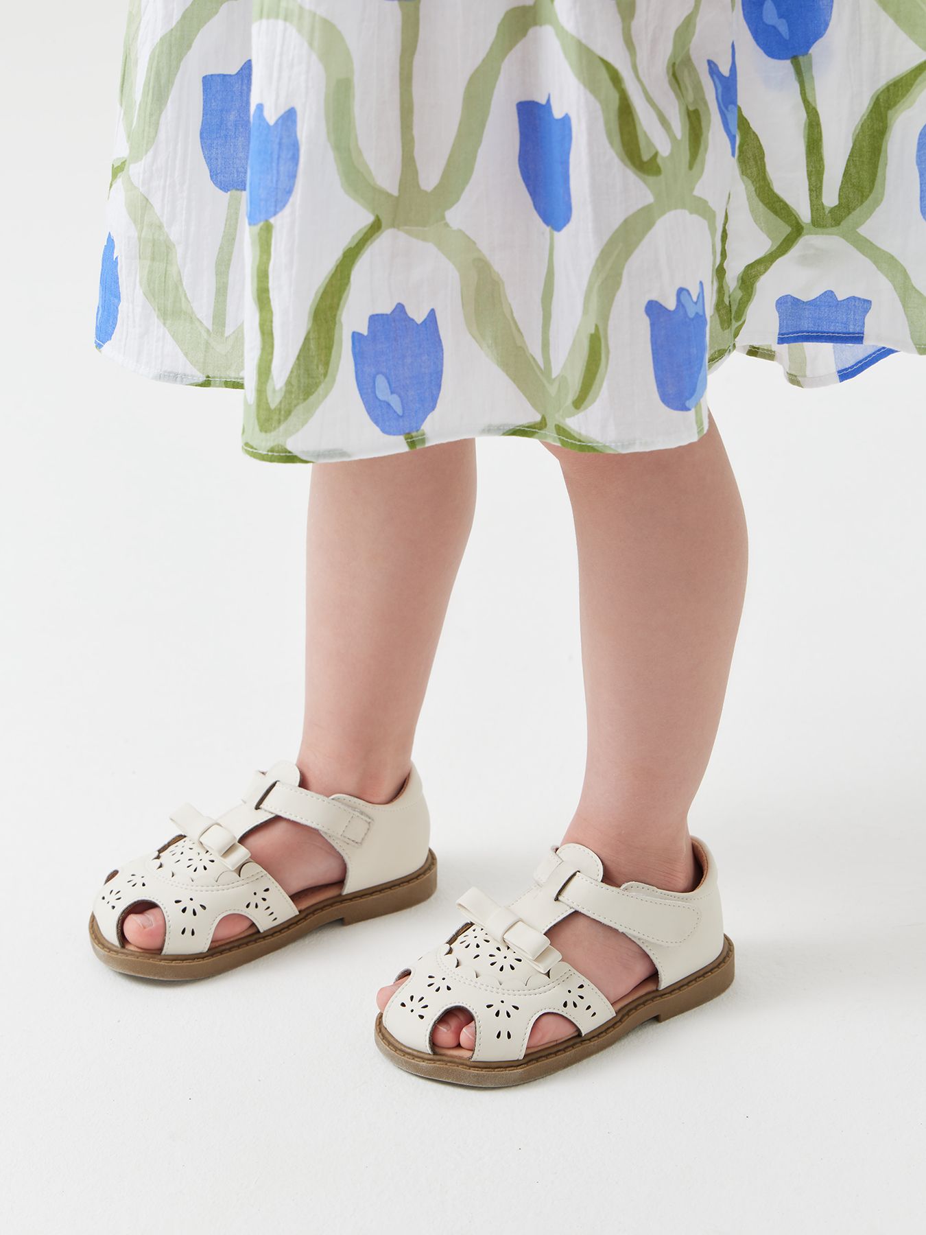 Мягкие сандалии подарят комфорт ноге в течение всего дня. Нос закрыт, чтобы защитить пальцы от травм, но оснащен отверстиями для естественной вентиляции стопы. Подошва хорошо гнется и снабжена небольшим каблуком, чтобы обеспечить правильную работу мышц при ходьбе. Задник фиксирует стопу и не дает ей заваливаться вбок. Простая застежка позволяет быстро надевать и снимать сандалии самостоятельно. Туфли станут идеальной сменкой для детского сада, их можно надеть на праздник. Сандалии отлично подойдут для лета, обеспечивая удобство во время длительных прогулок.