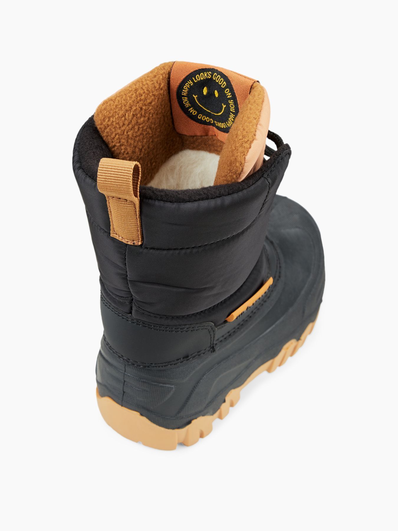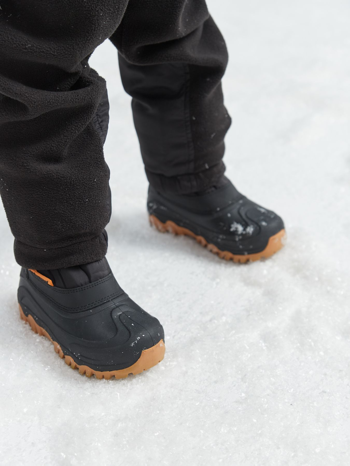 Сноубутсы незаменимы, когда на улице слякоть, много снега, лужи и при этом низкая температура. Сшиты из водоотталкивающего материала – капли влаги стекают по поверхности, не впитываются. Подошва и низ сапог сделаны из термопластичной резины – сапоги не промокнут, даже если малыш прогуляется по лужам. Толстая рифлёная подошва изолирует холод, идущий от земли, и не скользит. Удобная застёжка – резинка с зажимом – позволяет быстро надевать и снимать обувь даже малышу самостоятельно. Внутри – подкладка из меха, поэтому ножки в сноубутсах не потеют.