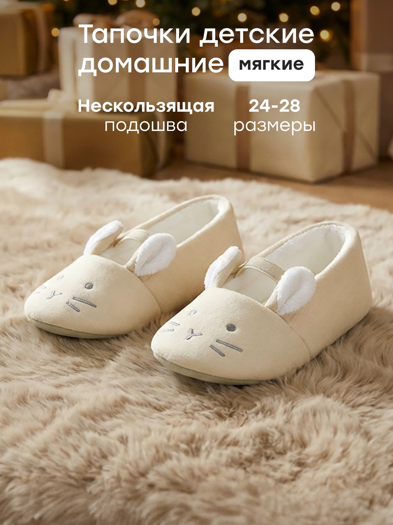 • Легкость и удобство — тапочки для дома практически не ощущаются на ноге, обеспечивая свободу движений  • Игрушечный дизайн — декоративные ушки и вышивка создают оригинальный внешний вид