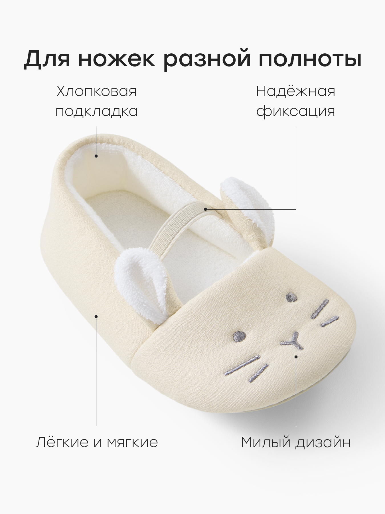 • Особенности модели декоративные объемные ушки и вышивка; эластичная резинка для фиксации ноги