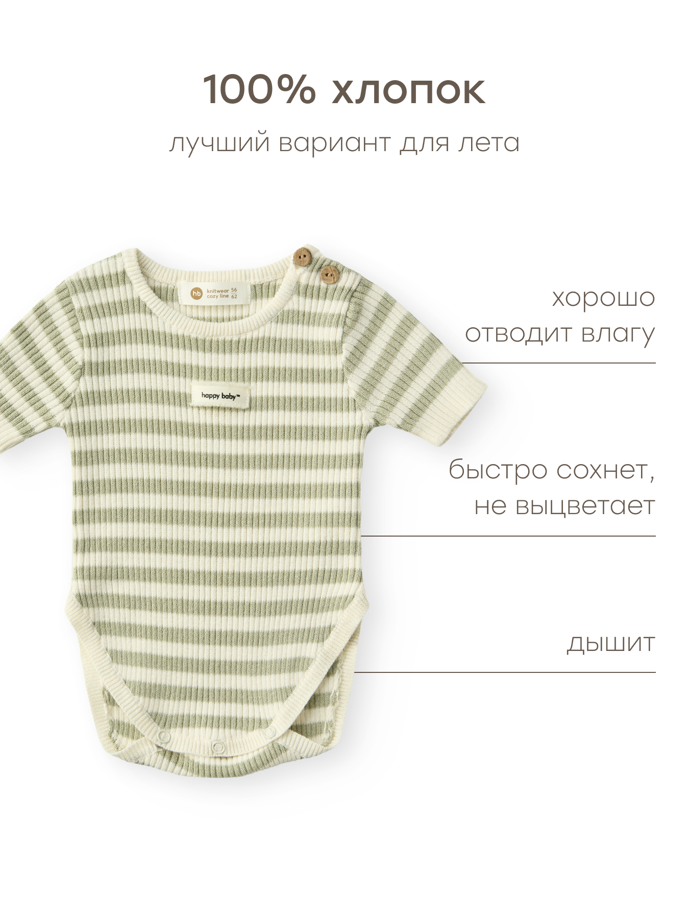 Боди для новорожденных с коротким рукавом станет идеальным вариантом для вашего малыша. Удобный песочник для новорожденных выполнен из 100% хлопка. Такой материал дышит и хорошо пропускает воздух, что особенно важно для нежной кожи новорожденного ребенка. Мягкая хлопковая ткань в рубчик гарантирует комфорт при носке.