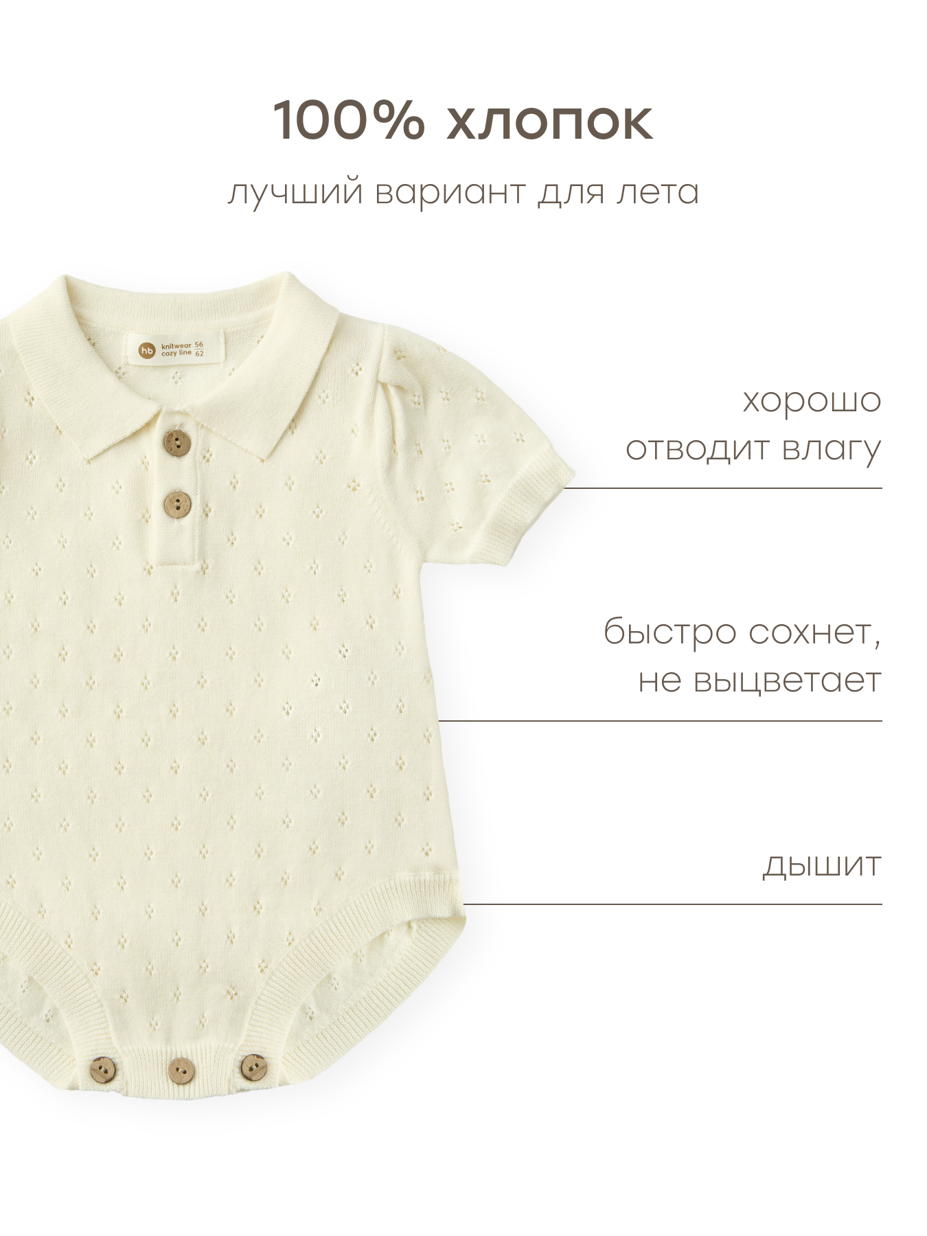 Песочник для новорожденных — это идеальный выбор для первых дней жизни вашего малыша. Универсальный предмет одежды обеспечивает комфорт в первые месяцы жизни. Приятные спокойные цвета подойдут и для мальчика и для девочки. Кроме того, воротник в стиле поло — это отличный вариант для семейных фотосессий. У песочника предусмотрено пространство под подгузник, а застежки — пуговицы помогут молодым родителям быстро его сменить. Благодаря пуговицам у горловины ребенка будет легко переодеть. Материал — 100% хлопок. Хлопковая ткань хорошо пропускает воздух и не позволит младенцу запариться или перегреться в непостоянную весеннюю погоду. Боди с коротким рукавом — это хороший выбор для поддевы в прохладные дни весной или летом.