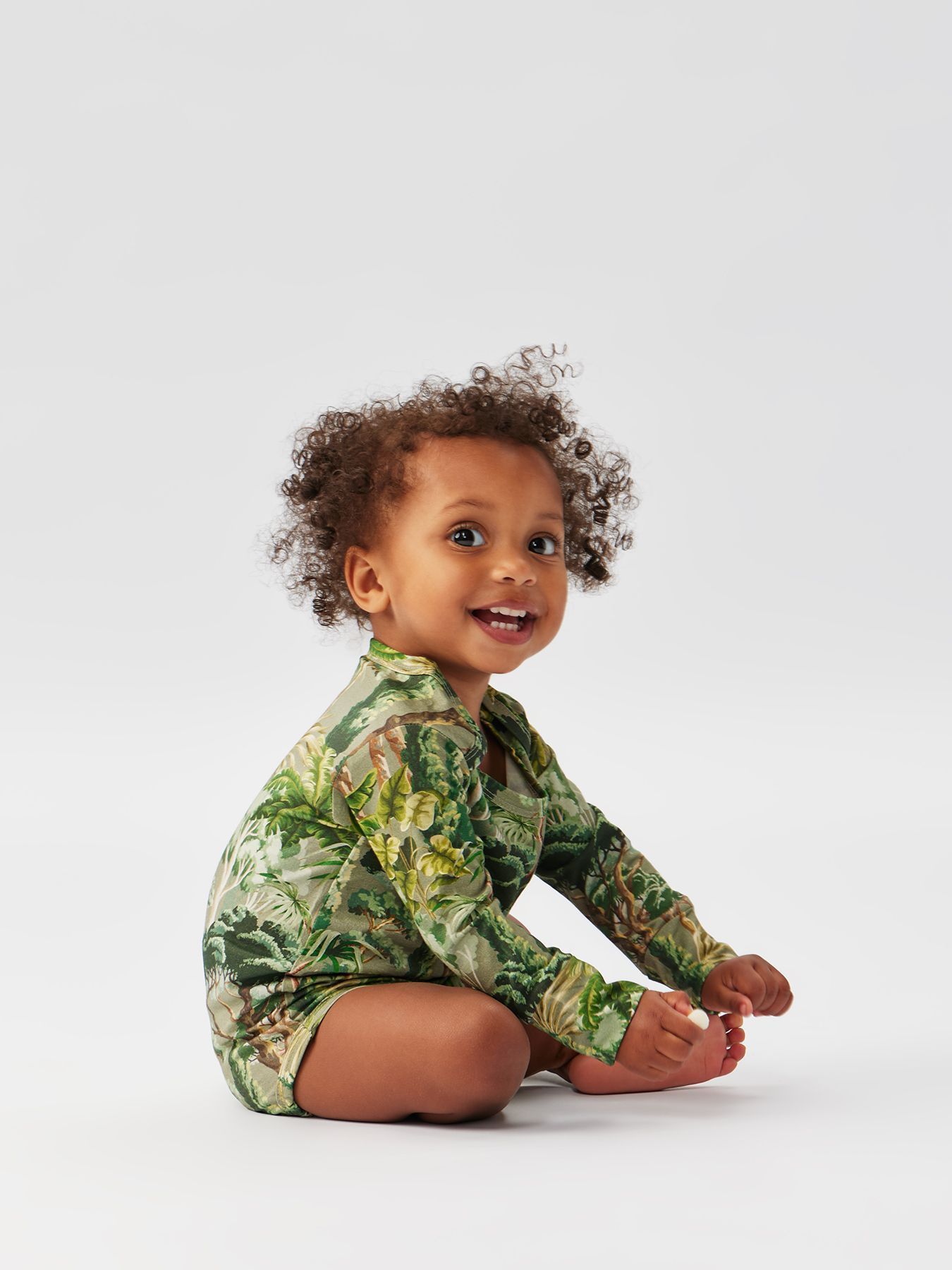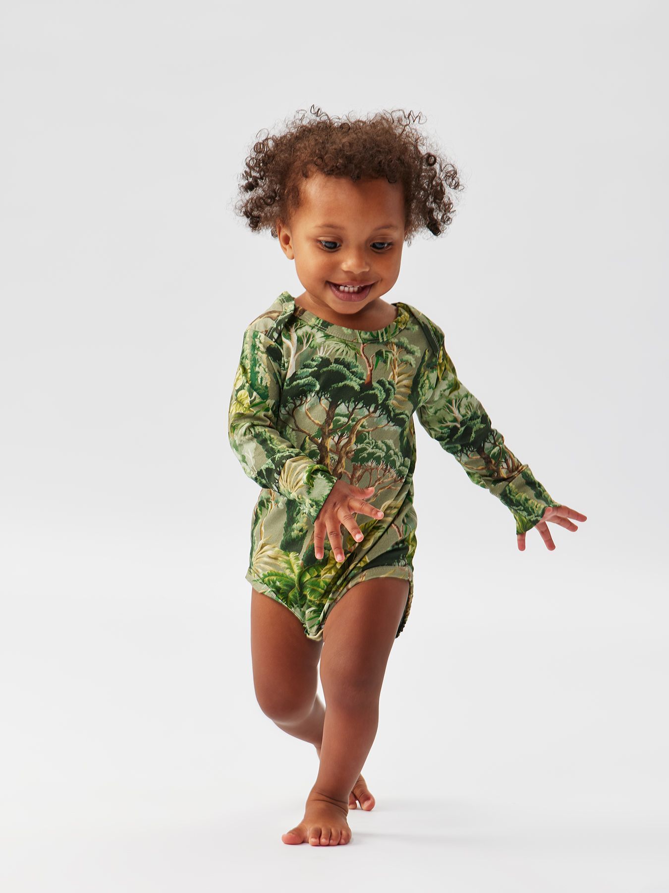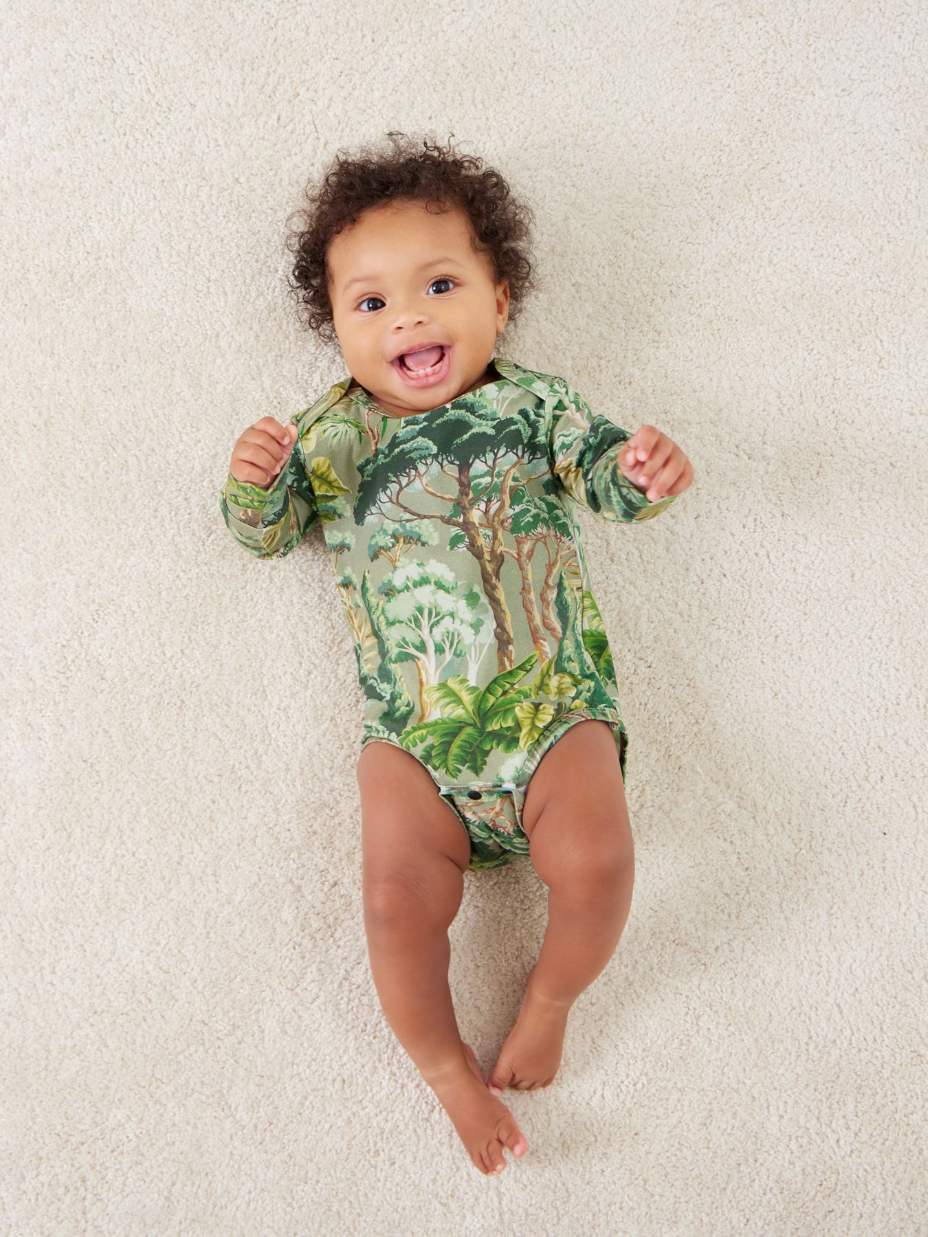 Боди для малышей скроено с учетом детской анатомии. Горловина расширяется, благодаря чему кофту легко надевать на малыша. Есть пространство под подгузник. Снизу застегивается на кнопки, благодаря чему будет легко переодеть малыша. Крой не сковывает движения, в боди комфортно играть, гулять и спать. Мягкий материал хорошо тянется и приятен кожи, отводит влагу. Благодаря стильному дизайну боди отлично подходит для выходов в свет и фотосессий.