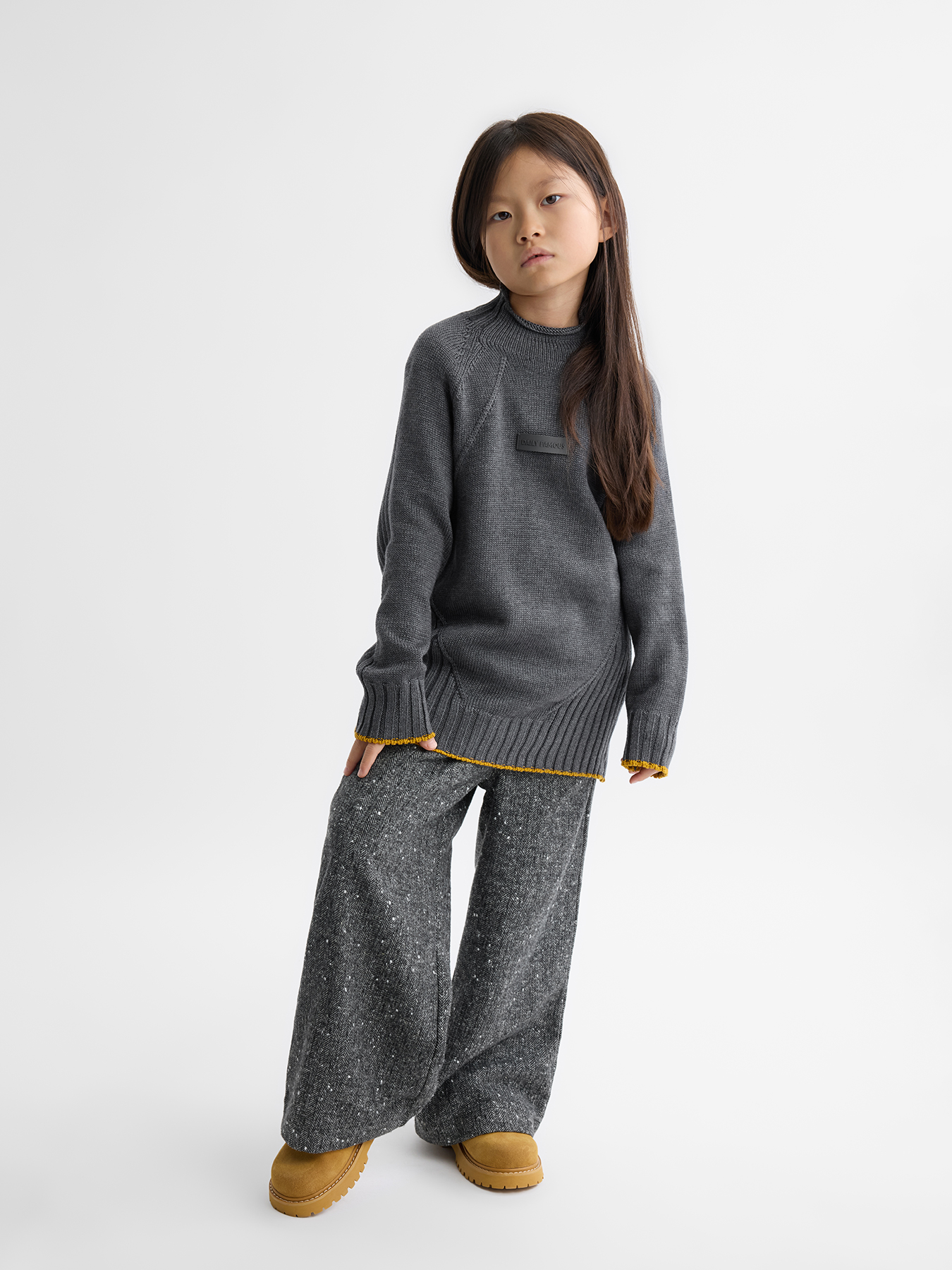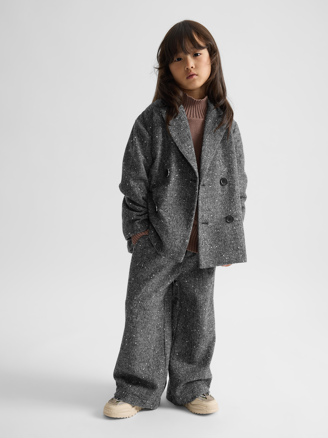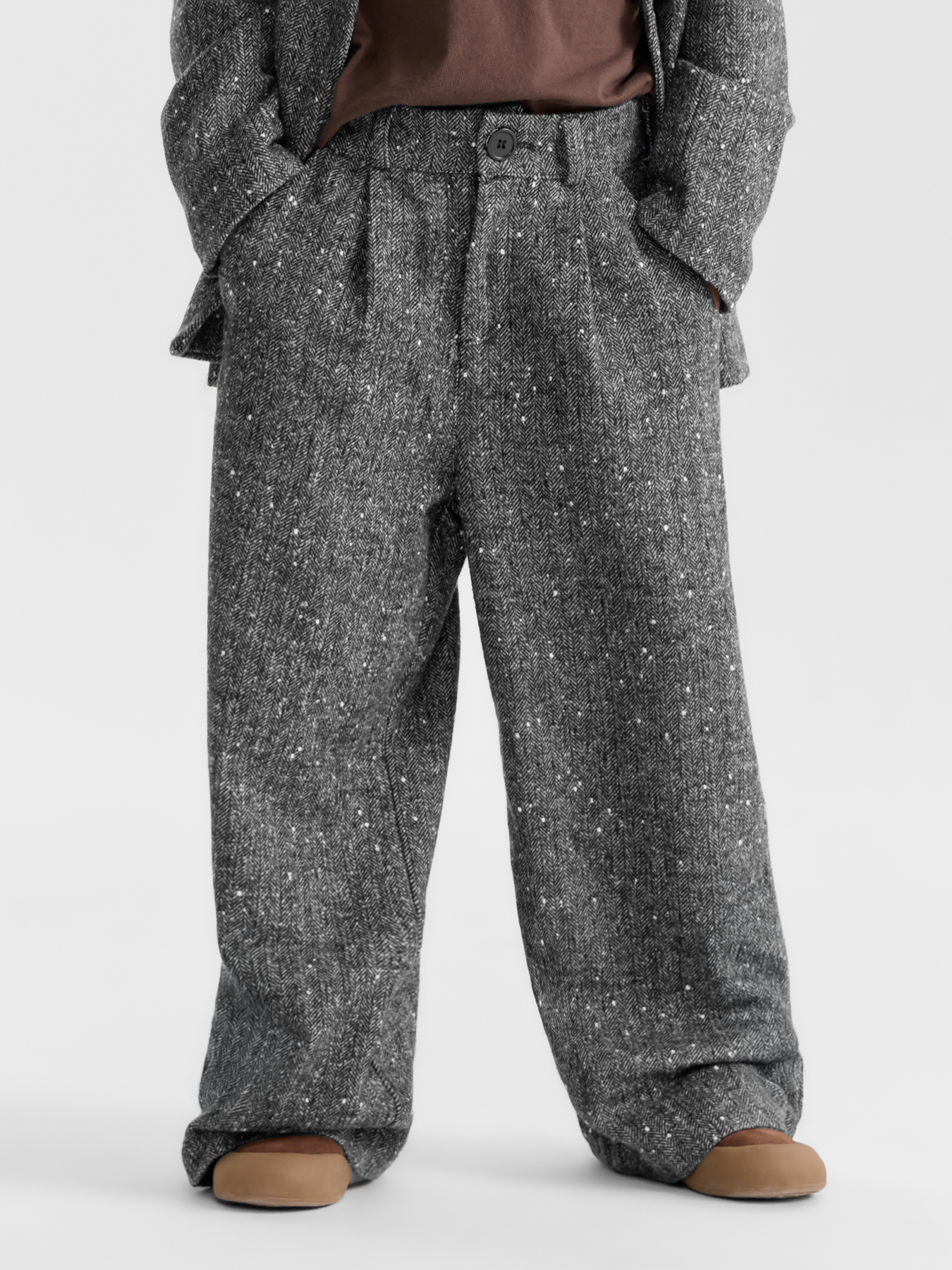Внимание: модель выполнена в выразительном oversize-силуэте, поэтому посадка заметно свободнее классической. Брюки имеют удлинённый крой, поэтому их длина больше классического варианта для заявленного размера.