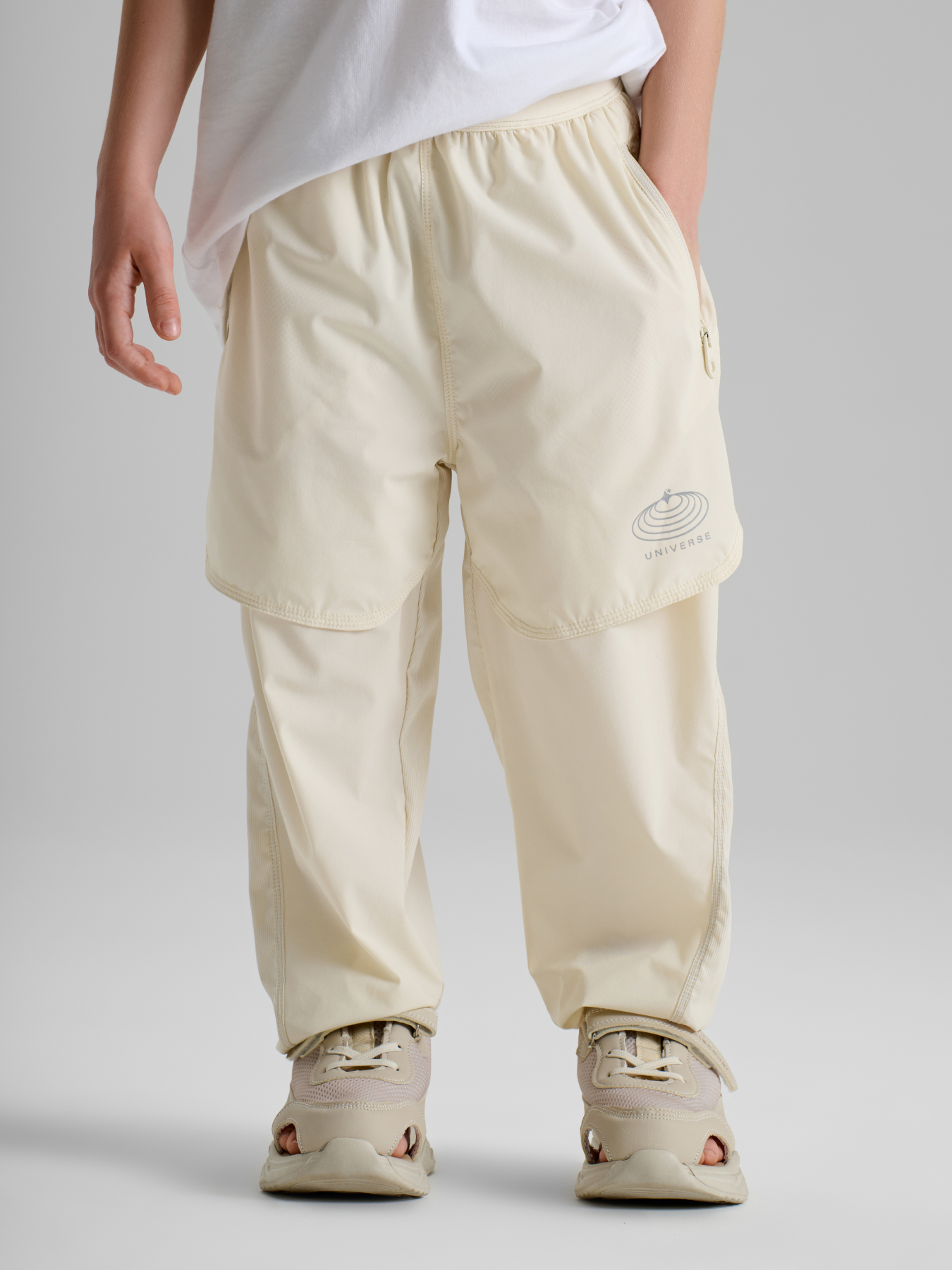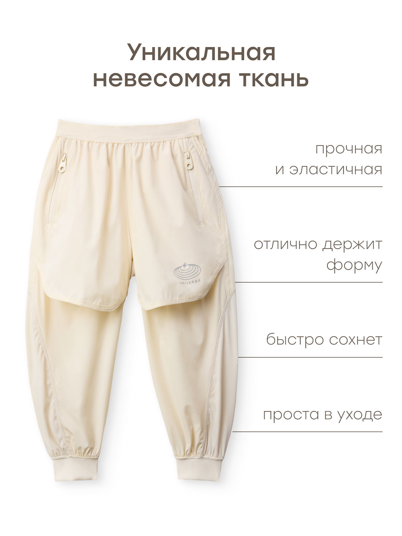 Брюки джоггеры из плотной ткани станут отличным выбором для переменчивой весенней погоды. Штаны выполнены в базовых однотонных цветах, так что подойдут и для мальчика и для девочки. Универсальный дизайн в спортивном стиле позволяет сочетать их с разными элементами гардероба. Необычный дизайн усложняет образ, делая его более многослойным. Такое решение оценят ценители моды и стиля y2k. Широкие штанины добавят уникальности образу, а манжеты защитят от задувания ветра. Пояс на резинке обеспечивает комфортную посадку по фигуре и не стесняет движений, что особенно важно для активных малышей. Боковые карманы на молнии добавляют практичности — туда можно положить важные для ребенка мелочи или просто спрятать руки в прохладную погоду. Эти демисезонные брюки выполнены из качественного материала, который легко справляется с повседневной ноской и прост в уходе. Идеально подойдут для любых игр благодаря своей функциональности и удобству.