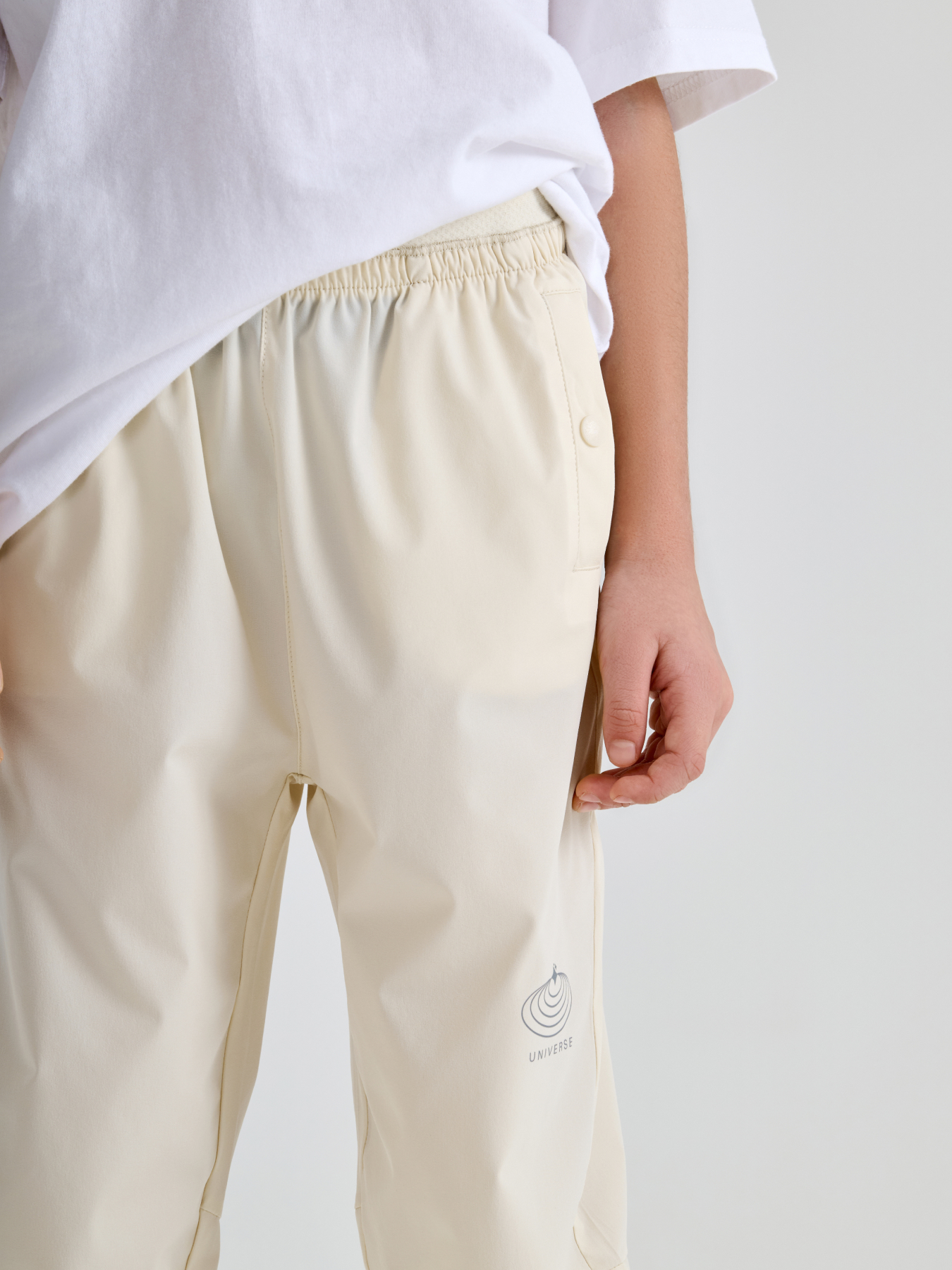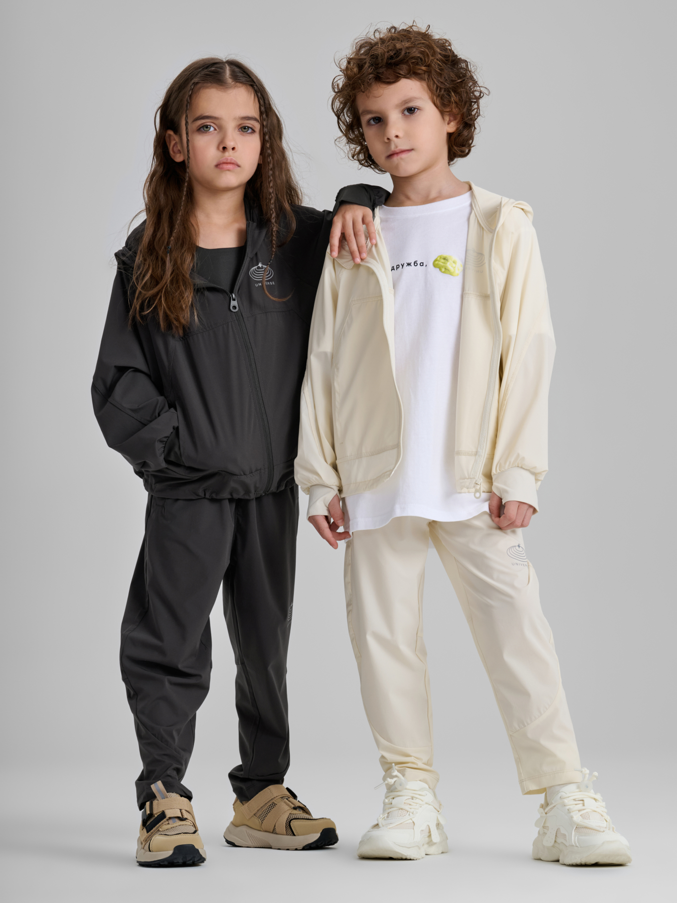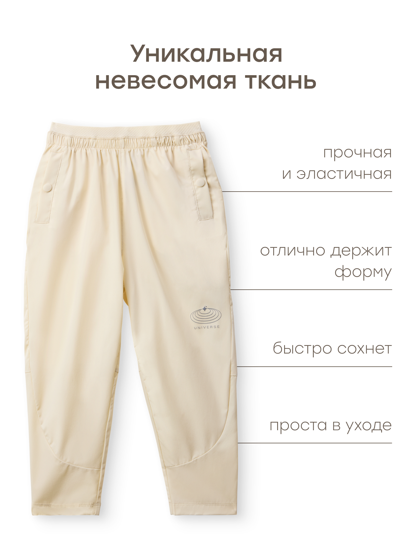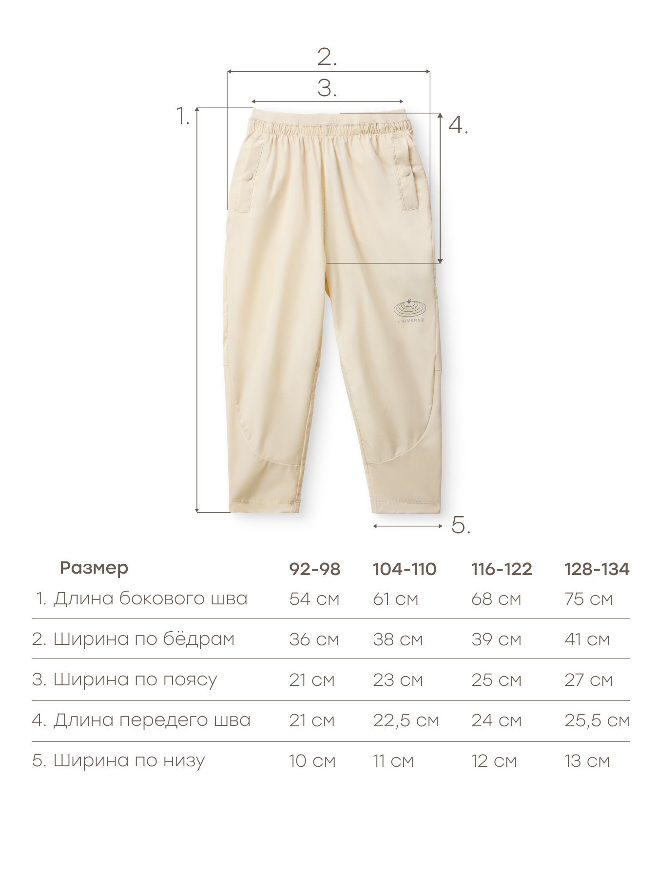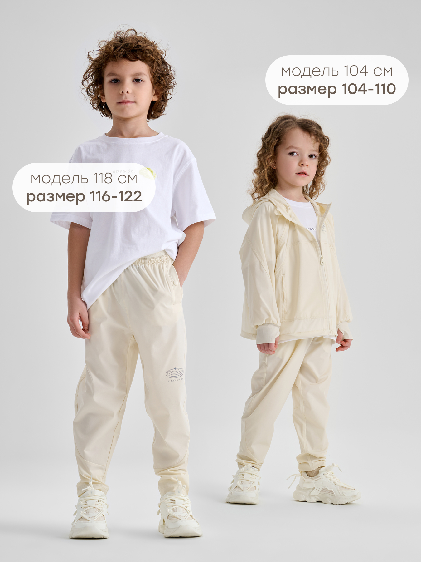 Брюки прямого кроя из плотной ткани станут отличным выбором для переменчивой весенней погоды. Штаны выполнены в базовых однотонных цветах, так что подойдут и для мальчика и для девочки. Универсальный дизайн в спортивном стиле позволяет сочетать их с разными элементами гардероба, создавая модный и аккуратный образ. Пояс на резинке обеспечивает комфортную посадку по фигуре и не стесняет движений, что особенно важно для активных малышей. Боковые карманы добавляют практичности — туда можно положить важные для ребенка мелочи или просто спрятать руки в прохладную погоду. Эти демисезонные брюки выполнены из качественного материала, который легко справляется с повседневной ноской и прост в уходе. Идеально подойдут для любых игр благодаря своей функциональности и удобству.