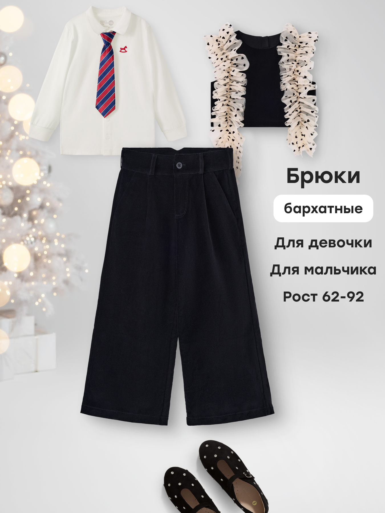 Брюки детские — универсальная модель из мягкого бархатного хлопка, созданная для комфорта и свободы движений. Брюки для мальчика и брюки для девочки подойдут для школы, сада, прогулок и праздничных мероприятий. Штаны детские легко комбинируются с рубашками, блузками, свитшотами и жилетами.