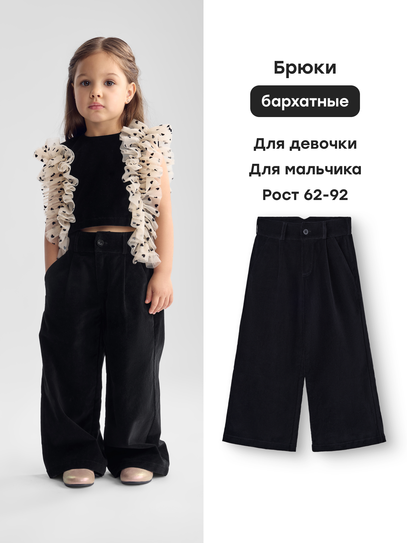 • Прямой крой и две аккуратные складки спереди придают образу опрятность и универсальность