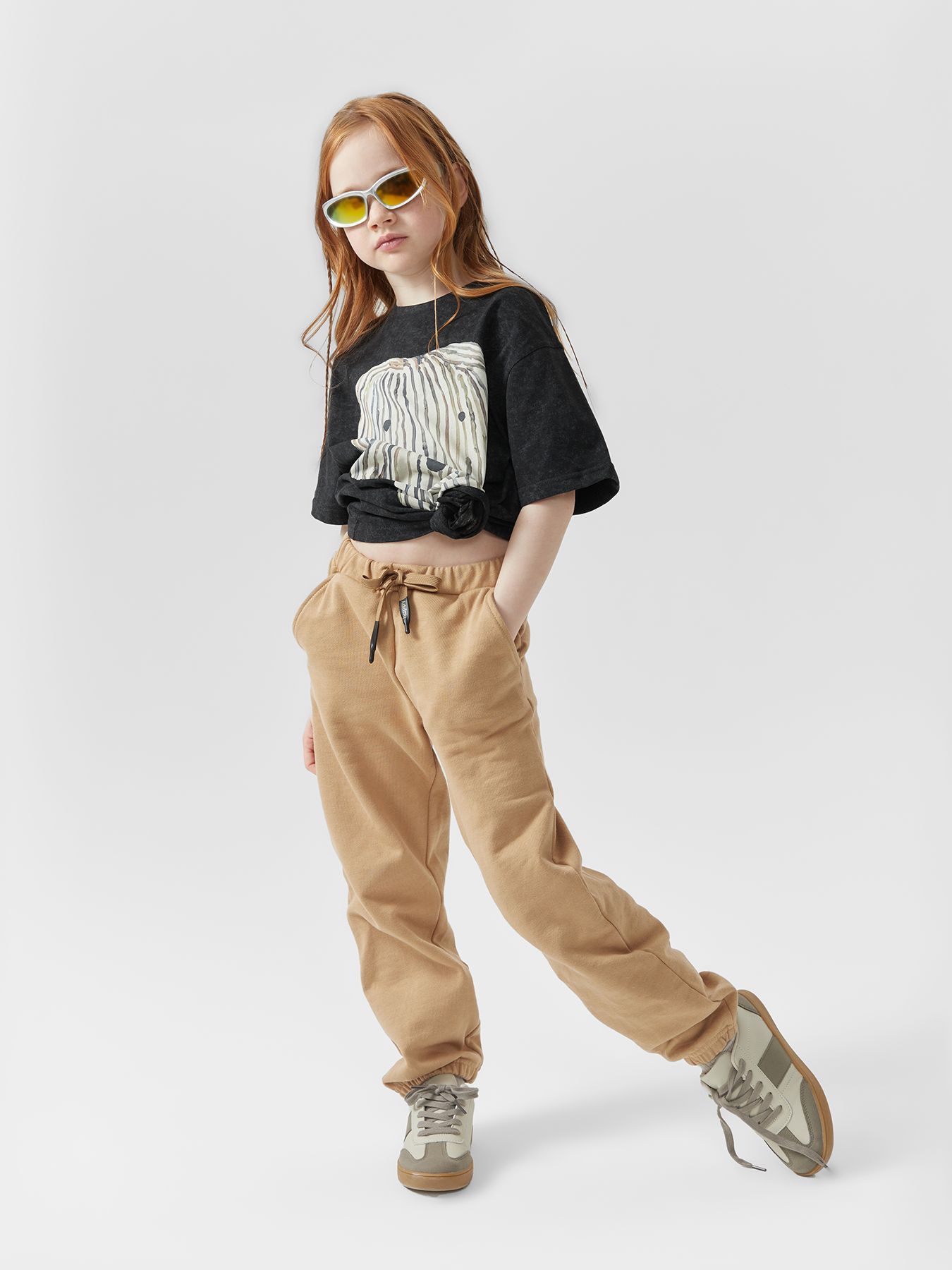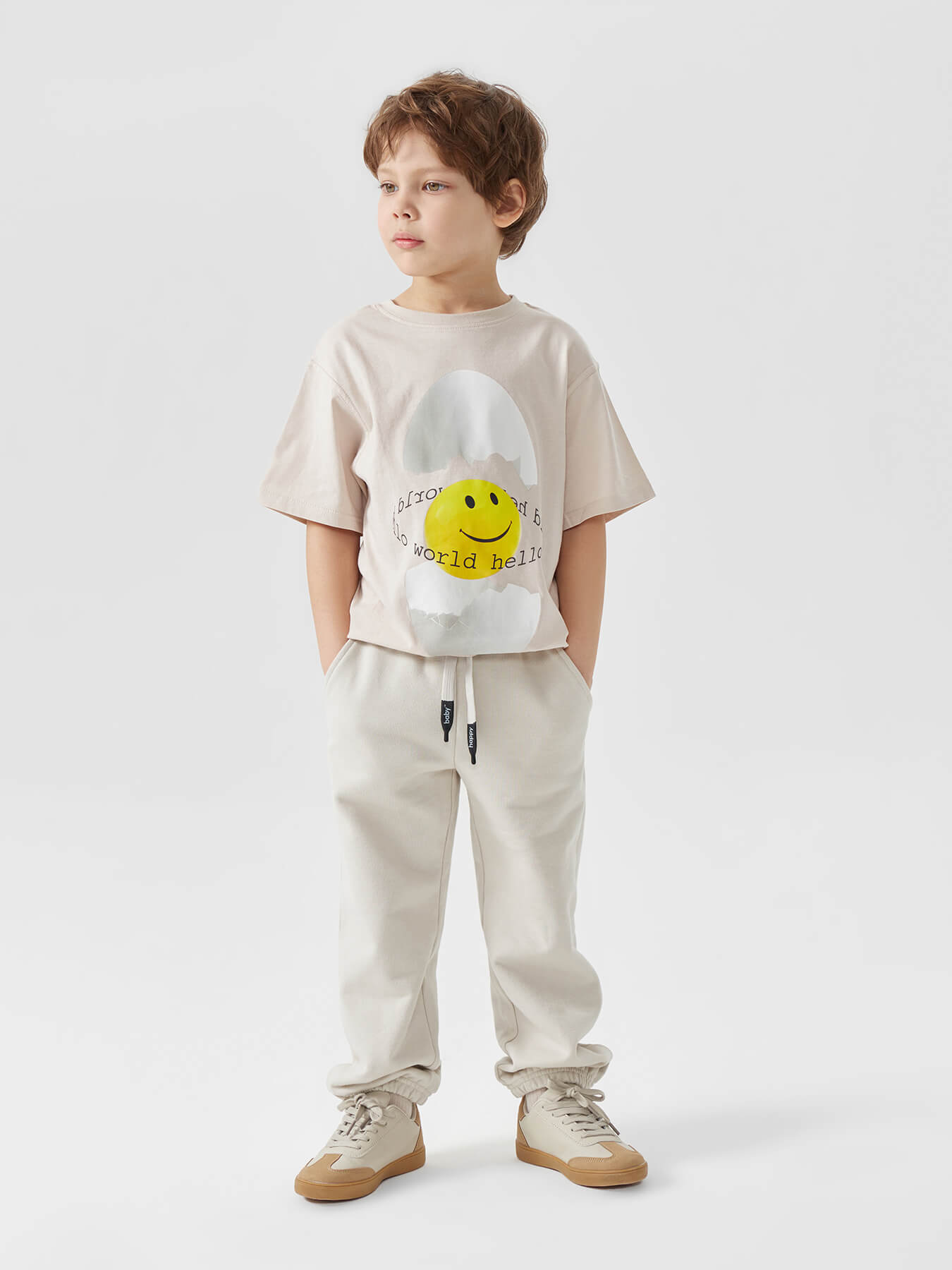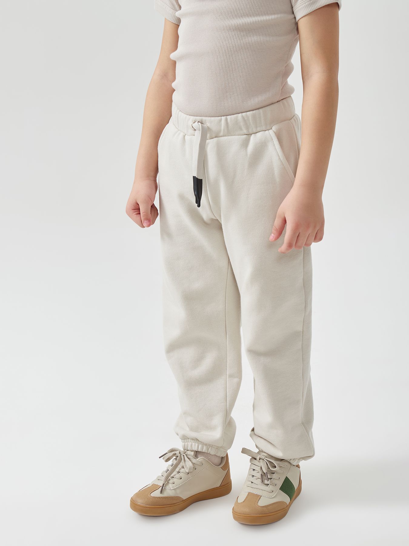 Детские джоггеры из 100% хлопка с эластичным поясом на резинке, карманами и шнурком на талии – удобный и стильный выбор для вашего ребенка. В них удобно гулять, заниматься спортом, проводить время в детском саду. Благодаря манжетам ножки малыша защищены от ветра. Актуальные брюки позволят создать множество стильных комплектов.