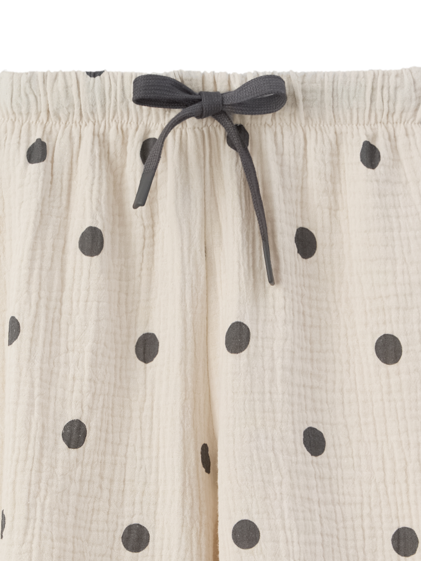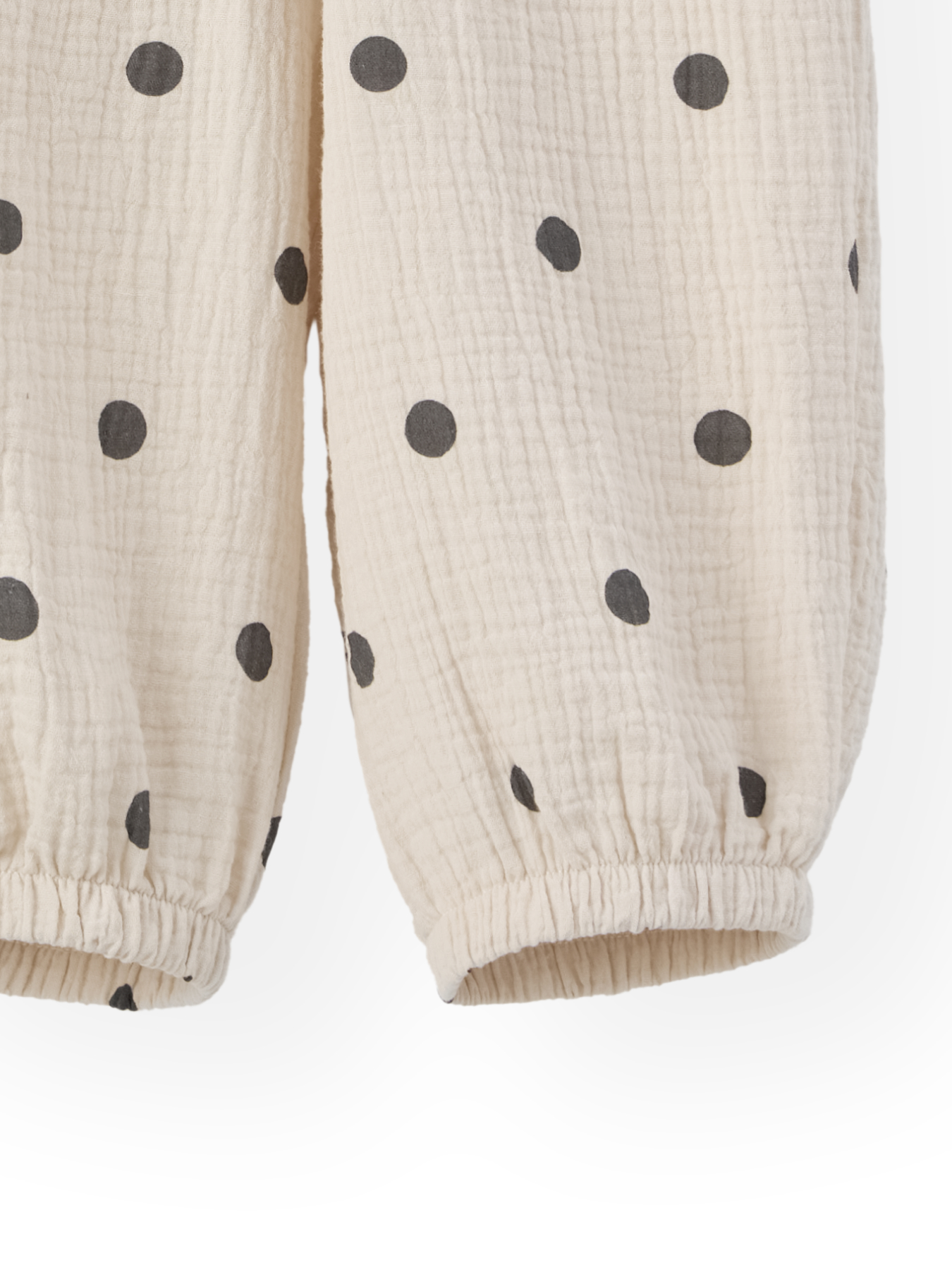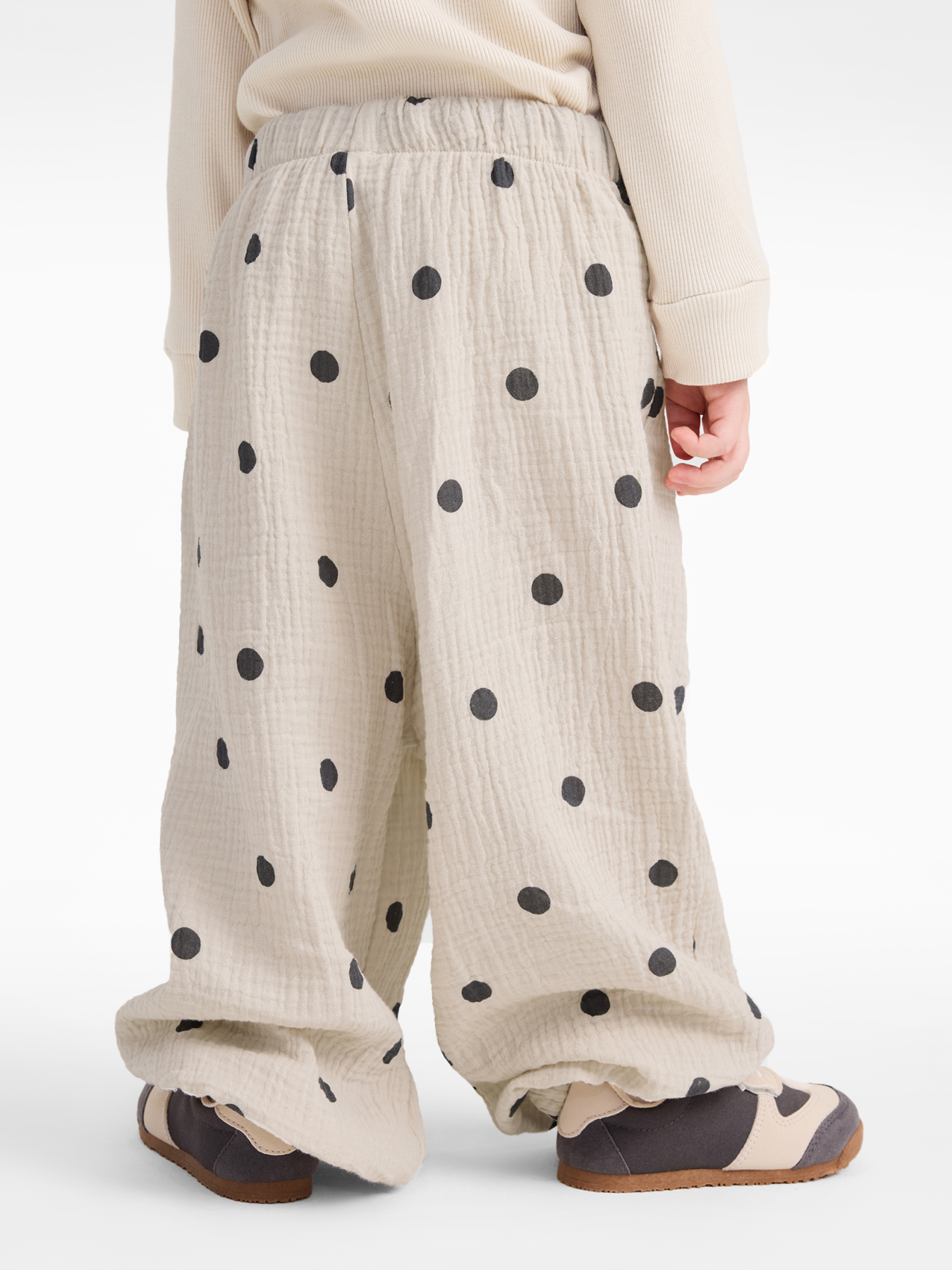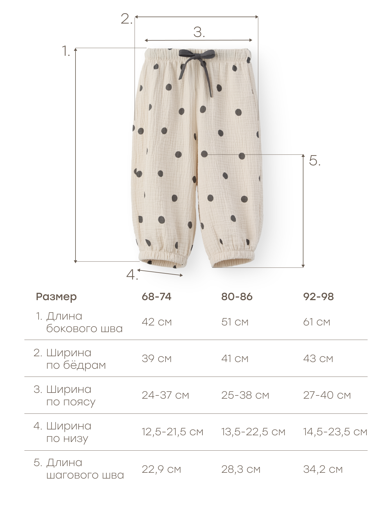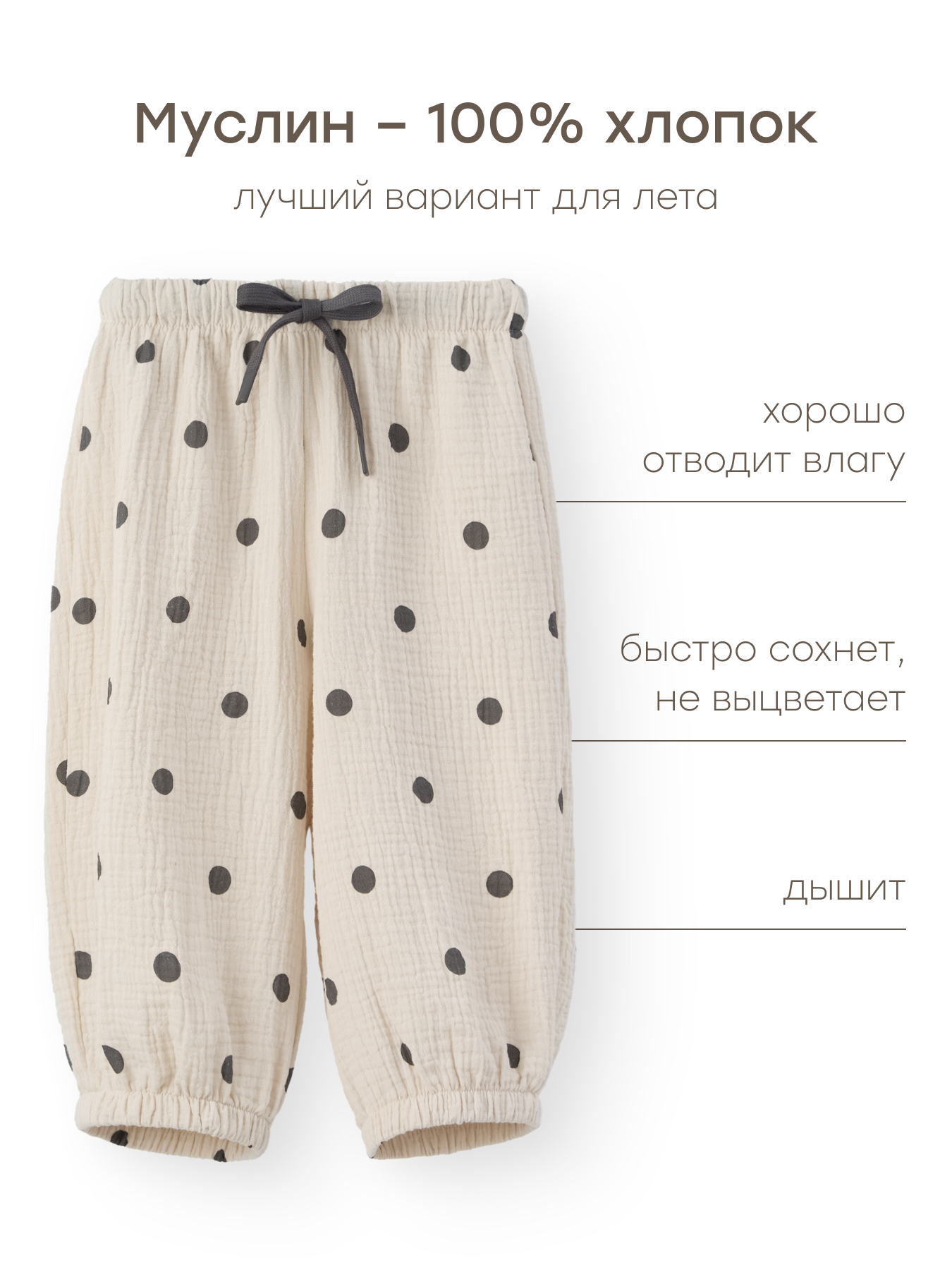 Хлопковые брюки для малышей — практичная модель на каждый день. Выполнены из мягкого и дышащего материала, обеспечивают удобство при носке и комфорт нежной коже ребенка. Эластичный пояс со шнурком позволяет легко регулировать посадку, обеспечивая надежную фиксацию без дискомфорта. Манжеты на штанинах мягко прилегают, предотвращая задирание и добавляя практичности. Универсальный крой и лаконичный дизайн делают брюки подходящими для любого случая. Легко комбинируются, создавая стильные и удобные образы для маленьких исследователей.