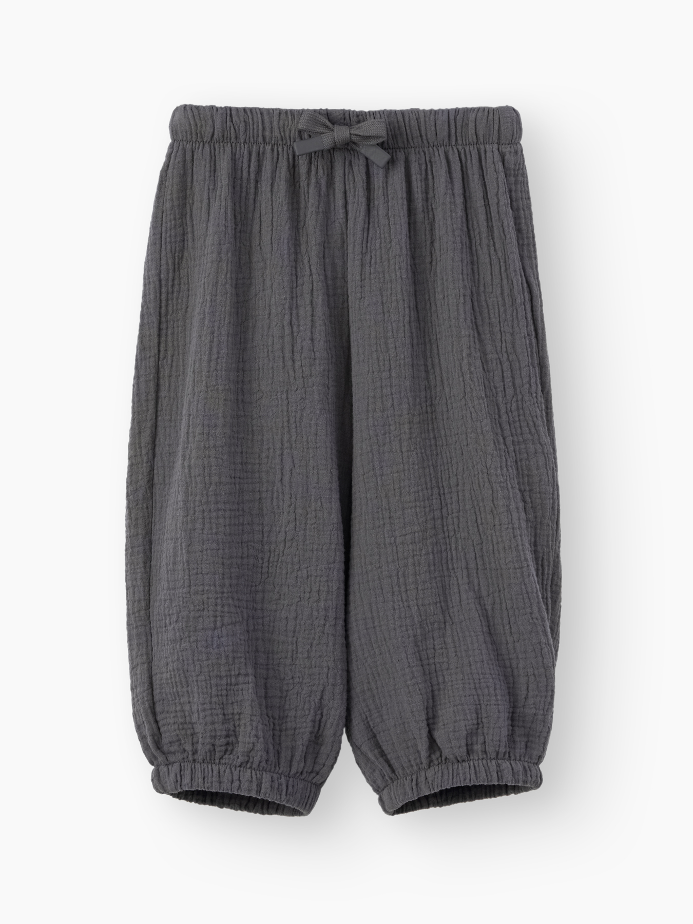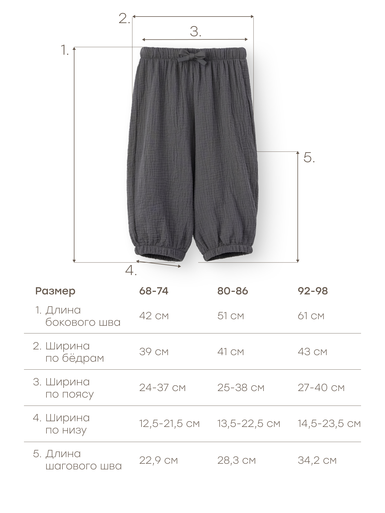 Хлопковые брюки для малышей — практичная модель на каждый день. Выполнены из мягкого и дышащего материала, обеспечивают удобство при носке и комфорт нежной коже ребенка. Эластичный пояс со шнурком позволяет легко регулировать посадку, обеспечивая надежную фиксацию без дискомфорта. Манжеты на штанинах мягко прилегают, предотвращая задирание и добавляя практичности. Универсальный крой и лаконичный дизайн делают брюки подходящими для любого случая. Легко комбинируются, создавая стильные и удобные образы для маленьких исследователей.