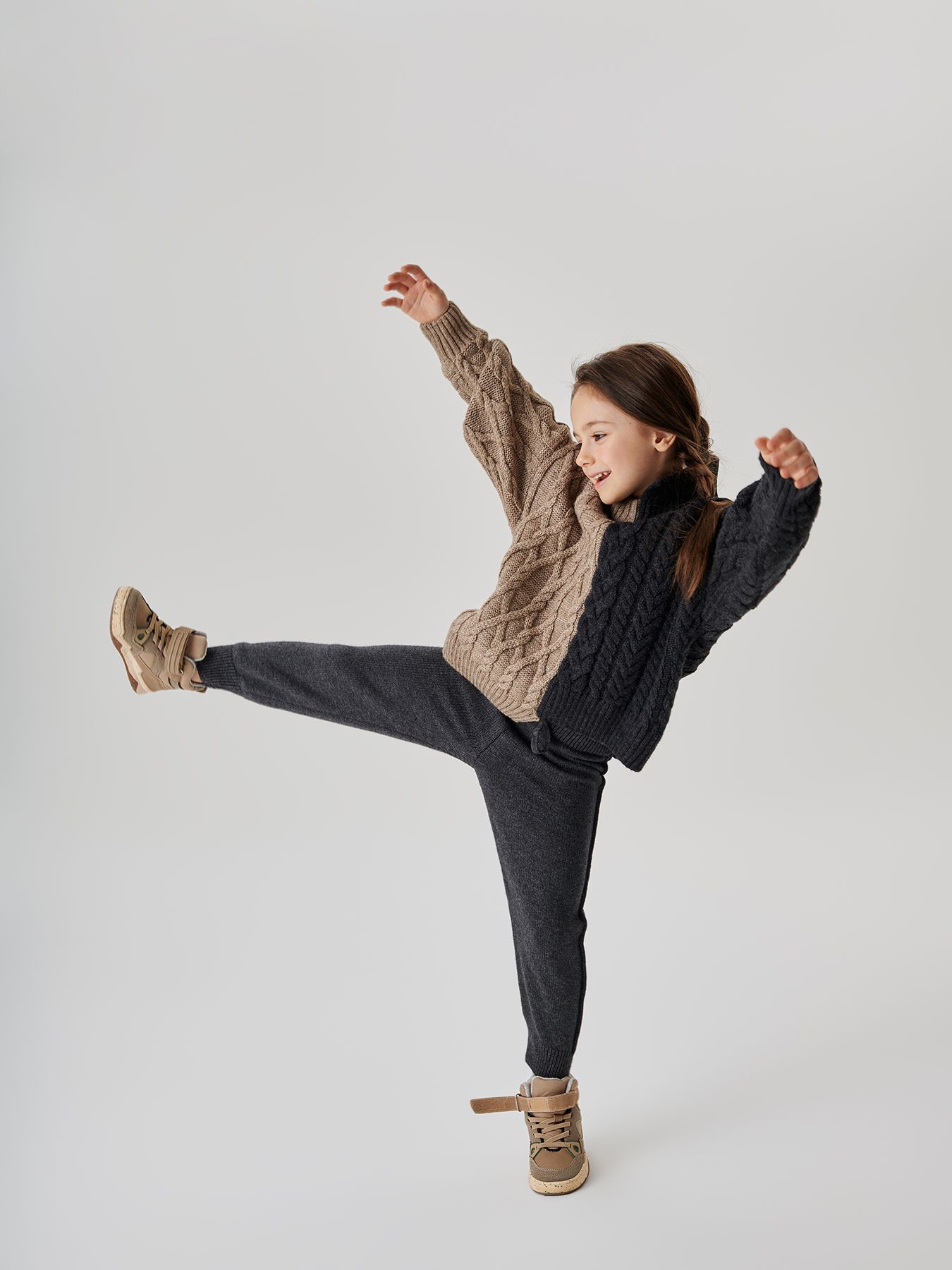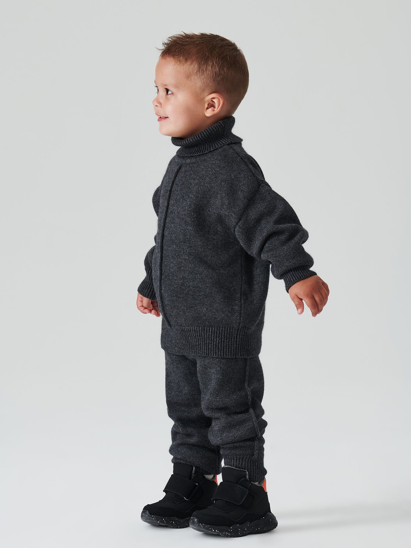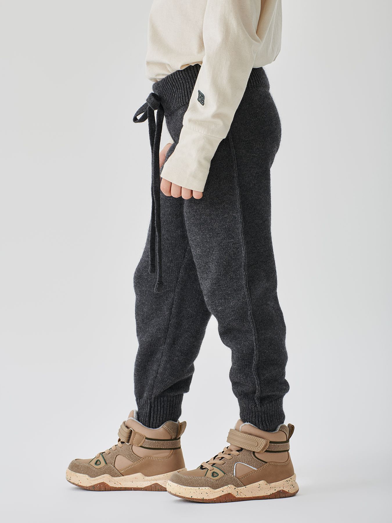 Шерстяные брюки на резинке подойдут активным малышам. Свободный крой не сковывает движения. Завязки на талии помогают отрегулировать посадку. Благодаря манжетам штанишки не продувают. Шерсть ангоры и овцы в составе делает материал уютным, мягким и теплым. Брюки комфортно носить в демисезон и не мерзнуть, а также удобно надевать под полукомбинезон зимой. Стильные и теплые брюки понравятся самым взыскательным малышам и позволят создавать модные образы с разной одеждой. Базовые цвета позволяют легко вписать штаны в гардеробы девочек и мальчиков.