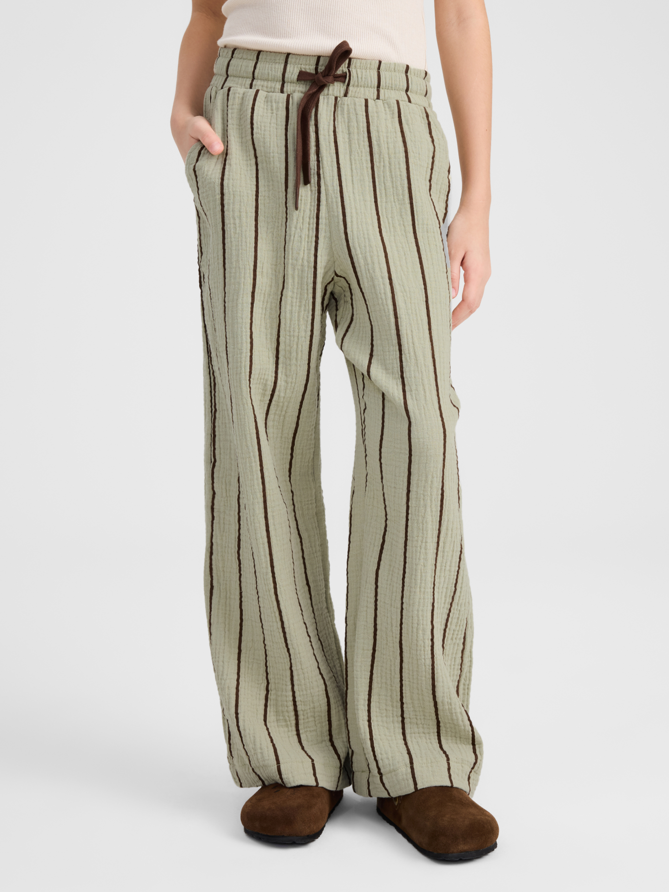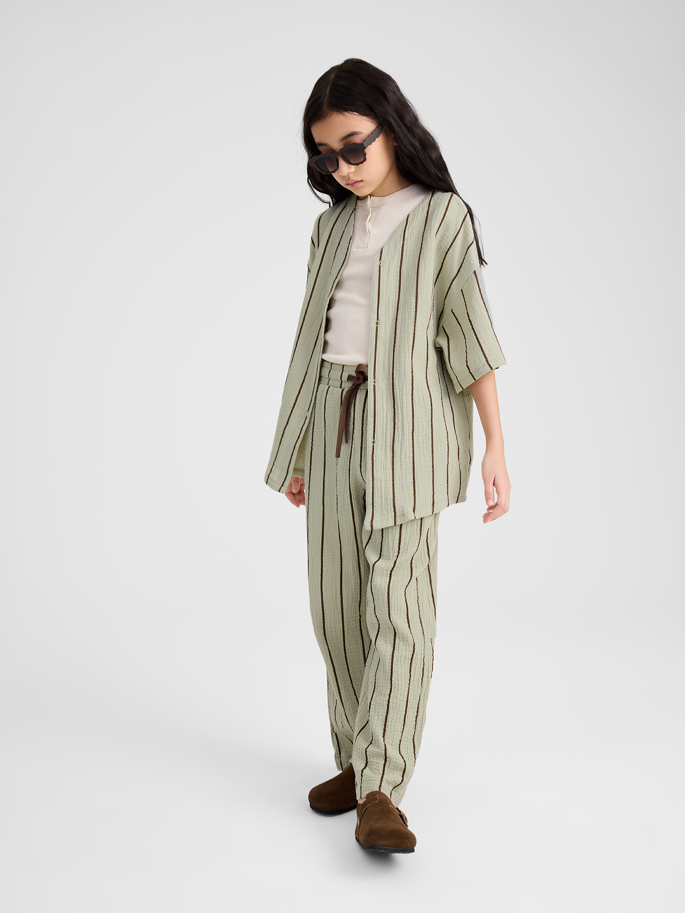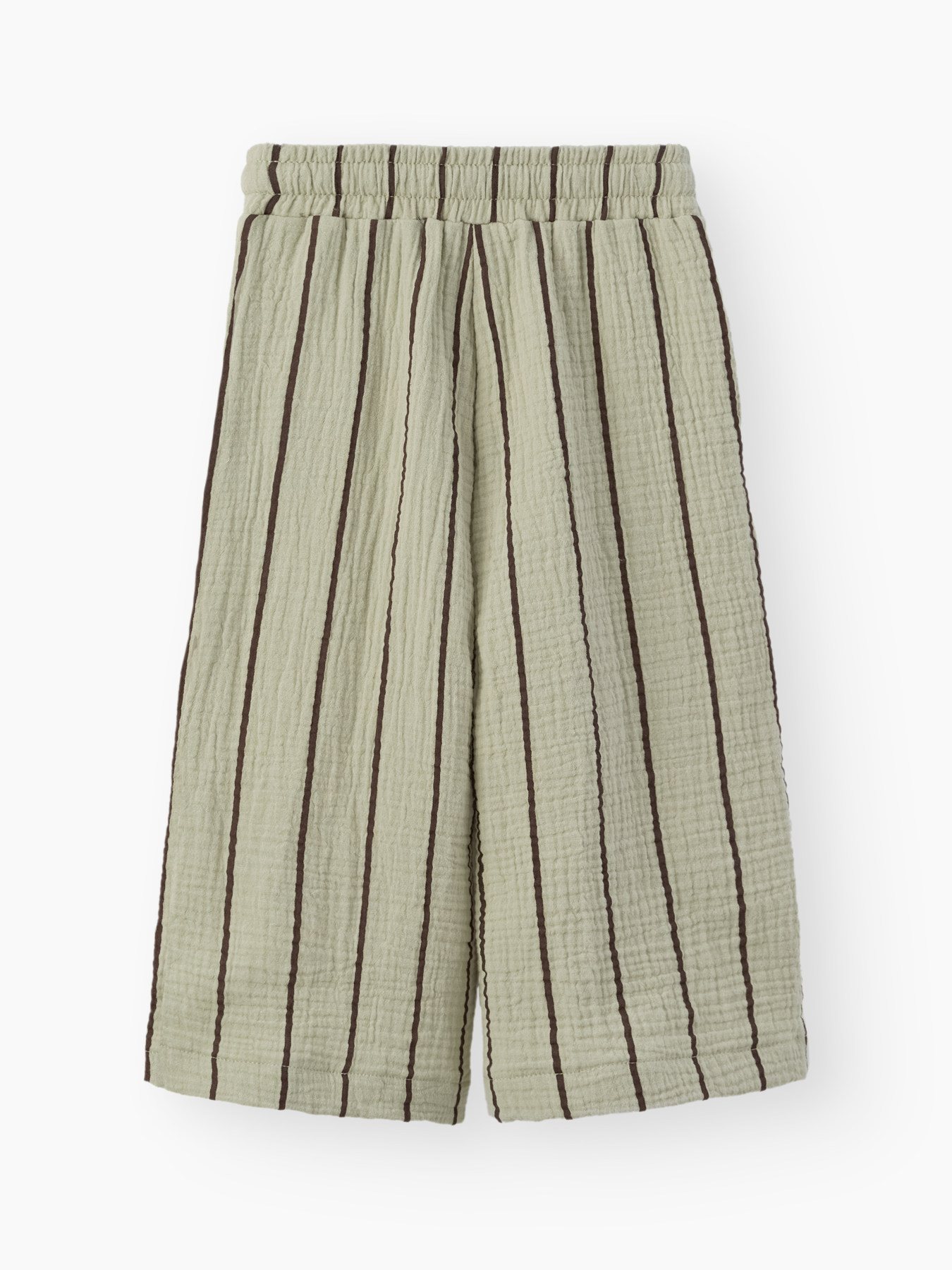 Широкие хлопковые брюки незаменимы на прогулках и в поездках. Согреют вечером и защитят от солнца днем. Благодаря резинке и шнурку штанишки садятся на детей с разным объемом талии. Прямой крой хорошо выглядит и для удлиненных, и для укороченных моделей, потому брюки одного размера можно носить несколько сезонов. Сшиты из материала, в составе которого 100% хлопка. Ткань дышит, хорошо отводит влагу, не липнет к телу. Модель брюк подходит мальчикам и девочкам, и отлично сочетается в повседневных, пляжных и праздничных комплектах.