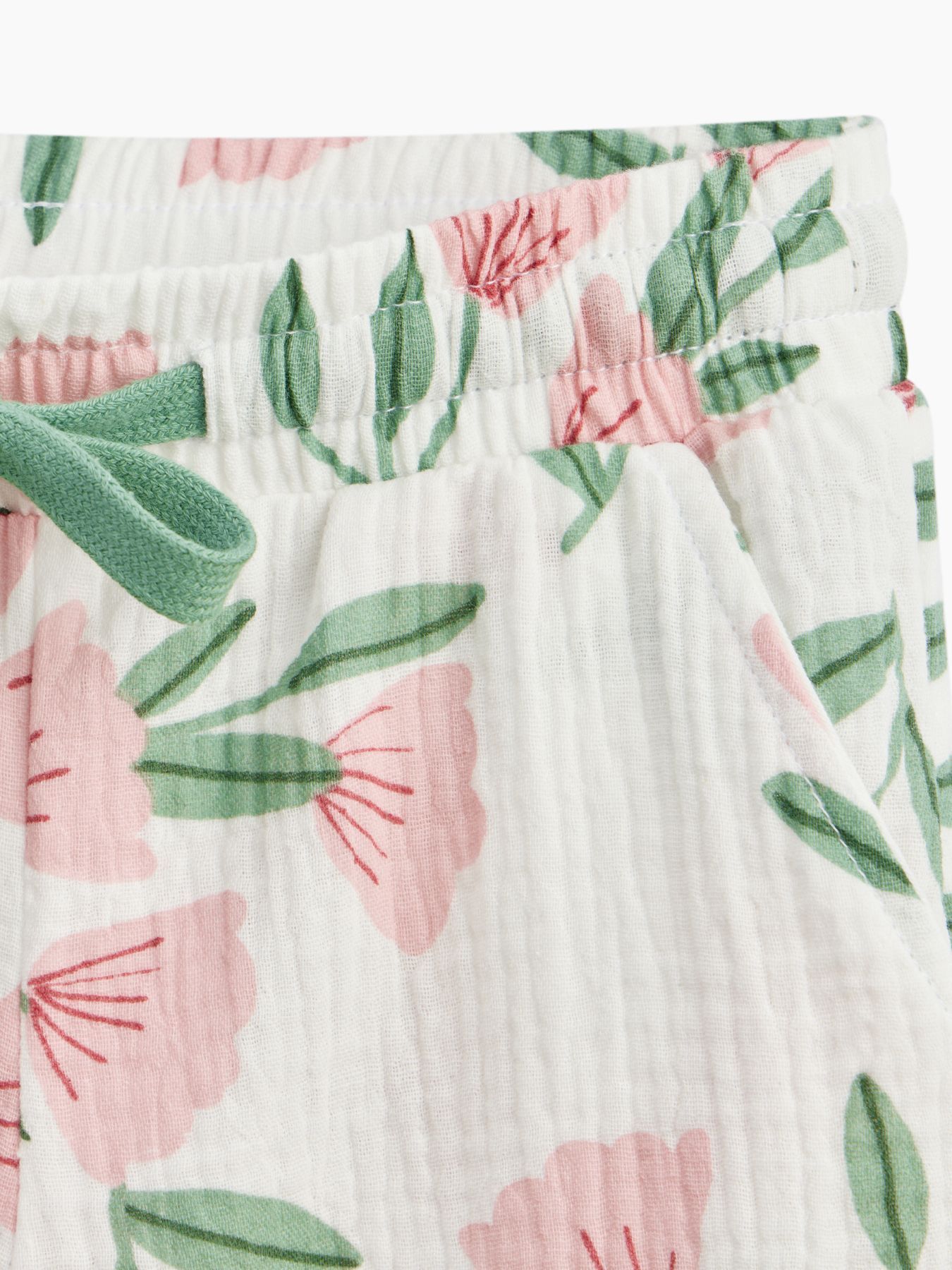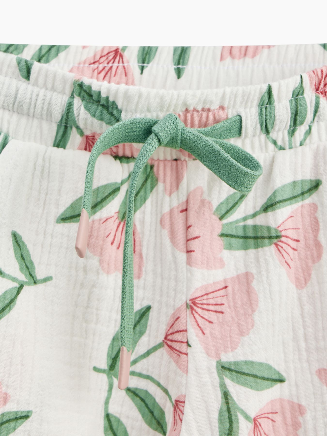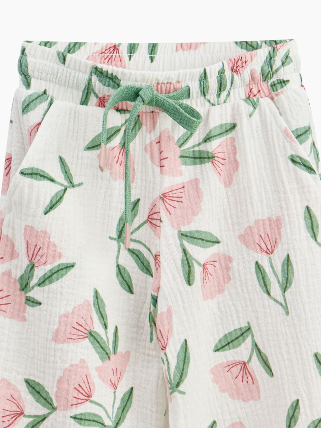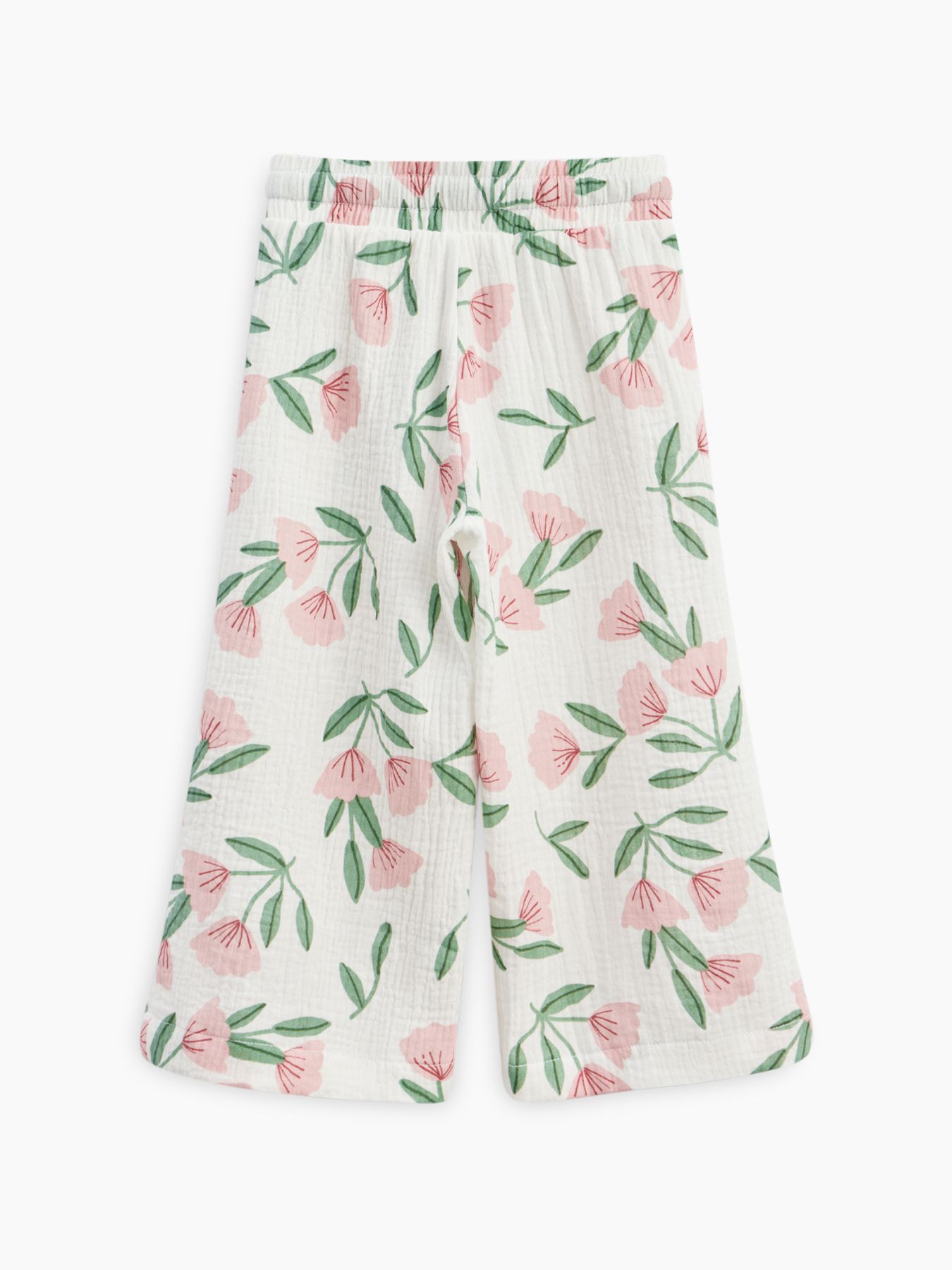 Широкие хлопковые брюки незаменимы на прогулках и в поездках. Согреют вечером и защитят от солнца днем. Благодаря резинке и шнурку штанишки садятся на детей с разным объемом талии. Прямой крой хорошо выглядит и для удлиненных, и для укороченных моделей, потому брюки одного размера можно носить несколько сезонов. Сшиты из материала, в составе которого 100% хлопка. Ткань дышит, хорошо отводит влагу, не липнет к телу. Модель брюк подходит мальчикам и девочкам, и отлично сочетается в повседневных, пляжных и праздничных комплектах.