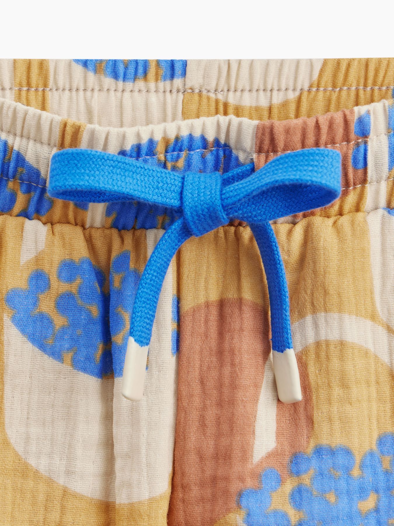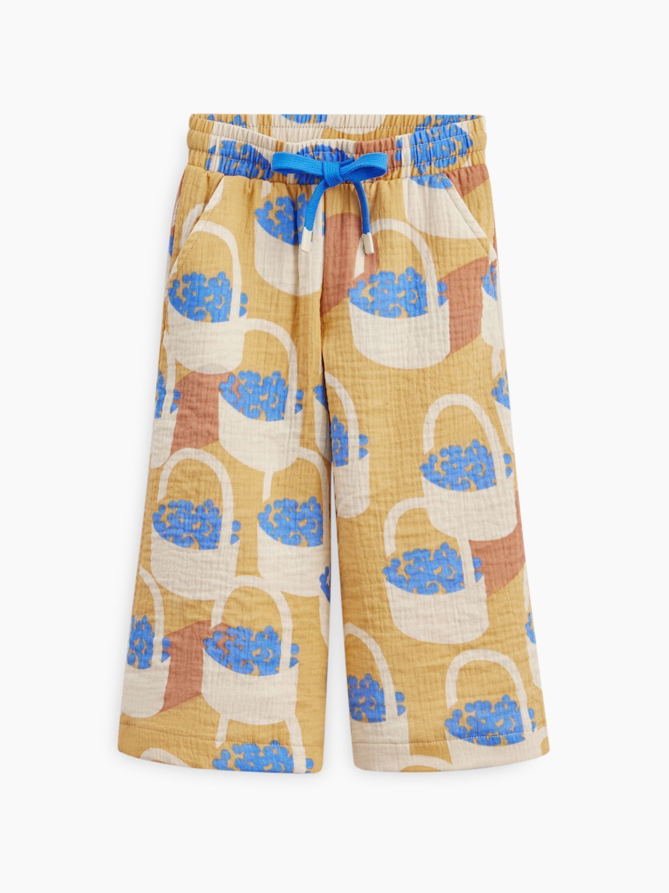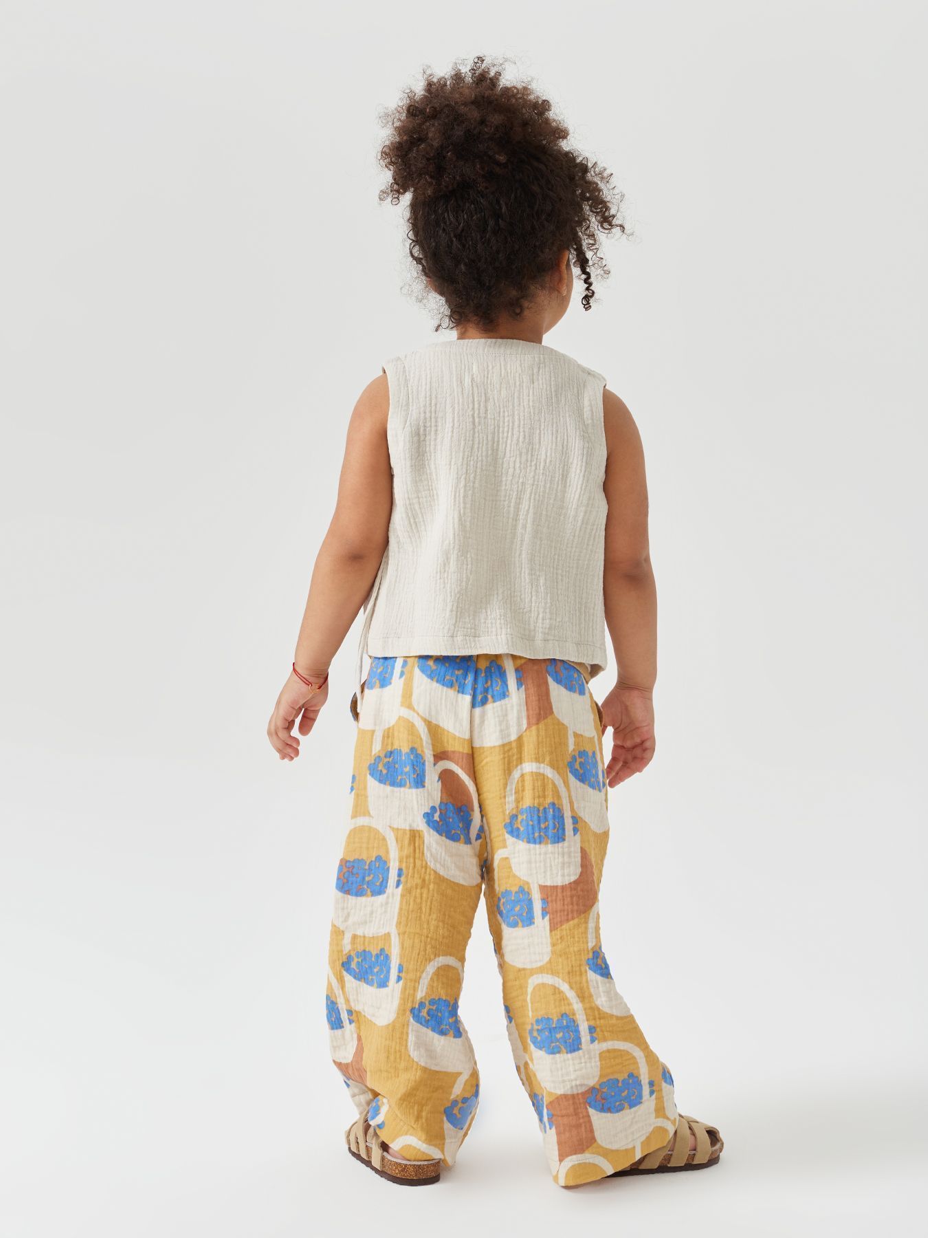 Широкие хлопковые брюки незаменимы на прогулках и в поездках. Согреют вечером и защитят от солнца днем. Благодаря резинке и шнурку штанишки садятся на детей с разным объемом талии. Прямой крой хорошо выглядит и для удлиненных, и для укороченных моделей, потому брюки одного размера можно носить несколько сезонов. Сшиты из материала, в составе которого 100% хлопка. Ткань дышит, хорошо отводит влагу, не липнет к телу. Модель брюк подходит мальчикам и девочкам, и отлично сочетается в повседневных, пляжных и праздничных комплектах.
